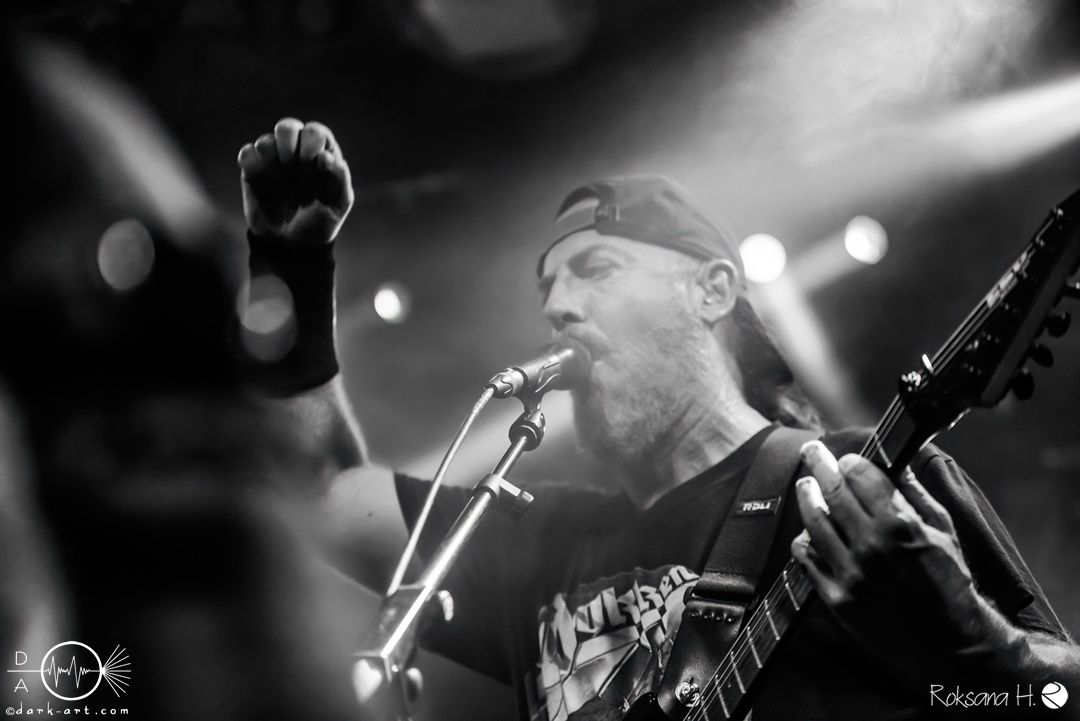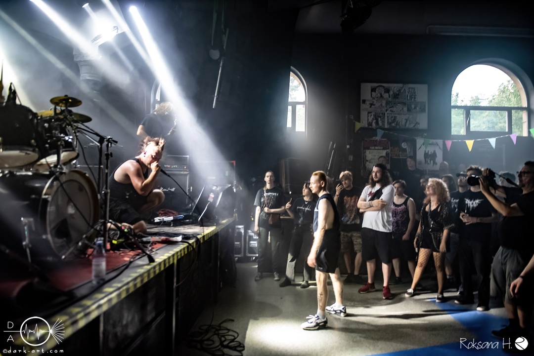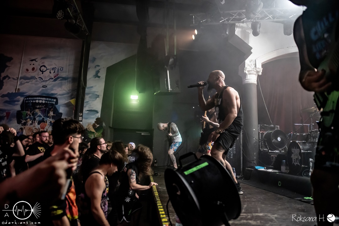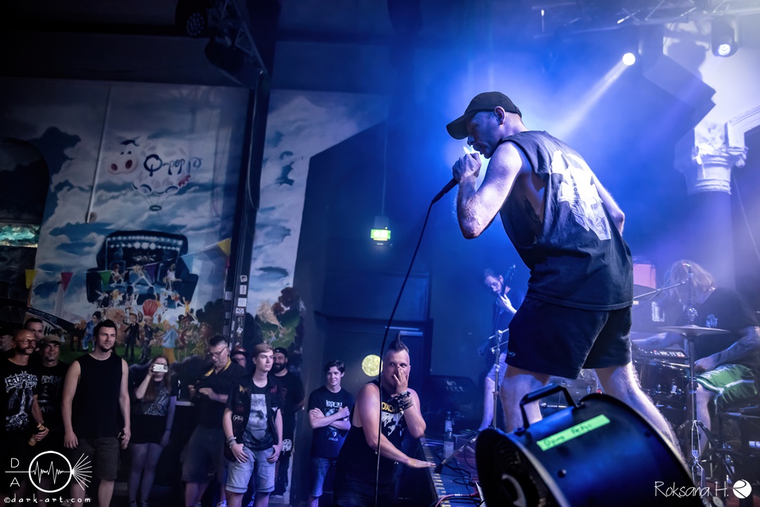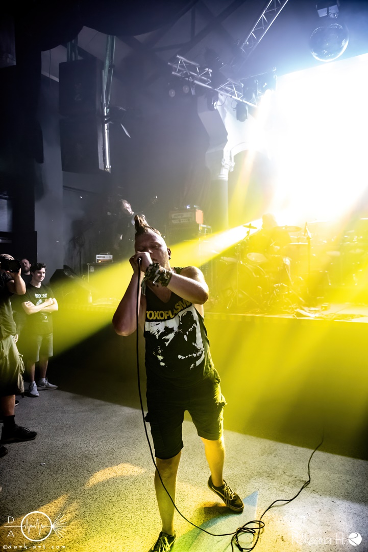 Um 22.00 Uhr war es Zeit für die Hauptband, Dying Fetus, die seit 1991 Death-Metal Musik mit Core-Elementen kreieren. Die Konzertbesucher waren bereits so hitzig, dass mit dem ersten Lied auch der erste Circle Pit eingeleitet wurde. Zu Beginn war der Pit noch entspannt, doch nach jedem Lied wurde der Pit härter und größer. Bis schließlich es nur noch in einem Wort „Abriss“ zu beschreiben war. Es war ein sehr heißer Tag und die beste Abkühlung des Tages in der gut besuchten Lokation, während Dying Fetus, waren die Windmühlen, die sich beim Schütteln der langen Metaler-Haare gebildet haben. Die Stimmung war bei Besuchern und Bandmitgliedern einfach super, besonders bei den Songs We are your Enemy und Wrong One to Fuck With. Zwischendrin wurde dem Bandnamen getreu auch eine Aufnahme eines weinenden Kindes abgespielt, mit den anschließenden Worten „Don’t cry like a baby!“. Beim letzten Stück des Tages hatte jeder noch seine letzten Kräfte gesammelt und selbst die letzte Reihe hat noch getanzt.