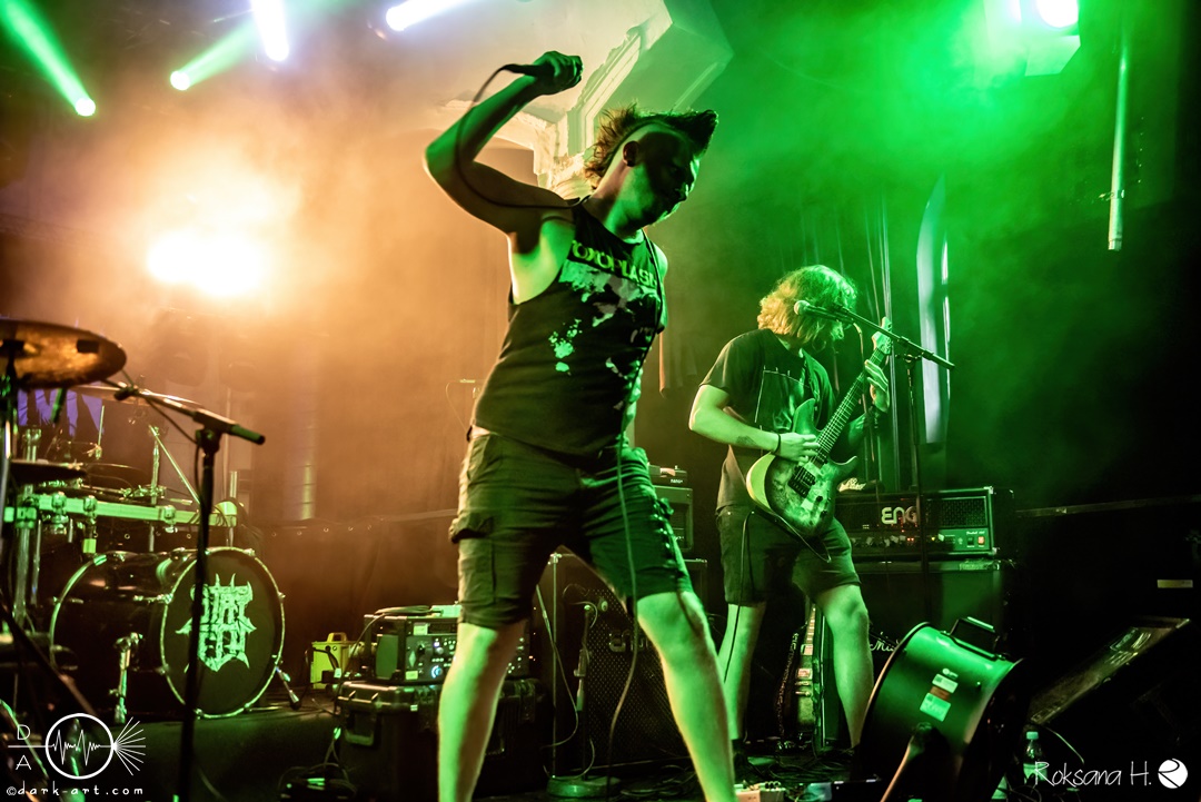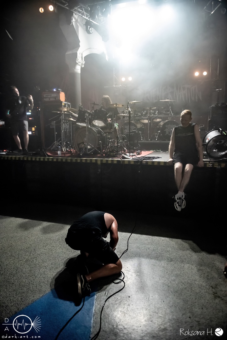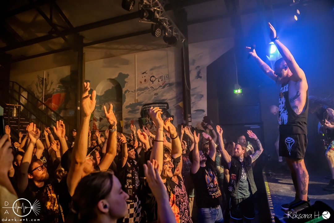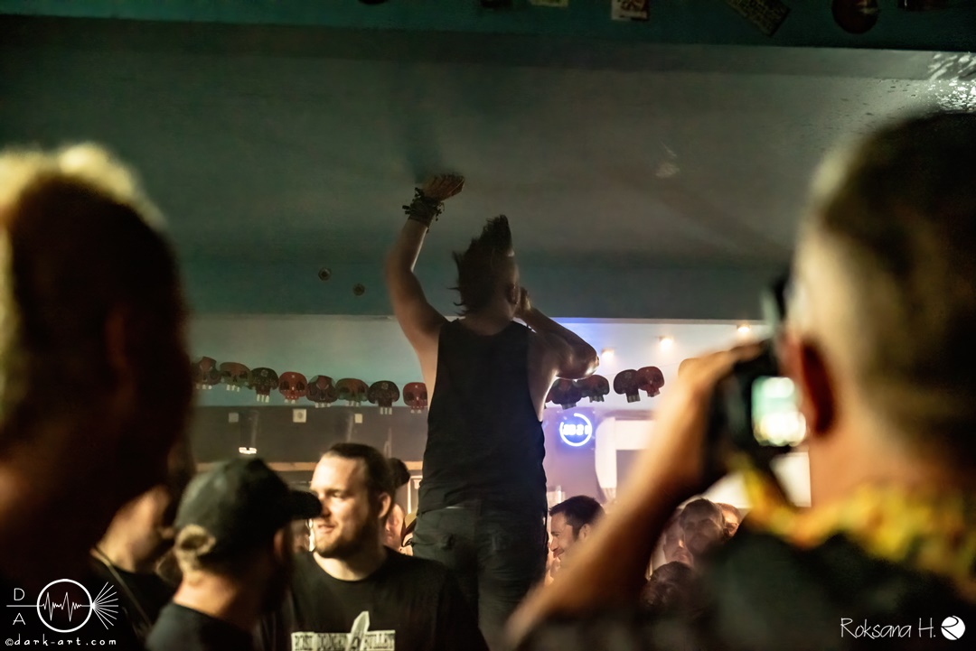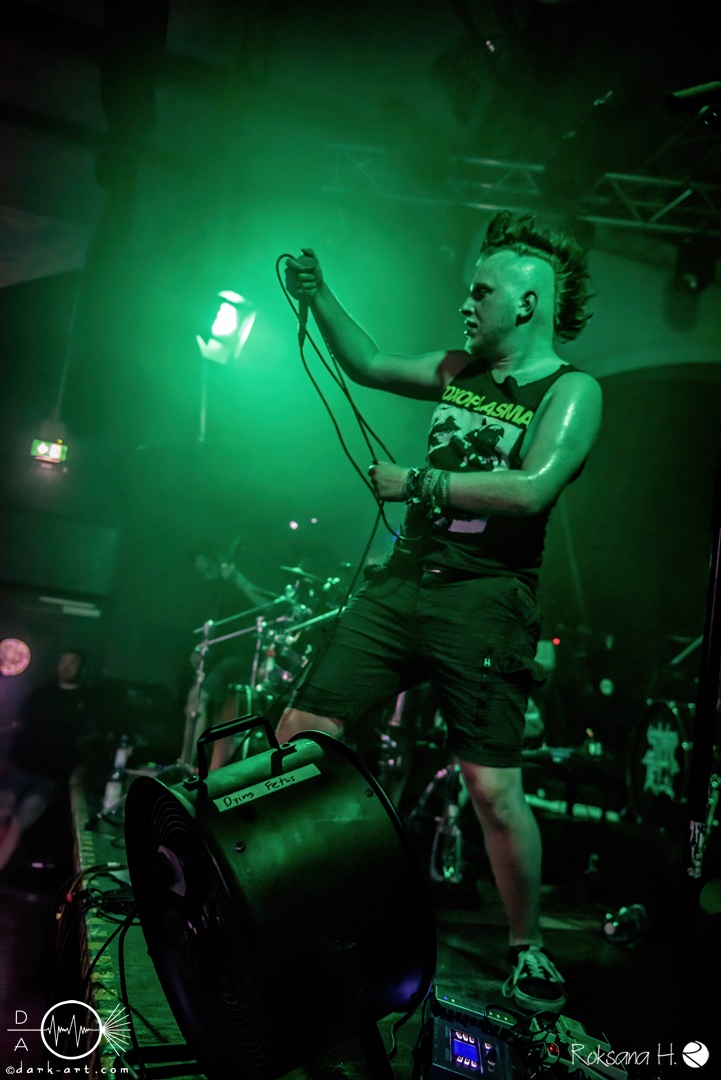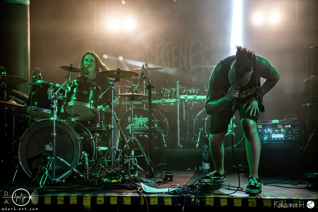 Die Einstimmung auf das Konzert machte der lokale Support aus Nürnberg, die Band Degenernation. Ihre Musik lässt sich nur beschreiben als eine Mischung aus Grind-Punk-Hardcore mit Surf and Blackmetal Einflüssen. Sie starteten pünktlich um 20.00 Uhr mit ihrem Auftakt. Der Saal füllte sich rasch und nach den ersten zwei Lieder meinte der Sänger „Waren kack nervös, sind froh, dass die Hälfte nicht nach dem ersten Lied gleich rausgegangen ist“. Das aggressive akrobatische Tanzen wurde sehr schnell eingeleitet, vor allem bei Liedern wie Föten Töten, Nie wieder Faschisten und Jesus Christ Pornostar. Zwischendrin gab es für einen kurzen Moment einen Sängerwechsel und der Supporter der Band hat übernommen, während der Sänger in die Crowd gesprungen ist. Danach gab es auch eine kurze Gesangsperformance im Publikum. Am Ende gab es noch die Frage „Bock auf noch einen Song?“, kleiner Jubel aus dem Publikum, „Immerhin ein paar“. Allgemein sehr lustige, empfehlenswerte Band, ausgesprochen motiviert und hoffentlich bald nicht mehr so nervös.