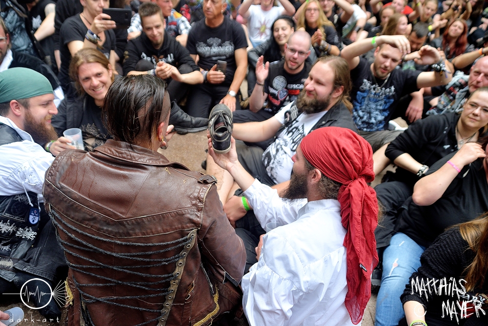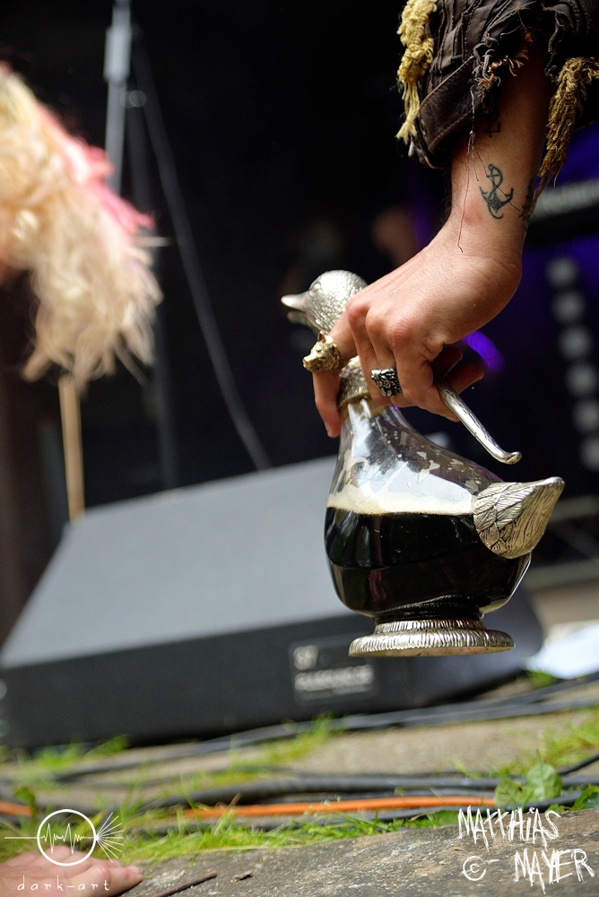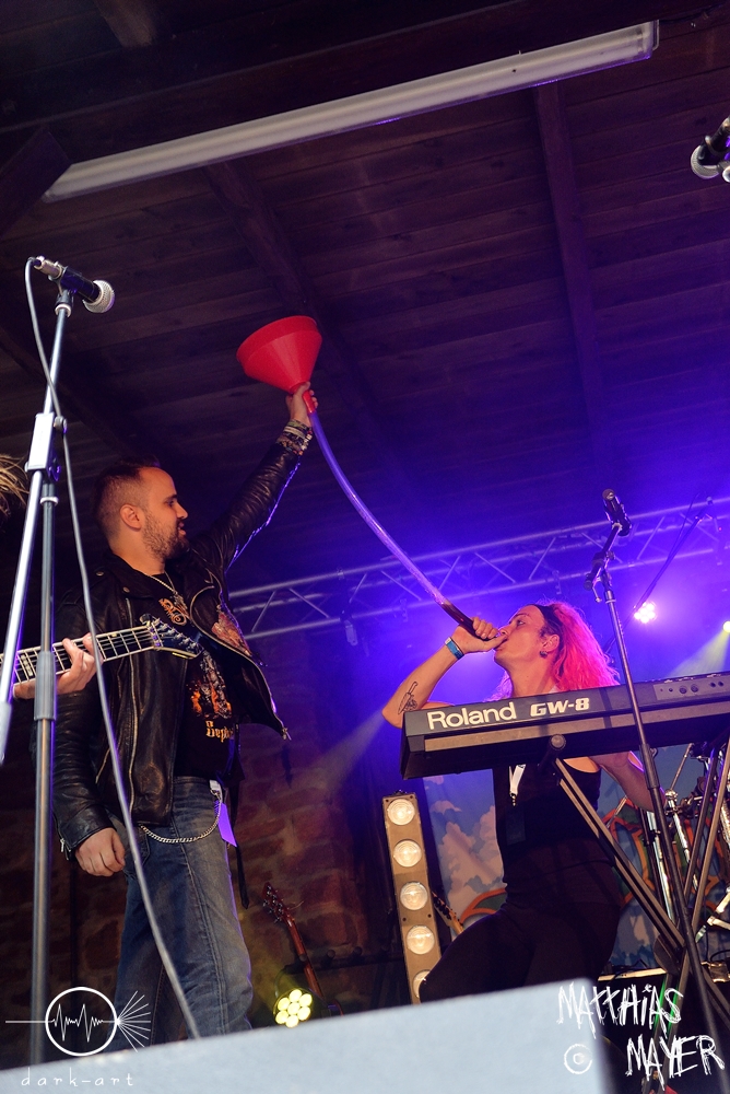 Lagerstein sehen aus, wie ein Kind von Mr Hurley und den Pulveraffen und Steelpanther auf dem Oktoberfest. Sie sind definitiv aktuell eine der witzigsten Bands auf europäischen Bühnen, und machen wirklich Spaß. Sehr viel Alkohol gehört auch dazu, trotzdem können die Musiker ihr Handwerk! Sehr zu bewundern ist der Einsatz mit dem sie an die Sache gehen, Monate lang in Europa unterwegs ohne die Heimat zu sehen. Begegnungen mit der Crew auf und neben der Bühne gehen immer mit einem erhöhten Alkoholrisiko einher, wahlweise mit einem Trichter oder aus euren Schuhen, ja sie tun es tatsächlich 😉 Ach ja und was ich noch erwähnen wollte, Alkohol, Bier, Rum, Party, Musik, Metal, Bier, Alkohol, Rum … ich glaube ich bin schon jetzt betrunken, dabei kommt die Show erst noch, das wird geil!