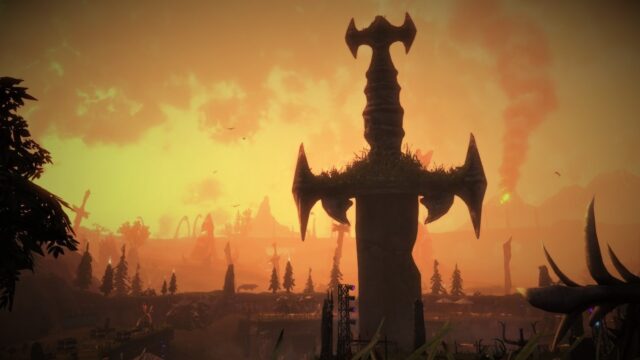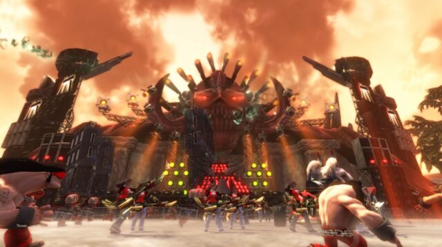 Brütal Legend ist kein Spiel, das einfach nur Metal „verwendet“, es IST Metal. Von der ersten Sekunde an zieht es den Spieler in eine Welt, die wirkt, als wäre sie aus den Träumen eines 80er-Jahre-Plattencovers geboren: gewaltige Gebirge in Form von geballten Fäusten, Wolken aus Flammen und Rauch, monumentale Totenschädel als Bauwerke. Jede Region im Spiel erinnert an ein anderes Subgenre des Metals – und genau das macht die Welt so faszinierend vielschichtig.