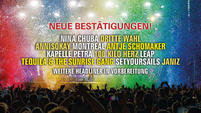 Deichkind, Nina Chuba, Madsen, Bukahara, Swiss & die anderen, 192 Boyz, Dritte Waghl, Annisokay, Montreal, Massendefekt, Antje Schomaker, Kapelle Petra, 100 Kilo Herz, Leap, KMPSPRT, Tequila & tge Sunrise Gang, Setyøursails, Janiz, Frog Bog Dosenbrand, Tyna. Weitere Acts folgen.