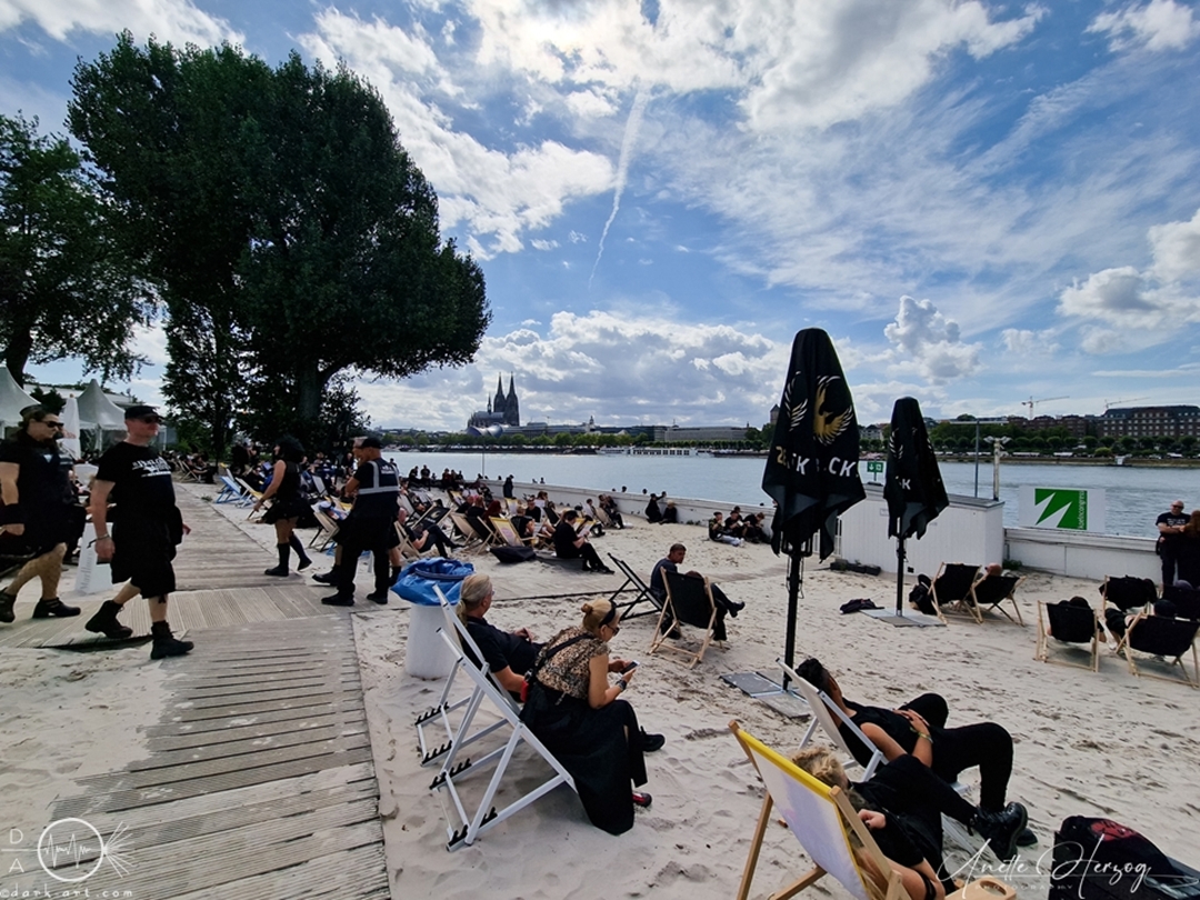 Außer der Mainstage und der Indoor-Bühne gibt es auch den Party-Katamaran MS Rheinenergie mit vollausgestatteter Innenbühne und für die Gothics, die sich ins Sonnenlicht trauen, ein feines Sonnendeck zum Abhängen. Sollte das Schiff einmal Wasserstands bedingt am anderen Rheinufer liegen, fährt ein bequemer Shuttlebus, quasi mit einer kleinen Rheinpromenadenrundfahrt, die dunklen Besucher zum Schiff. Es ist übrigens das gleiche Boot, welches auch für das „Unter schwarzer Flagge“ und ein bis zweimal im Jahr für einen Tagesausflug, mit jeweils vier spannenden Bands nach Königswinter zum Drachenfels, Kurs nimmt. Ein Event der Extraklasse, das man auf jeden Fall mal erlebt haben muss.