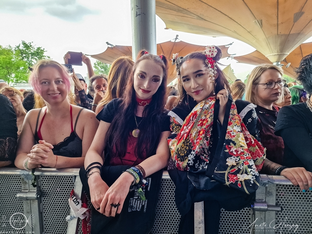 Der Tanzbrunnen ist der perfekte Veranstaltungsort, weil alles ganz nah beieinander ist – die Bühnen (außer die Orbit-Stage auf der MS Rheinenergie), die vielen Essens- und Verkaufsstände, der Beachclub und die vielen Möglichkeiten im Schatten oder in der Sonne ein Plätzchen zu finden. Der Brunnen, mit seinen um diese Jahreszeit knallbunt eingefassten Blumenrabatten, bietet optisch einen tollen Kontrast zu dem schwarzen Publikum. Ich schätze die tolle Atmosphäre, die friedvollen Besucher und die ca. 40 fantastischen Bands, die auf drei unterschiedlichen Bühnen an zwei Tagen auftreten. Von düsteren Klängen bis hin zu Elektro und Future Pop ist für jeden Geschmack etwas dabei.