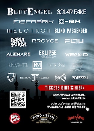 Auf der Main Stage erwartet euch ein abwechslungsreicher Mix aus modernen Synthpop-Acts und atmosphärischen Highlights: Knight$, Eklipse, Alienare und Eisfabrik liefern die perfekte Steigerung, bevor der Abend mit einem der größten Namen der Szene seinen Höhepunkt erreicht. Blutengel, Headliner des Festivals, werden den Festsaal Kreuzberg in eine düstere, visuell opulente Parallelwelt verwandeln.