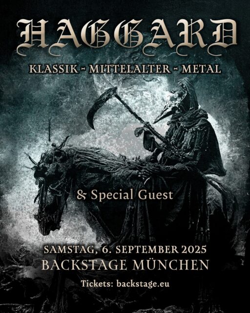 Am Samstag, dem 6. September 2025, gastiert die Formation Haggard im Backstage Werk in München. Die Band spielt dieses Jahr wieder ein paar einzelne Shows in diversen Ländern, in Deutschland haben sie sich unter anderem für das Backstage in München entschieden, wo sie in den letzten Jahren bereits ein paar Male zu Gast waren. Tickets zu dem Konzert findet man unter anderem direkt auf der Webseite des Backstage München, sowie bei anderen gängigen Händlern.