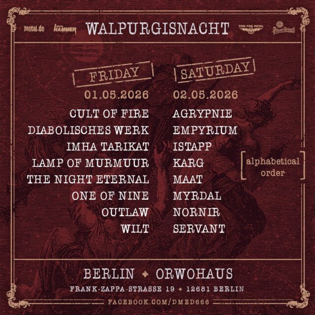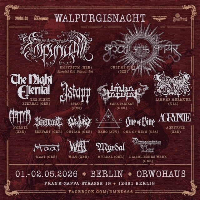 Die Walpurgisnacht kehrt am 1. und 2. Mai zum 5ten Mal nach Berlin zurück und verwandelt das ORWOhaus erneut in einen Treffpunkt für all jene, die Extreme Metal in seiner kompromisslosen, atmosphärischen und authentischen Form schätzen. Das Festival hat sich in den vergangenen Jahren neben dem Hauptfestival, dem De Mortem et Diabolum, als feste Größe im Berliner Underground etabliert: familiär, nahbar, mit klarer kuratorischer Linie und einem Fokus auf Bands, die abseits des Mainstreams arbeiten, aber künstlerisch zu den spannendsten Stimmen des Genres gehören.