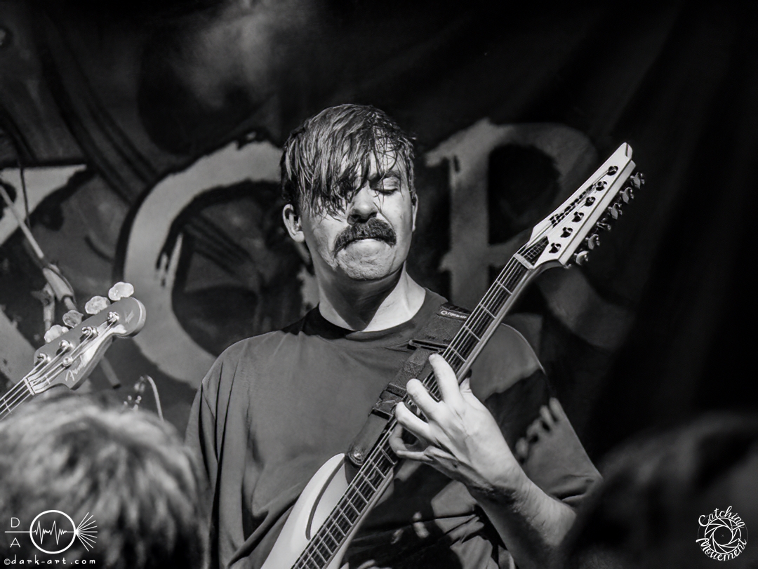 Auch hier ergänzen sich die Melodien perfekt mit dem Gesang und so gibt es den einen oder anderen Progressive-Metal Moment. Last but not least haben wir noch den Schlagzeuger. Er schleudert uns in regelmäßigen Abständen die Blast Beats um die Ohren. Bei so viel geballter Energie auf der Bühne war es nicht verwunderlich, dass das Kesselhaus in Wiesbaden schon beim zweiten Song so richtig brodelte. Für eine unbekannte Vorband finde ich das schon eine tolle Leistung.