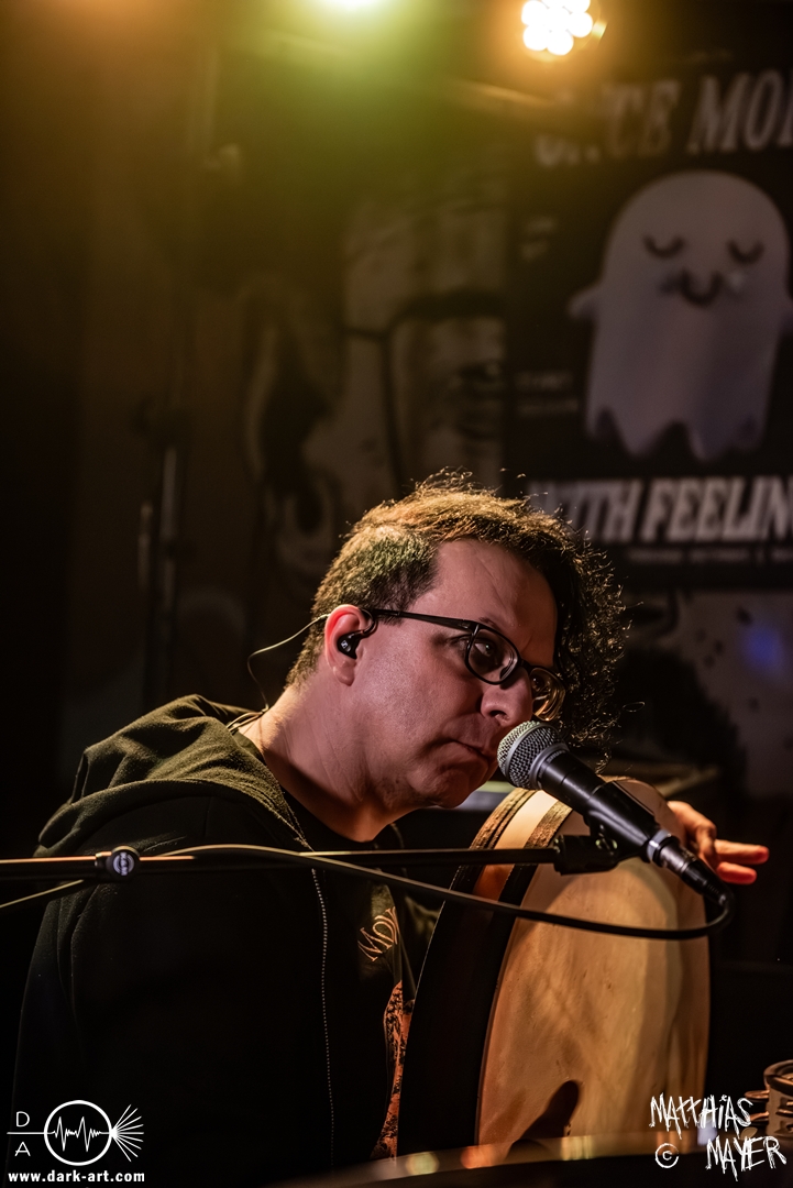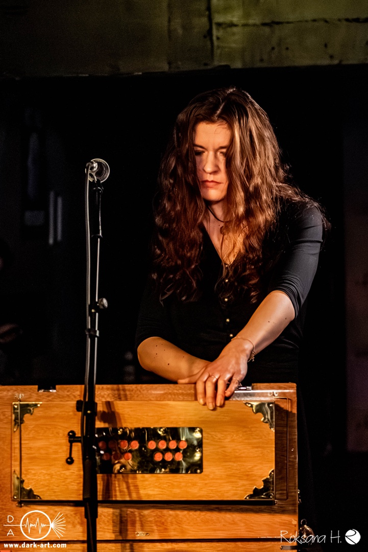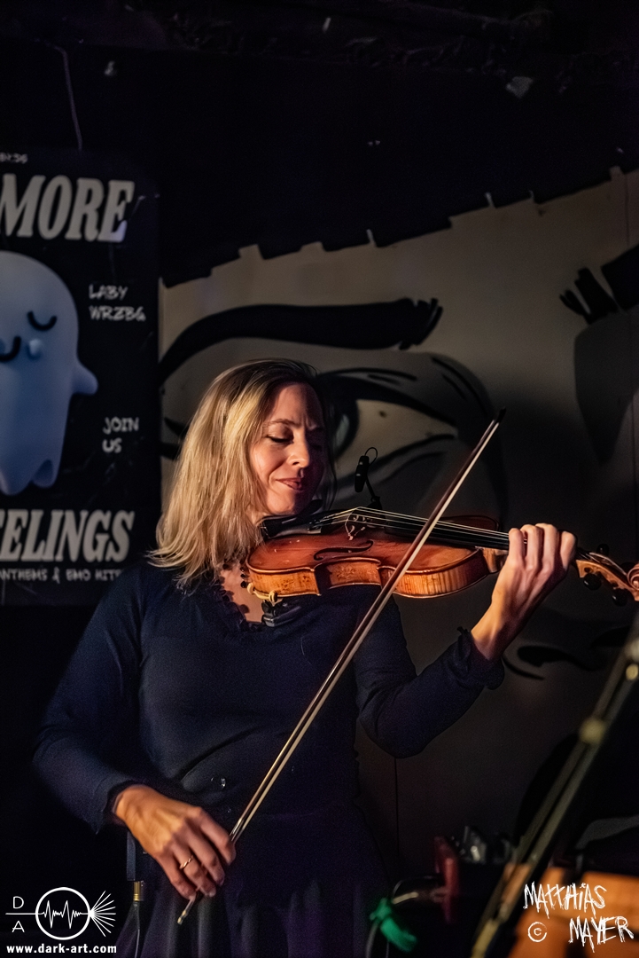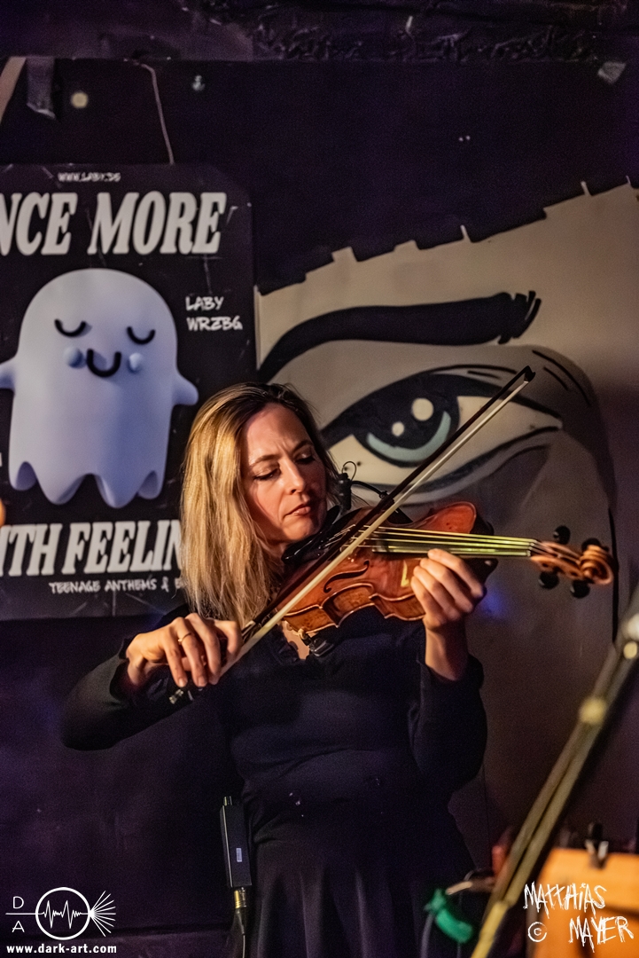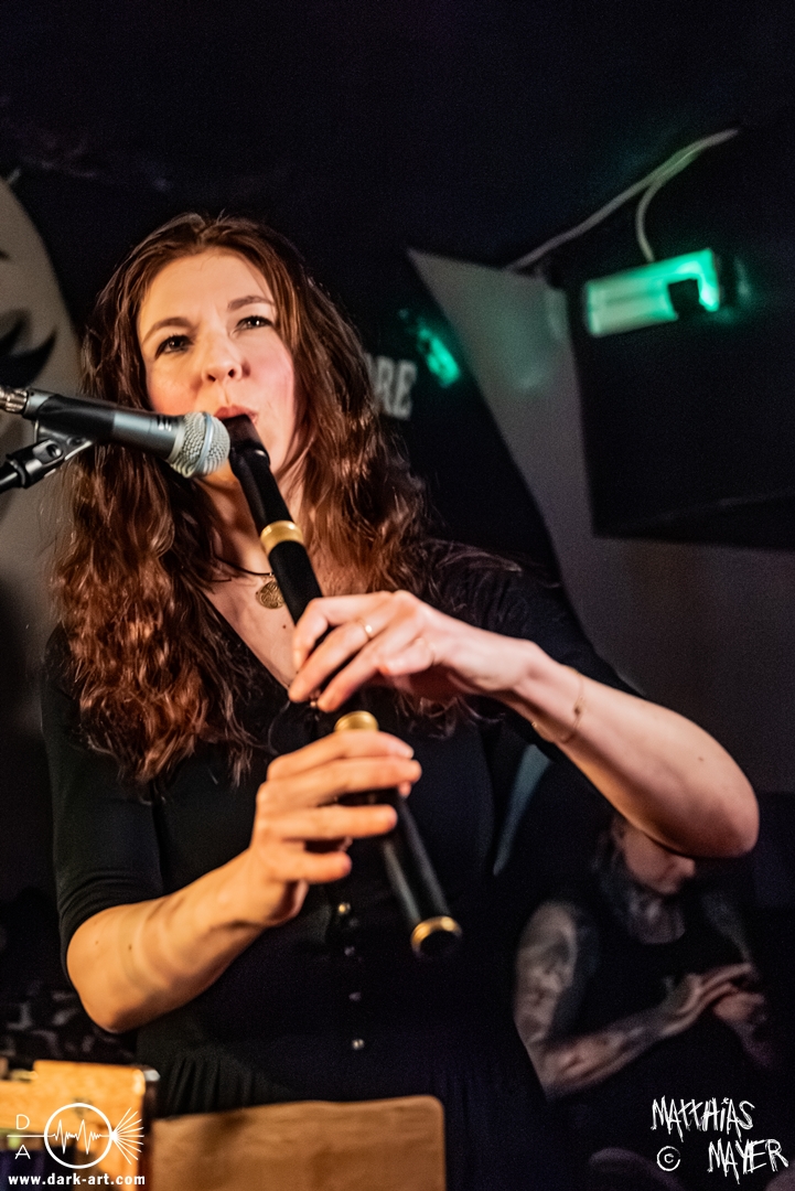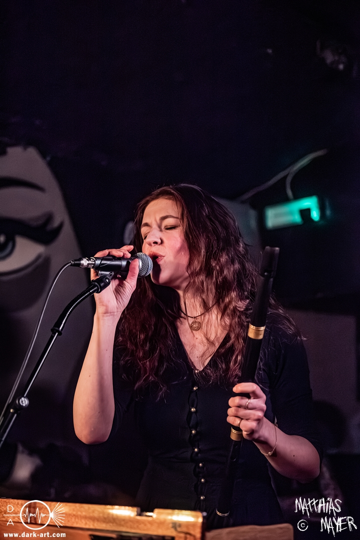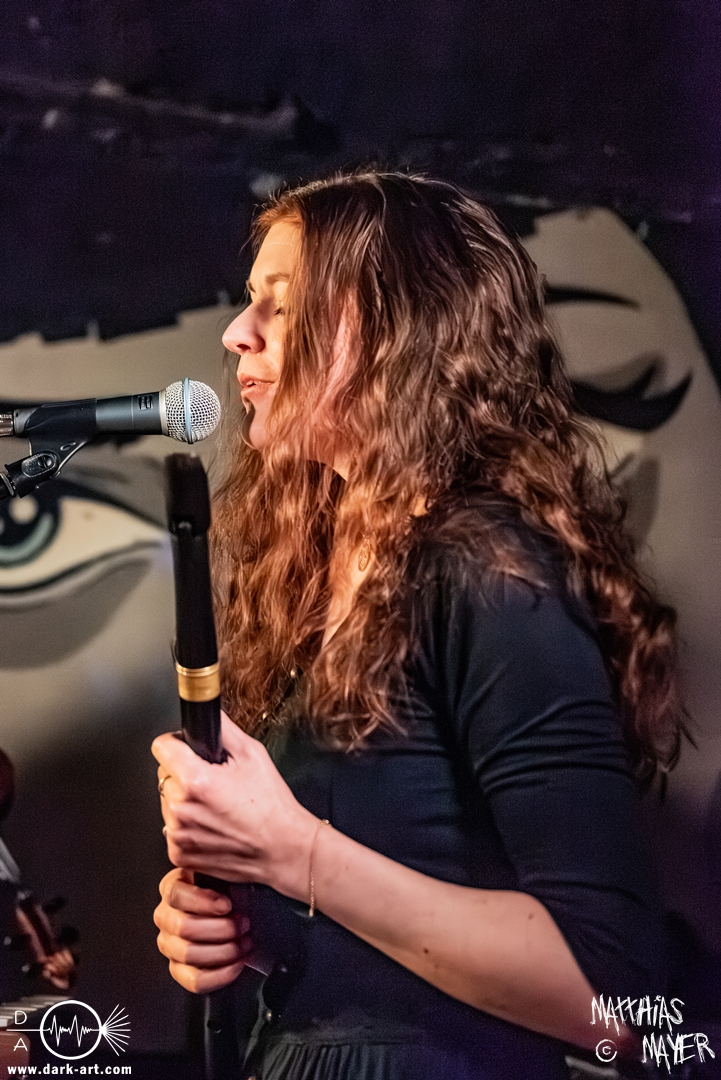 Ihre Musik lebt von einer vielschichtigen Instrumentierung: Flöten und irische Whistles, Gitarren, Tasteninstrumente, Percussion, Streicher und mehrstimmiger Gesang verschmelzen zu einem melancholischen, zugleich kraftvollen Klangbild. Auch an diesem Abend hatte das Würzburger Trio einen Gast an der Geige dabei: Caroline Salmona von Can Bardd und Empyrium.