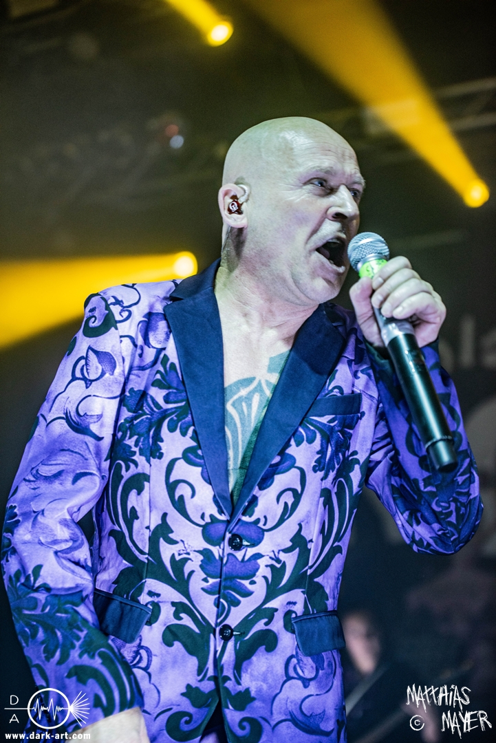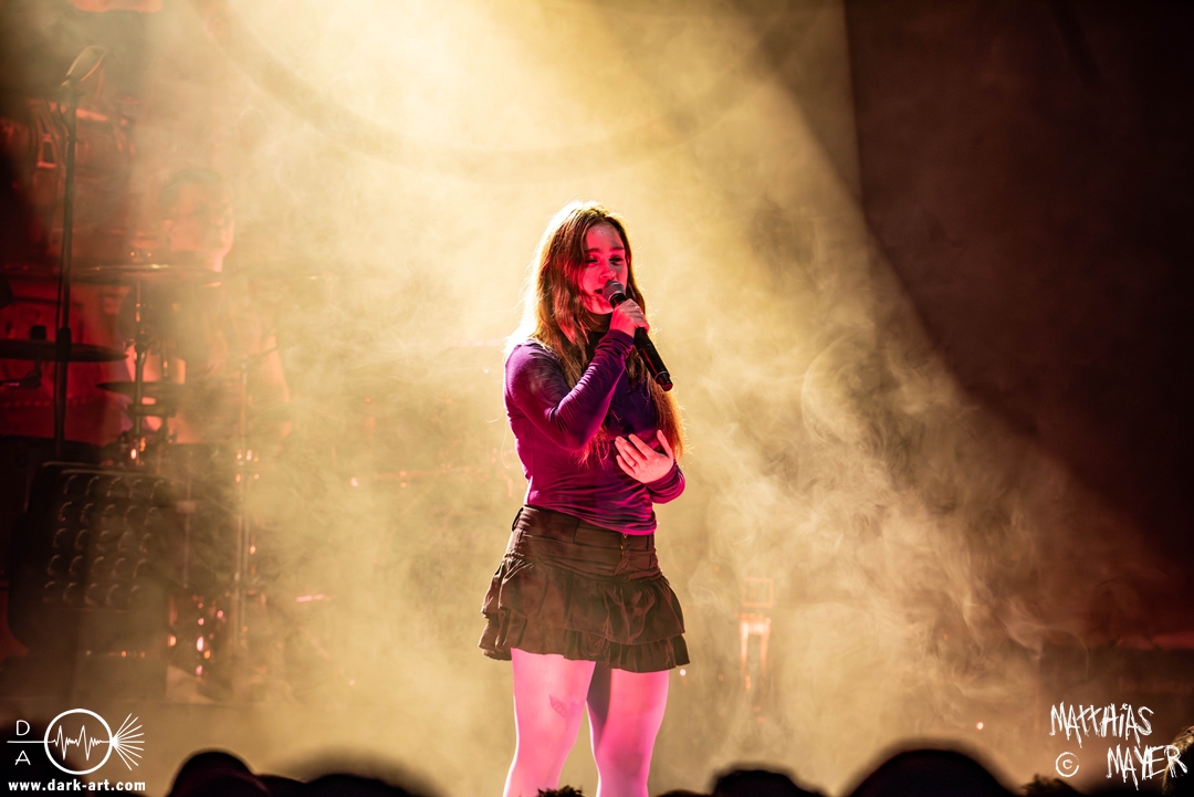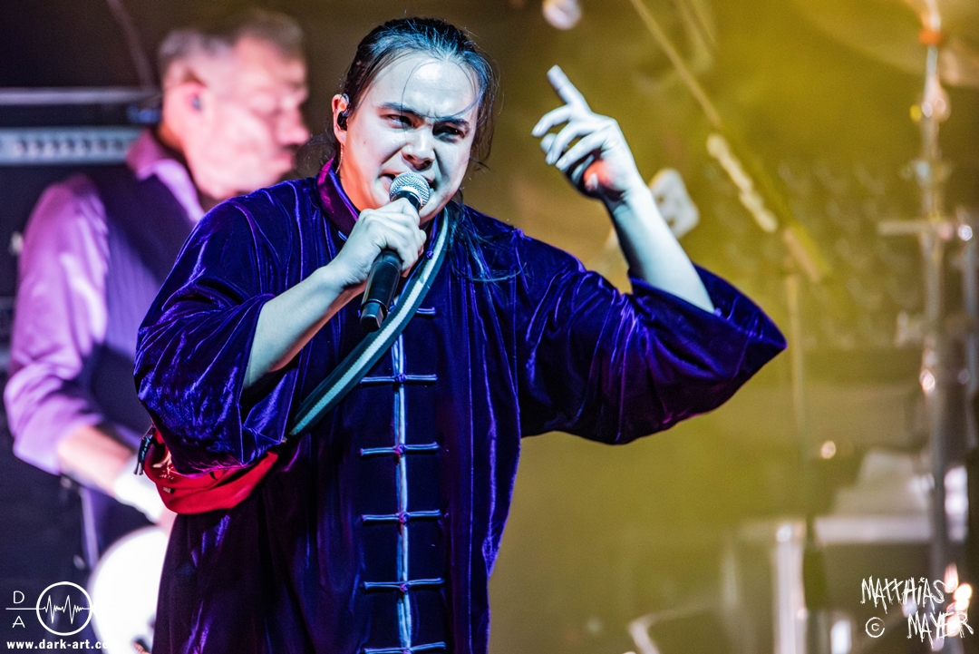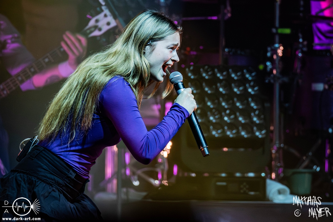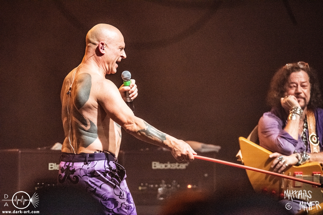 Für den nächsten Song kam erstmals die Backgroundsängerin auf die Bühne: Agnetha, die Tochter von Stumpen. Sie wurde von Tim Tom, dem Sohn von Alf Ator, unterstützt. Beide sangen, Ich verachte Jugendlichr, mit einer stimmlichen Gewalt und mit der passenden Parodie hinten dran. Während des Songs kam dann Stumpen mit Konfettikanone um die Ecke und befeuerte die Kids. Danach folgte ein Solostück von Tim Tom: Böse. Vorher noch im Sopran unterwegs, growlte er jetzt, was das Zeugs hergibt und die Mimik hatte er sich von den Großmeistern Alf Ator und Stumpen abgeguckt. Während des Songs Böse kam Stumpen kurz an die Bühne, ließ seine Hose noch fallen und performte fortan den Rest des Konzerts in goldenen Boxershorts.