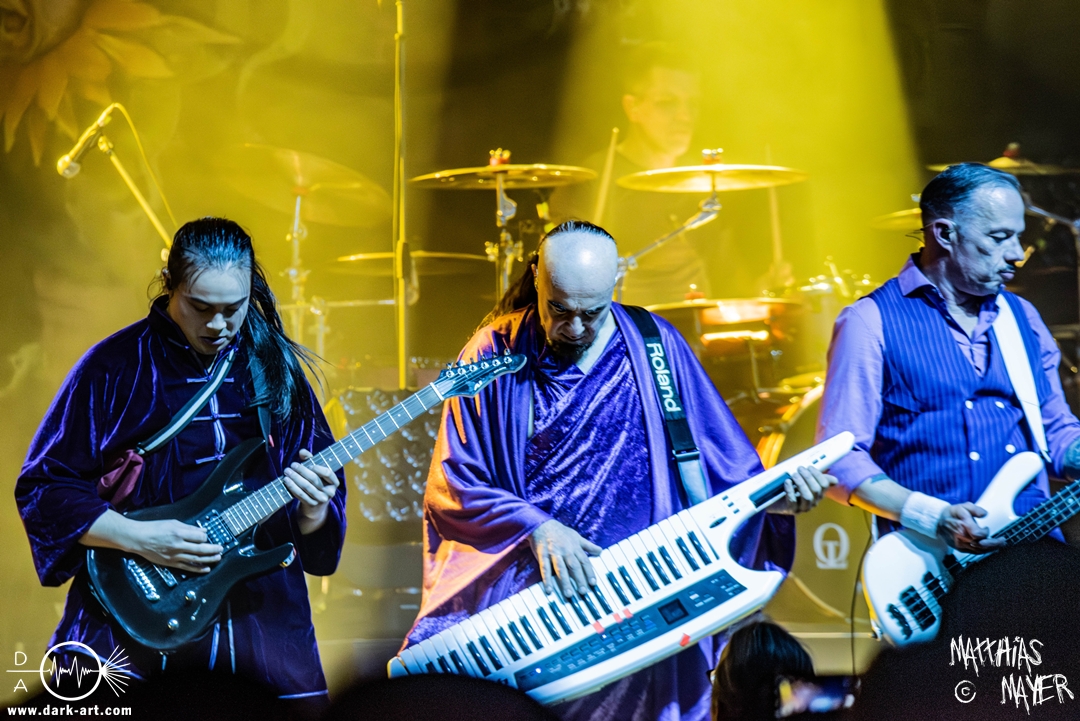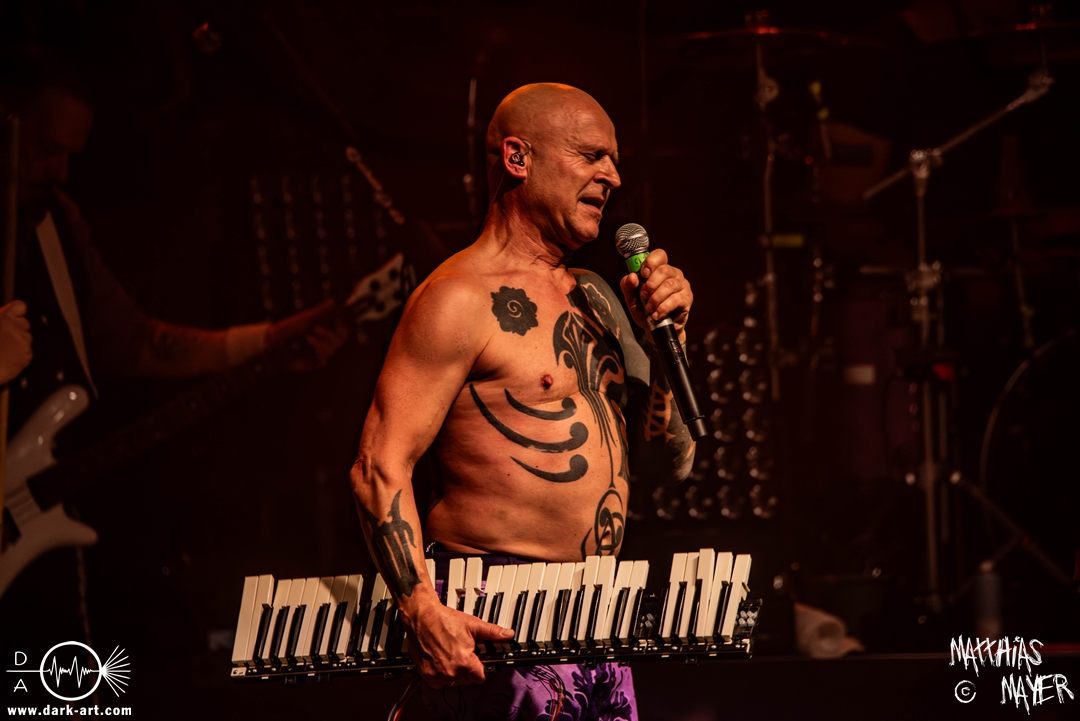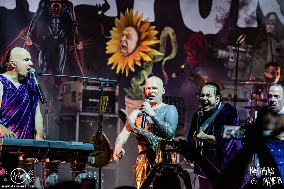 Zum Aufwärmen wurden über eine tragbare Leinwand Musikvideos abgespielt. Schon bevor die ersten Töne erklangen, war klar: Hier wurde nicht einfach ein Konzert gespielt, hier wurde ein Erlebnis zelebriert, das sich irgendwo zwischen Chaos und Genialität verortete. Das Intro hatte es schon in sich, und es wurde mit einer Kinderstimme die Textzeile „jede Zelle meines Körpers ist glücklich und fühlt sich wohl“ zelebriert. Mit den ersten Keyboardtönen von Alf Ator ging das Konzert mit Das Unheil los.