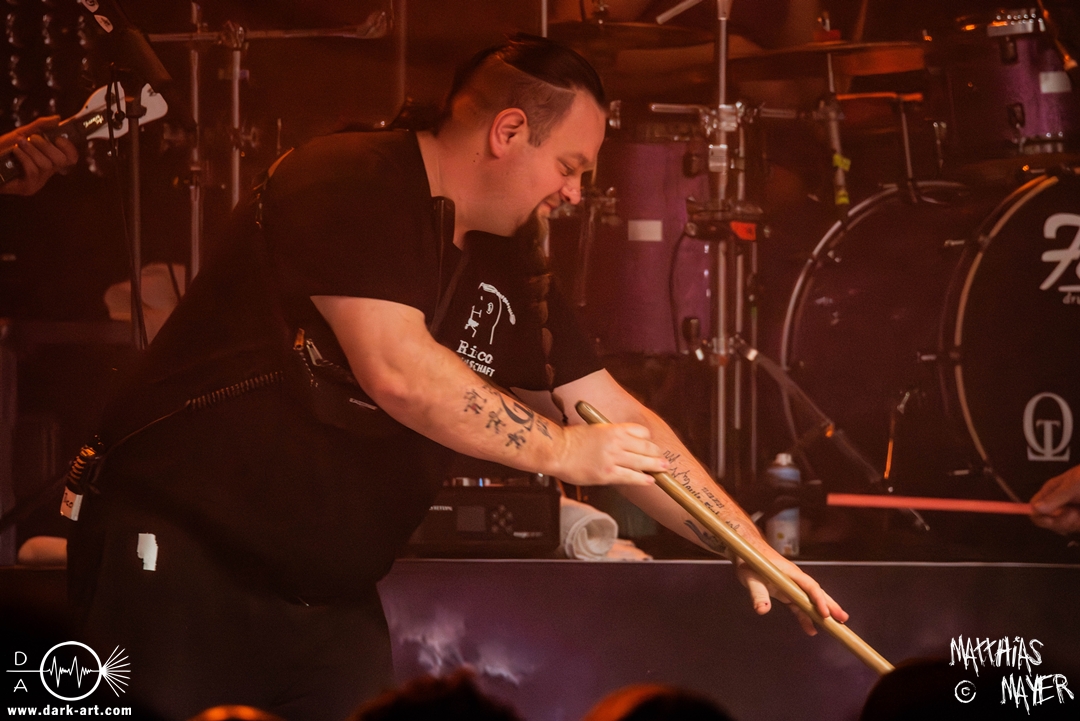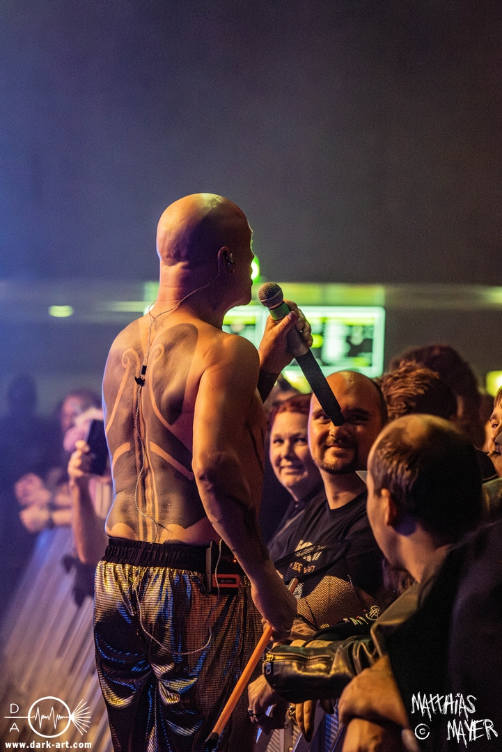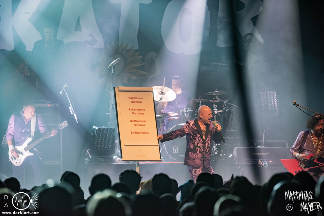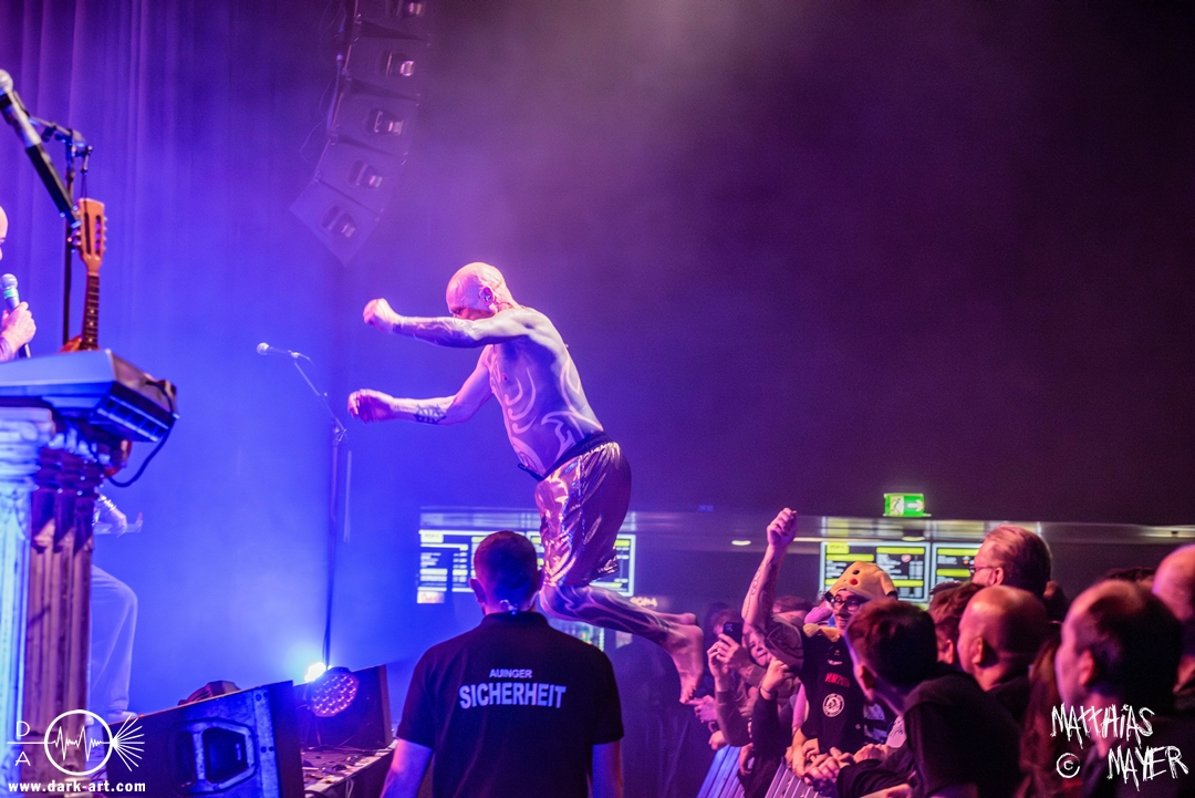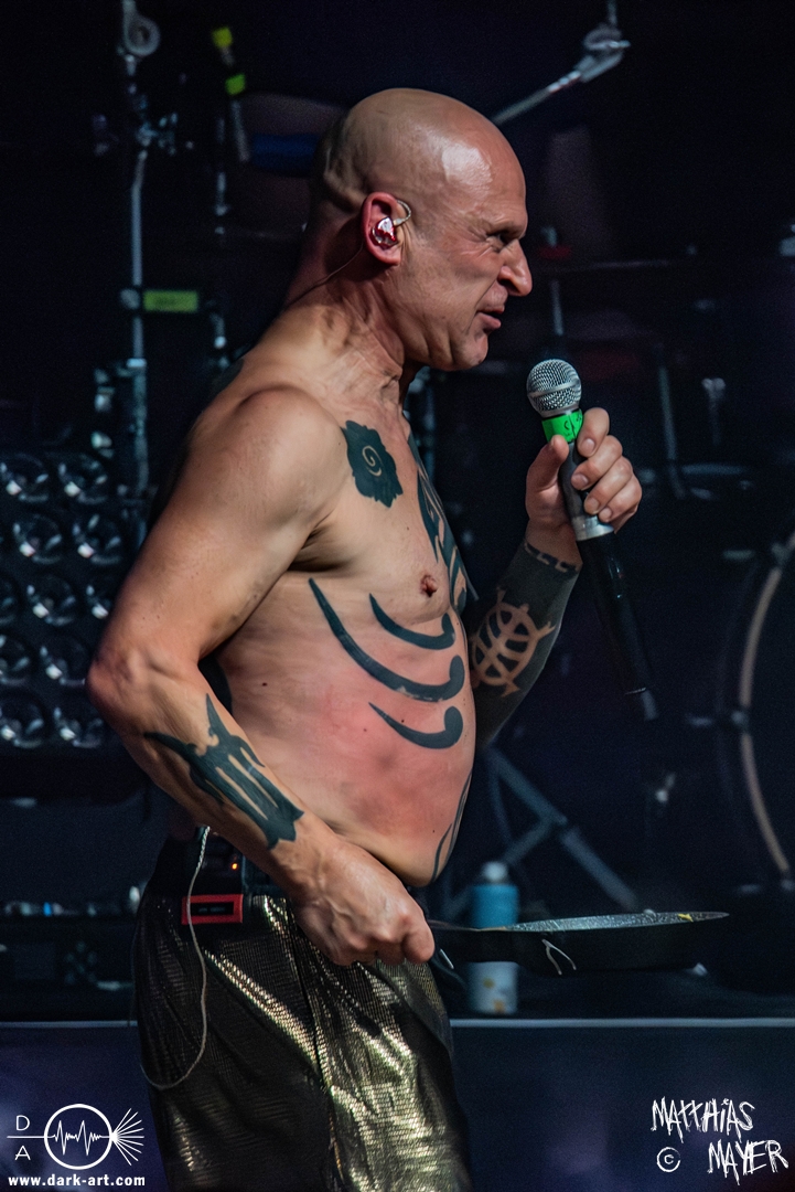 Mit Buchstabe kamen, neben den Einflüssen der Neuen Deutschen Härte, auch die gewohnten kabarettistischen Züge. Wir durften laut mit Stumpen pupsen, ekstatisch anfeuern, headbangen und tanzen. Wer jetzt auf Durchatmen hoffte, irrte: Mit Es kotzt mich an ging es weiter in der wilden Jubiläumsfeier, und Alf Ator kam das erste Mal ans Mikro. Stumpen und Alf Ator brüllten den Songtitel ins Mikro und holten an der passenden Textstelle die (Schwimm)nudel hervor, um sich in den Fotograben, und Buzz Dee, zu schlagen. Schlag auf Schlag ging die Show weiter, und ISMUS wurde für alle nicht textsicheren Fans mit einem Whiteboard hinterlegt.