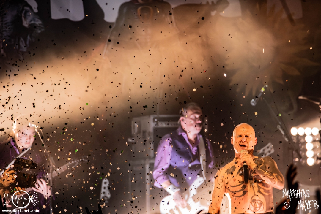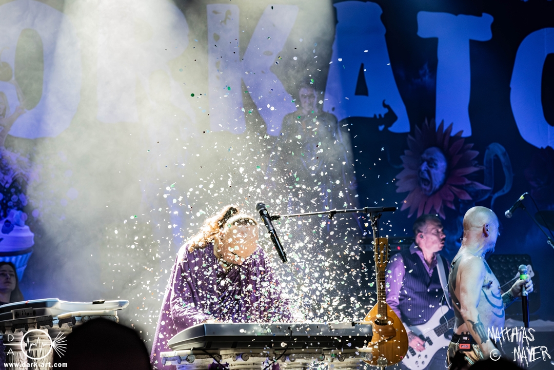 Knorkator, die sich selbst als „Deutschlands meiste Band der Welt“ bezeichnen, sind berüchtigt für ihre irrwitzige Mischung aus Metal, Kabarett und experimenteller Performancekunst. Und so war es auch in Würzburg: Die Bühne versprach nicht nur Musik, sondern ein Spektakel, das zwischen brachialem Sound und trockenem Humor pendelte.
