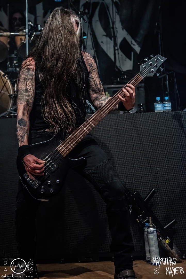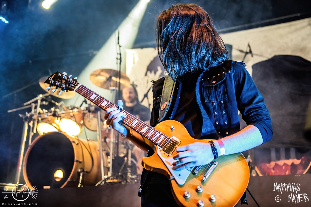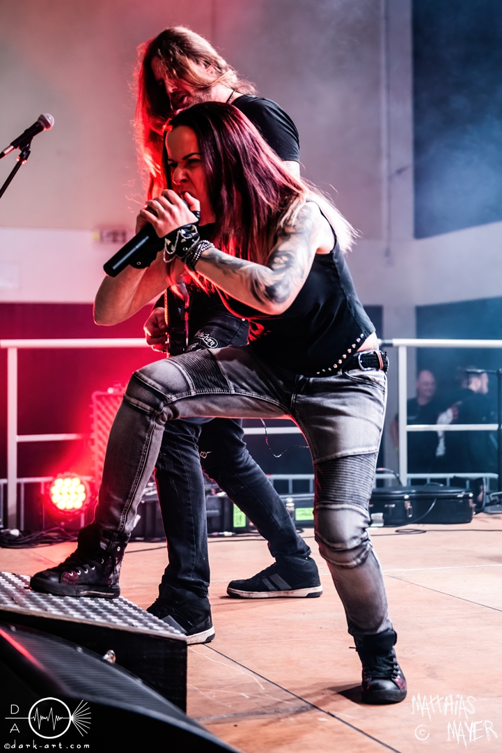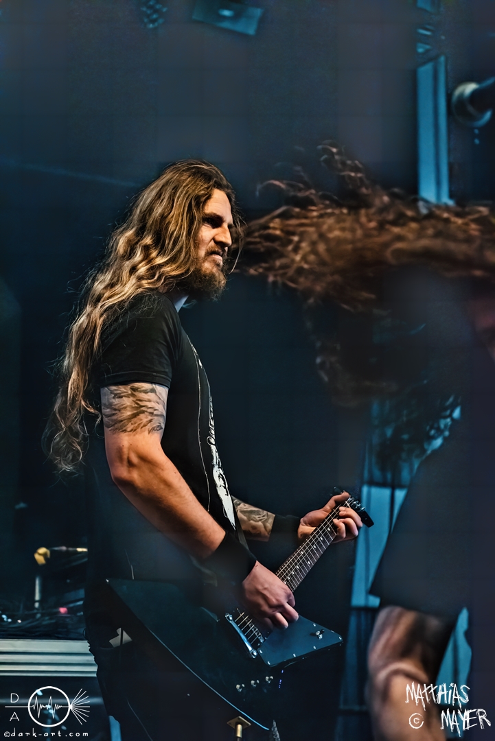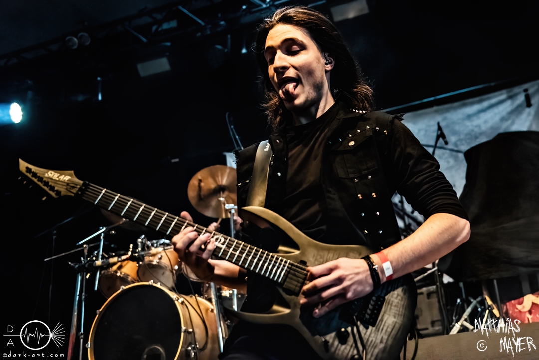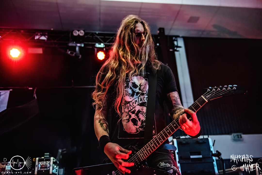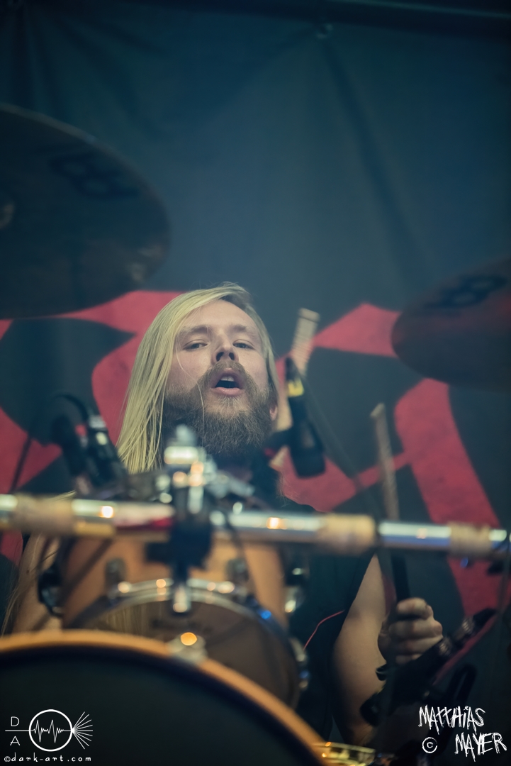 Den Tag durfte die Melodic-Death-Metal-Band Isn’t aus Limburg an der Lahn eröffnen. Ich habe immer den Eindruck, dass sich gerade die ersten Bands auf einem Festival besonders viel Mühe mit ihrem Auftritt geben, um die Besucher besonders von sich zu überzeugen. Diesen Eindruck hatte ich auch von Isn’t, welche wirklich das gesamte ABC der Liveauftritte absolvierte. Die gesamte Band, außer dem Drummer, ließen die Haare in besonders beeindruckender Weise fliegen, wobei manchmal auch ein Ventilator nachgeholfen hat. Es wurde super cool mit den Instrumenten posiert oder miteinander lässig interagiert. Der Drummer verschwand fast vollständig aus meinem Sichtfeld, was an der Konstruktion der Bühne lag. Die Drums wurden auf einer mannshohen Tribüne aufgestellt, weshalb die Musiker dort oben über der restlichen Band thronten. Dies war ein beeindruckender Anblick, aber manchmal wirkte der Drummer außerhalb der Formation innerhalb der Band. Davon abgesehen konnte Isn’t mit ihrem leidenschaftlichen Auftritt eine Menge Zuschauer überzeugen, die langsam immer näher an die Bühne gingen. Dies kann auch an der feurigen Darstellung und dem Gesang von Frontfrau Márta Sivák liegen. Ihre tiefen Growls bretterten beständig über die Bühne hinweg. Unter lautem Applaus beendeten sie ihr Set und den Auftakt des No-SAX.
