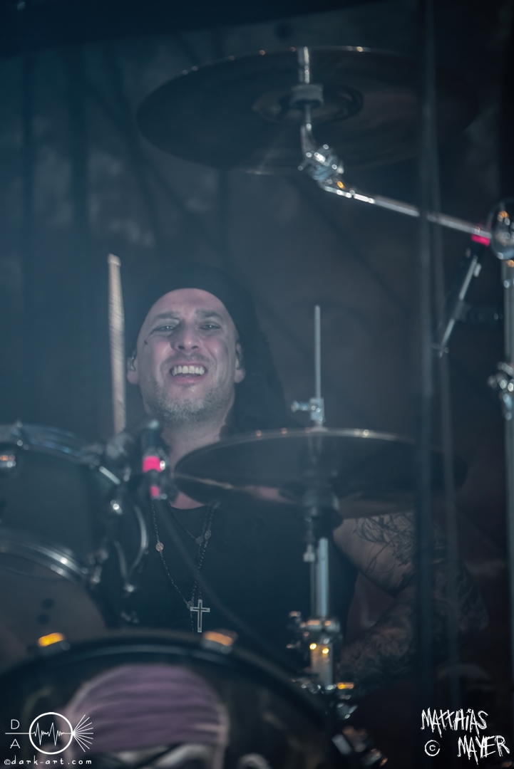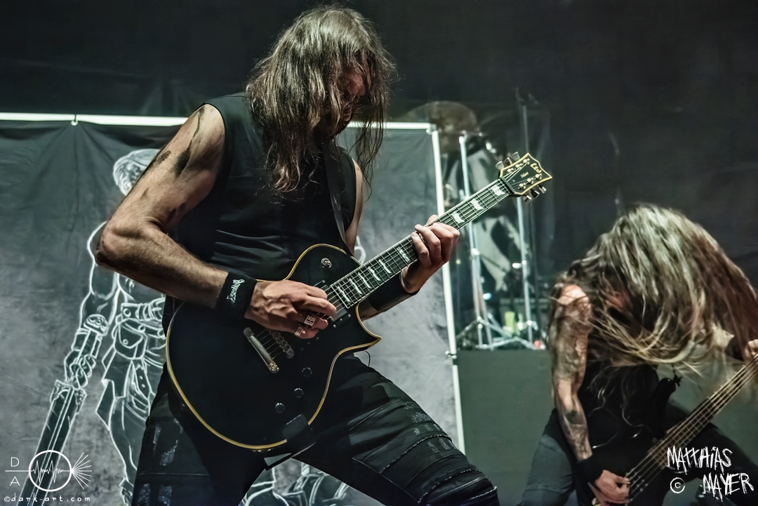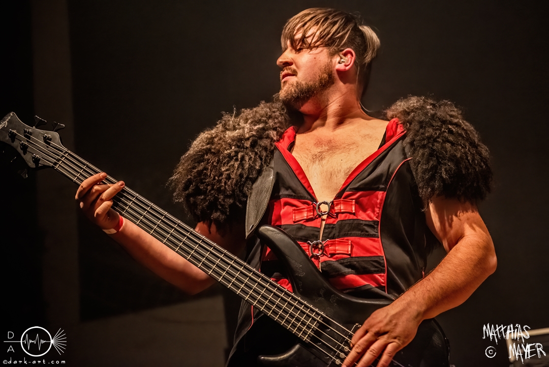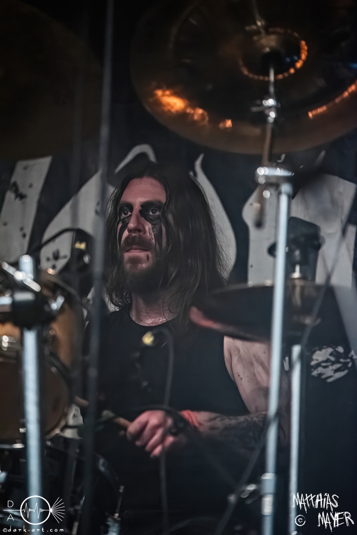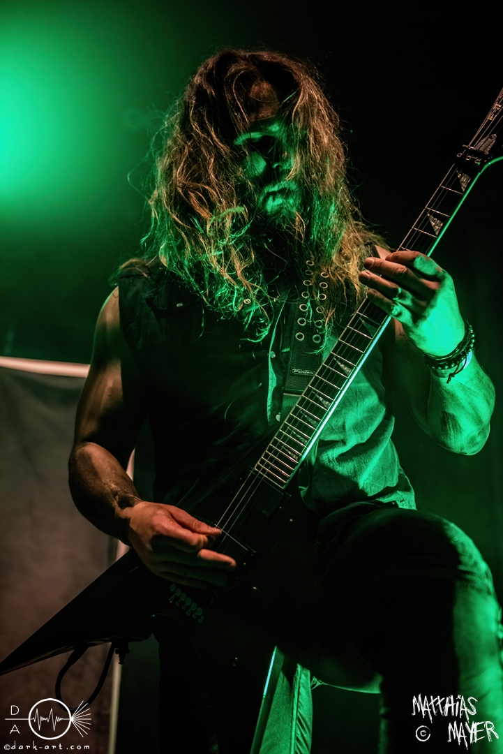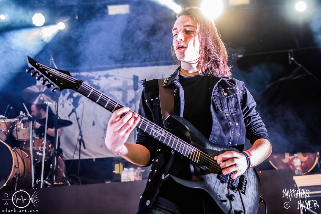 Den Tag durfte die Melodic-Death-Metal-Band Isn’t aus Limburg an der Lahn eröffnen. Ich habe immer den Eindruck, dass sich gerade die ersten Bands auf einem Festival besonders viel Mühe mit ihrem Auftritt geben, um die Besucher besonders von sich zu überzeugen. Diesen Eindruck hatte ich auch von Isn’t, welche wirklich das gesamte ABC der Liveauftritte absolvierte. Die gesamte Band, außer dem Drummer, ließen die Haare in besonders beeindruckender Weise fliegen, wobei manchmal auch ein Ventilator nachgeholfen hat. Es wurde super cool mit den Instrumenten posiert oder miteinander lässig interagiert. Der Drummer verschwand fast vollständig aus meinem Sichtfeld, was an der Konstruktion der Bühne lag. Die Drums wurden auf einer mannshohen Tribüne aufgestellt, weshalb die Musiker dort oben über der restlichen Band thronten. Dies war ein beeindruckender Anblick, aber manchmal wirkte der Drummer außerhalb der Formation innerhalb der Band. Davon abgesehen konnte Isn’t mit ihrem leidenschaftlichen Auftritt eine Menge Zuschauer überzeugen, die langsam immer näher an die Bühne gingen. Dies kann auch an der feurigen Darstellung und dem Gesang von Frontfrau Márta Sivák liegen. Ihre tiefen Growls bretterten beständig über die Bühne hinweg. Unter lautem Applaus beendeten sie ihr Set und den Auftakt des No-SAX.