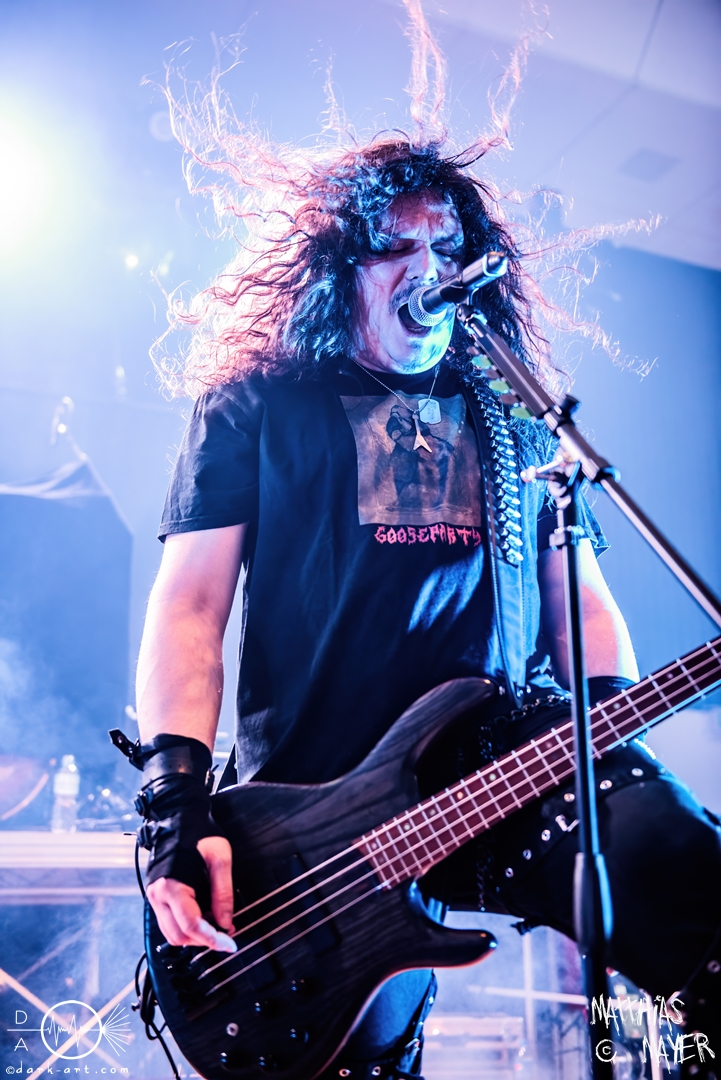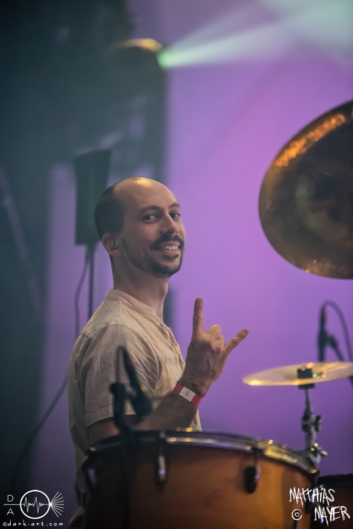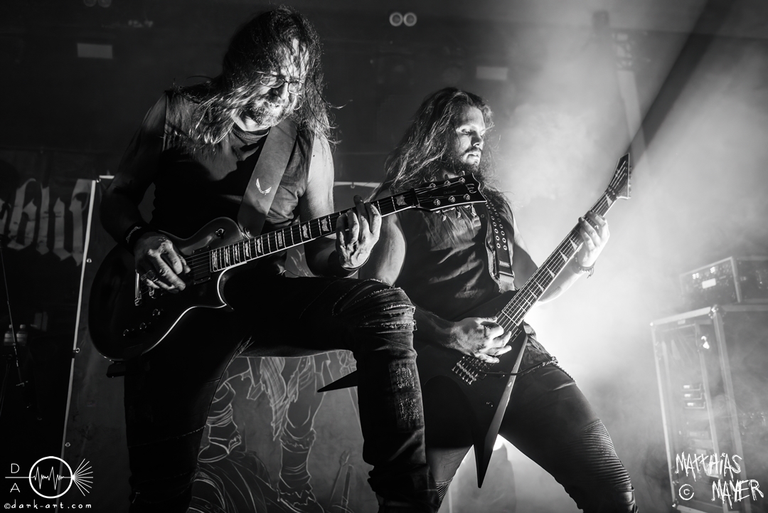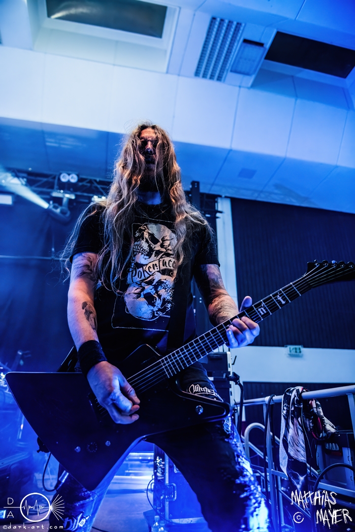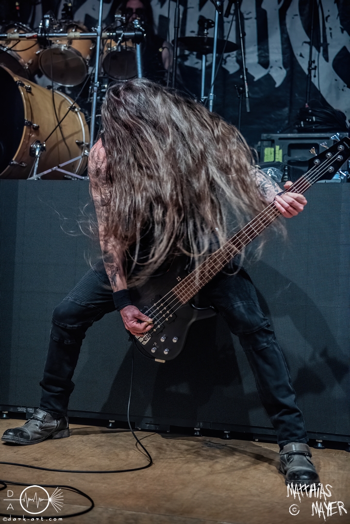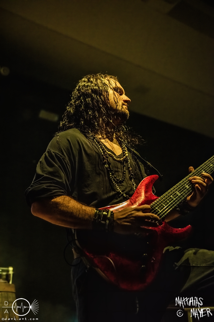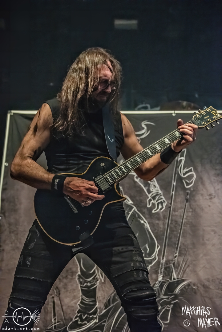 Den Tag durfte die Melodic-Death-Metal-Band Isn’t aus Limburg an der Lahn eröffnen. Ich habe immer den Eindruck, dass sich gerade die ersten Bands auf einem Festival besonders viel Mühe mit ihrem Auftritt geben, um die Besucher besonders von sich zu überzeugen. Diesen Eindruck hatte ich auch von Isn’t, welche wirklich das gesamte ABC der Liveauftritte absolvierte. Die gesamte Band, außer dem Drummer, ließen die Haare in besonders beeindruckender Weise fliegen, wobei manchmal auch ein Ventilator nachgeholfen hat. Es wurde super cool mit den Instrumenten posiert oder miteinander lässig interagiert. Der Drummer verschwand fast vollständig aus meinem Sichtfeld, was an der Konstruktion der Bühne lag. Die Drums wurden auf einer mannshohen Tribüne aufgestellt, weshalb die Musiker dort oben über der restlichen Band thronten. Dies war ein beeindruckender Anblick, aber manchmal wirkte der Drummer außerhalb der Formation innerhalb der Band. Davon abgesehen konnte Isn’t mit ihrem leidenschaftlichen Auftritt eine Menge Zuschauer überzeugen, die langsam immer näher an die Bühne gingen. Dies kann auch an der feurigen Darstellung und dem Gesang von Frontfrau Márta Sivák liegen. Ihre tiefen Growls bretterten beständig über die Bühne hinweg. Unter lautem Applaus beendeten sie ihr Set und den Auftakt des No-SAX.