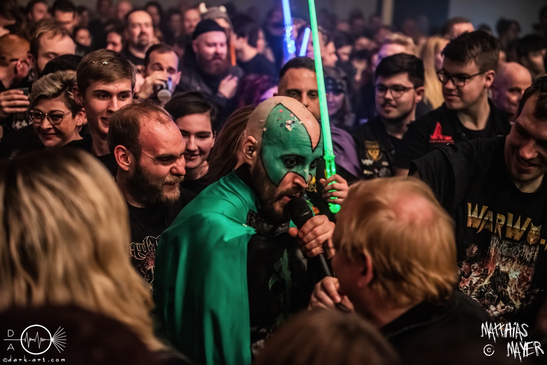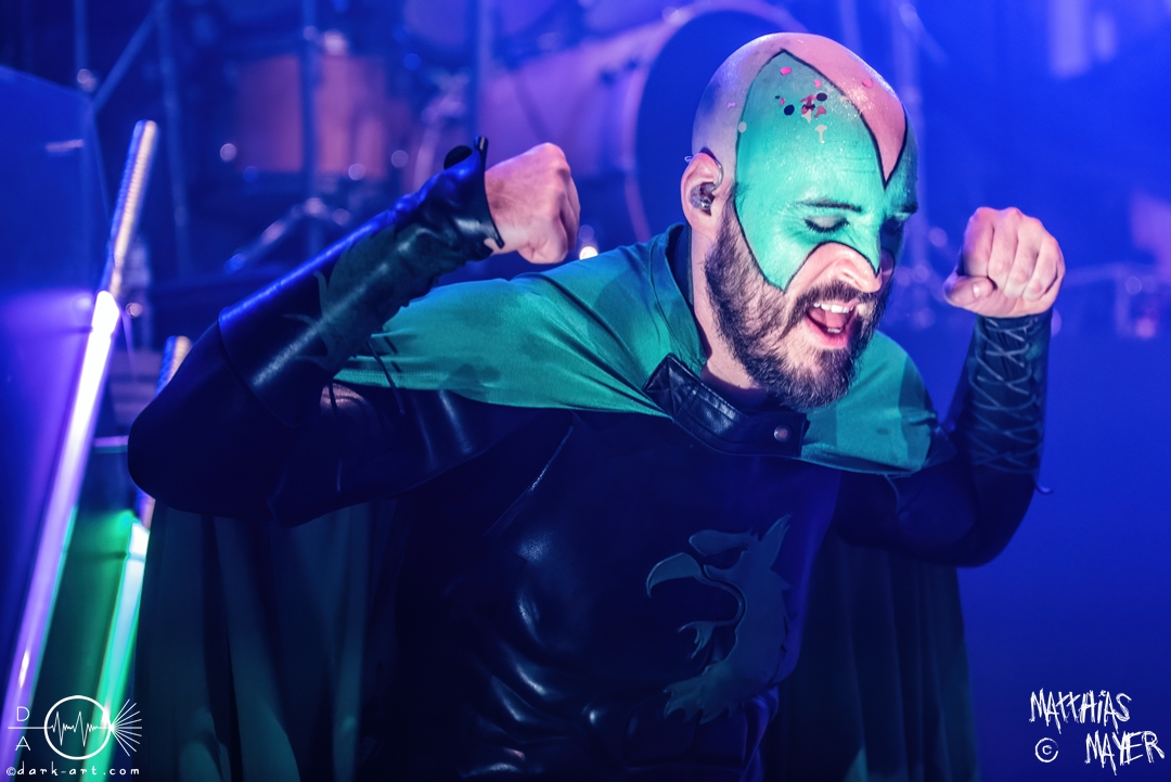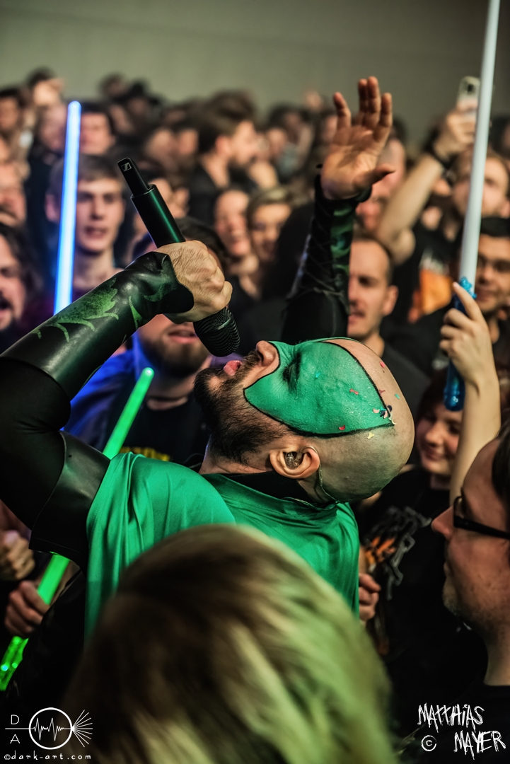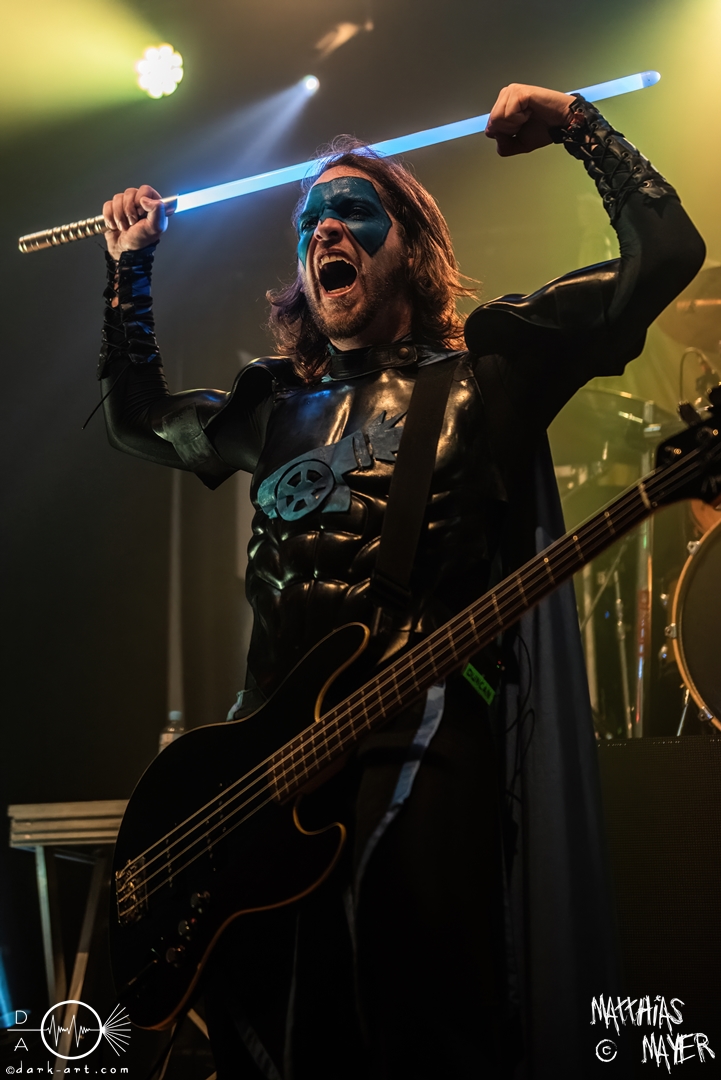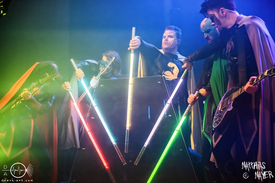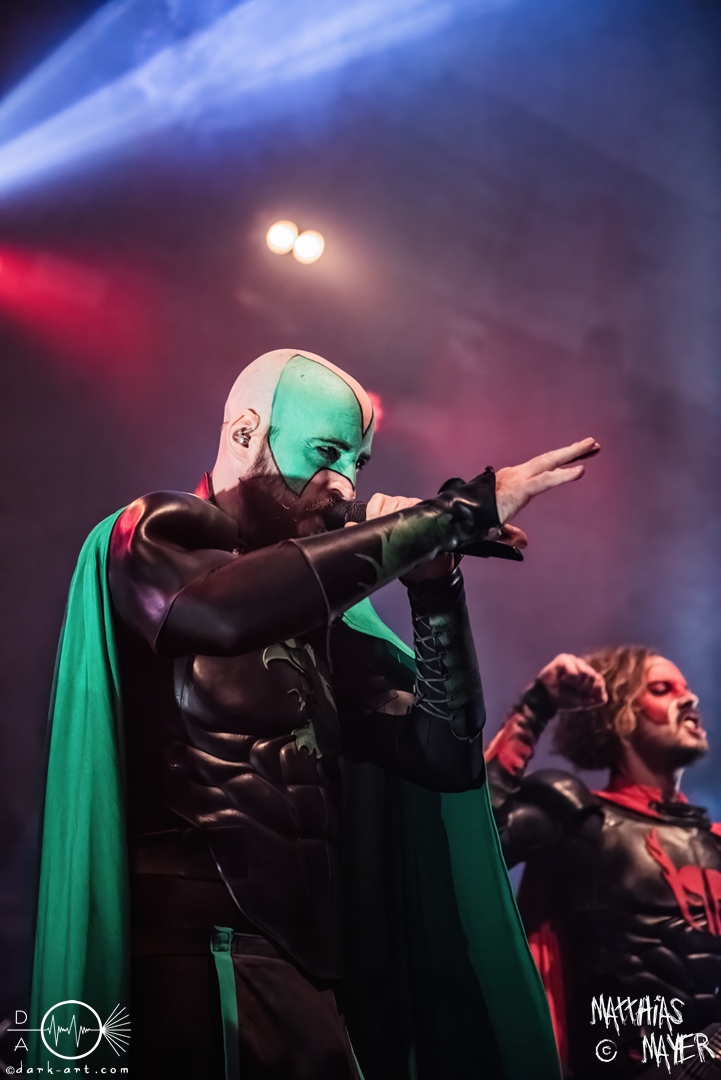 Vom Kriegerepos zu einer echten Superheldengeschichte! Die Heros von Grailknights traten wieder einmal im Kampf um den Gral gegen Dr. Skull von Castle Grailskull an. Wir, der Battlechoir, mussten ihnen dabei lauthals und mit gestählten Muskeln beistehen. Mit einem Lichtschwert und dem begehrten Gral erschien der Antagonist und wurde dafür ausgiebig ausgebuht. Kurz darauf betraten die Helden von den Grailknights die Bühne. Nach dem zweiten Lied wurden die einzelnen Kämpfer der Gerechtigkeit mit bombastischen Soundeffekten vorgestellt und der Battlechoir sollte ihren Respekt in Form angespannter Oberarme zollen. Später stieg der Sänger Sir Optimus Prime bei dem Lied Mourning Dew zu uns einfachen Menschen herab und gab uns die Kraft für ein ausgiebiges Gemoshe! Dann erschien plötzlich und ohne Vorwarnung unser Bösewicht Dr. Skull wieder auf der Bühne. Eine Stimme aus dem Off pries Lichtschwerter von Grailknights als effektives und kostengünstiges Instrument eines Superhelden an und dass wir diese am Merch erwerben könnten. Leider machte unser Antagonist und Werbematerialträger keinen guten Job und verkackte offiziell diesen Werbespot. Später, nachdem die mächtigen Laser Raptor 3D gesichtet wurden, erhielten die Zuschauer einen Einblick in den Ursprung der übermenschlichen Superheldenkraft der Grailknights, und zwar das Trainingsprogramm „Grailrobic“ mit Sovereign Storm und Count Cranium. Die gesamte Halle ging in Superheldenpose wiederholt in die Hocke und spannte die Oberarme an, um später fit für den großen Kampf gegen Dr. Skull zu sein. Nach dem legendären Superheromedley wurden wir Zeugen des großen Kampfes Gut gegen Böse. In Slow Motion besiegten die Grailknights ihren Widersacher und erlangten den Gral zurück. Dann wurde auch kurz vor dem Ende noch We Are The Champions von Queen gespielt, bevor es zum fulminanten Finale überging. Dabei versuchte Sir Optimus Prime über die Crowd zu surfen, aber stürzte beim ersten Versuch ab. Souverän versuchte er es erneut und kam einige Meter weit, bevor sein Team ihn wieder brauchte. So endet diese Heldengeschichte, Battlechoir! Yes Sire!