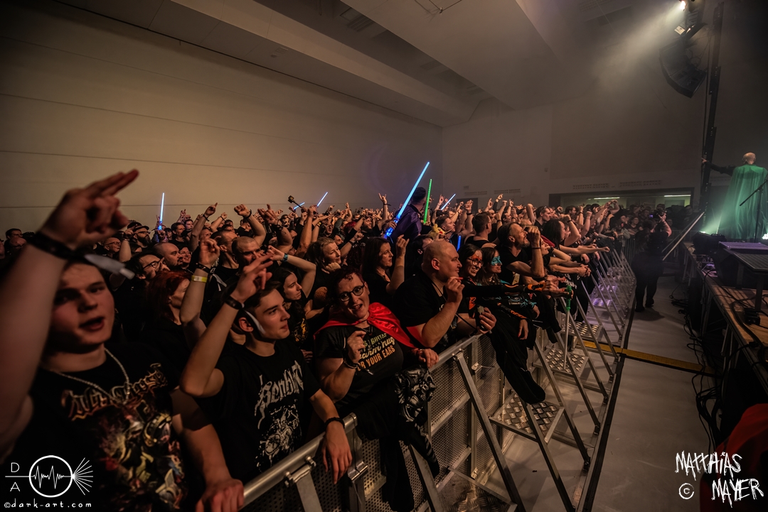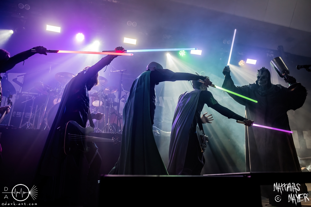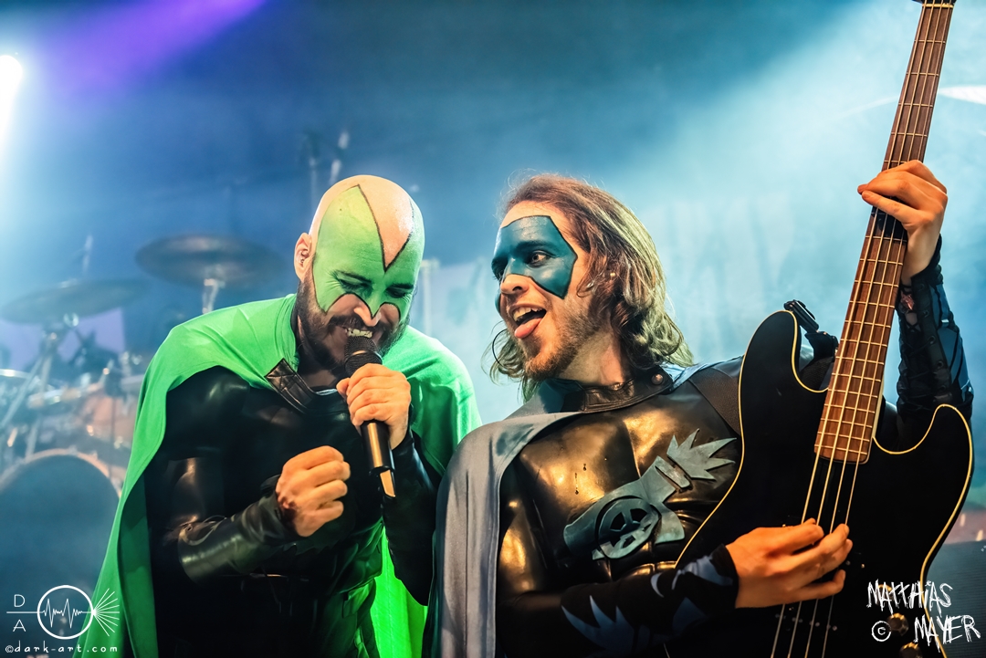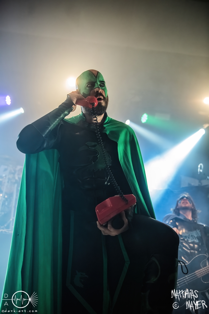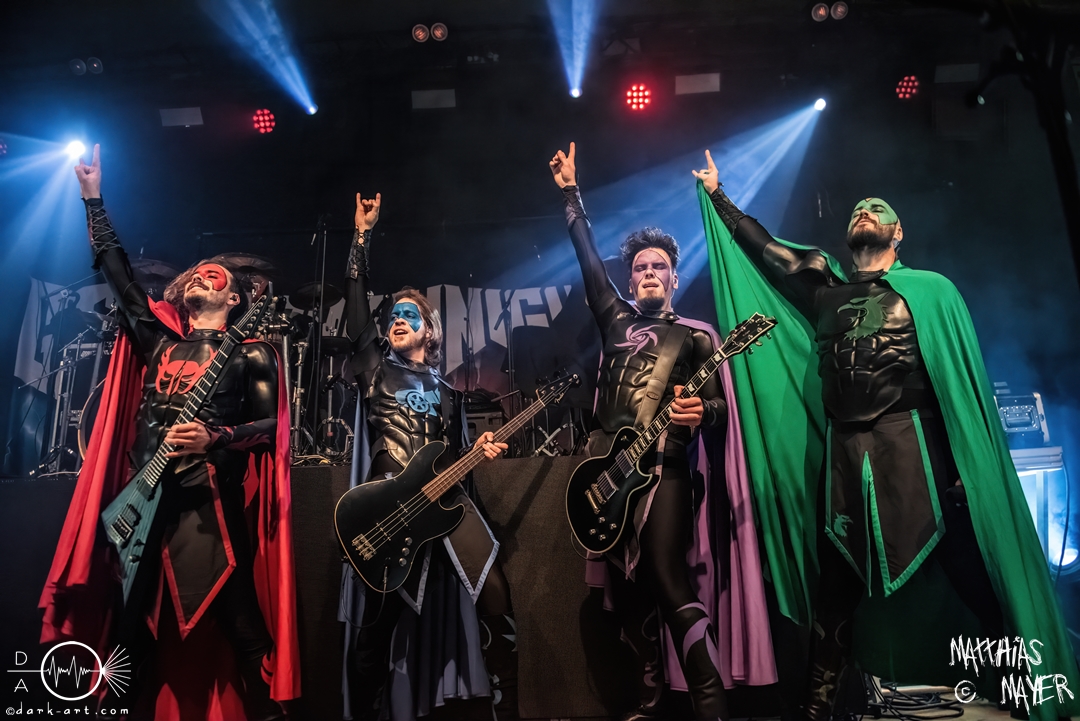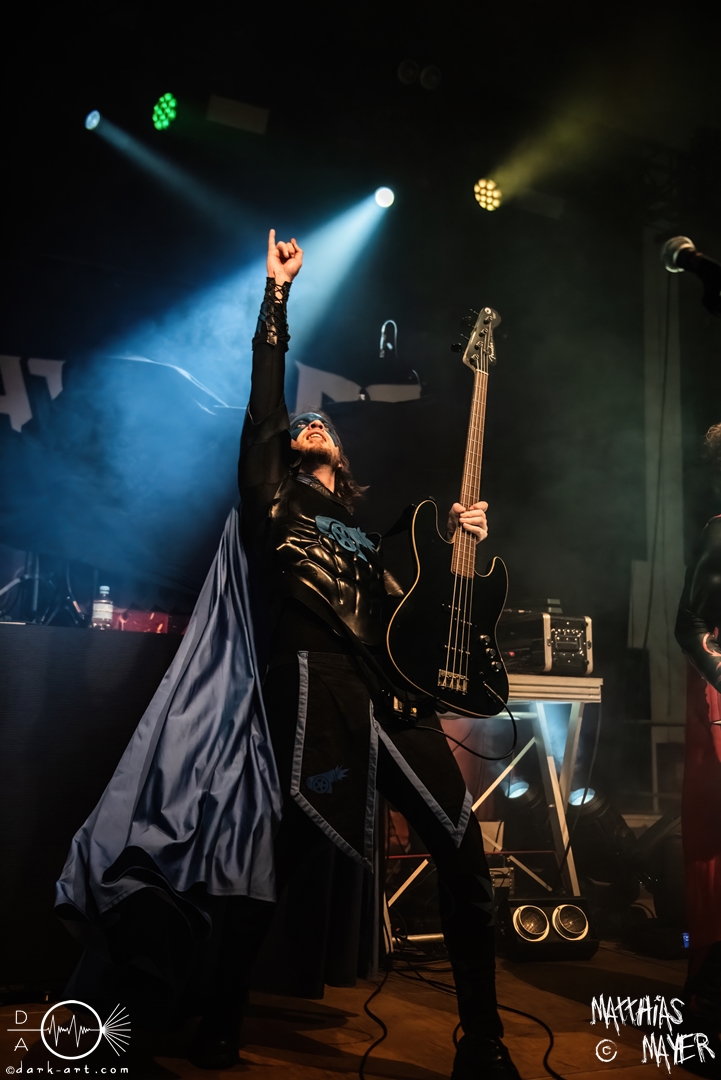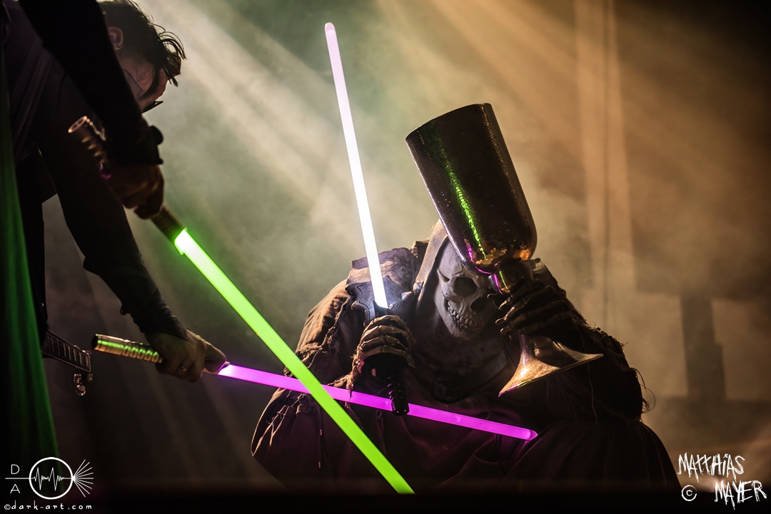 Vom Kriegerepos zu einer echten Superheldengeschichte! Die Heros von Grailknights traten wieder einmal im Kampf um den Gral gegen Dr. Skull von Castle Grailskull an. Wir, der Battlechoir, mussten ihnen dabei lauthals und mit gestählten Muskeln beistehen. Mit einem Lichtschwert und dem begehrten Gral erschien der Antagonist und wurde dafür ausgiebig ausgebuht. Kurz darauf betraten die Helden von den Grailknights die Bühne. Nach dem zweiten Lied wurden die einzelnen Kämpfer der Gerechtigkeit mit bombastischen Soundeffekten vorgestellt und der Battlechoir sollte ihren Respekt in Form angespannter Oberarme zollen. Später stieg der Sänger Sir Optimus Prime bei dem Lied Mourning Dew zu uns einfachen Menschen herab und gab uns die Kraft für ein ausgiebiges Gemoshe! Dann erschien plötzlich und ohne Vorwarnung unser Bösewicht Dr. Skull wieder auf der Bühne. Eine Stimme aus dem Off pries Lichtschwerter von Grailknights als effektives und kostengünstiges Instrument eines Superhelden an und dass wir diese am Merch erwerben könnten. Leider machte unser Antagonist und Werbematerialträger keinen guten Job und verkackte offiziell diesen Werbespot. Später, nachdem die mächtigen Laser Raptor 3D gesichtet wurden, erhielten die Zuschauer einen Einblick in den Ursprung der übermenschlichen Superheldenkraft der Grailknights, und zwar das Trainingsprogramm „Grailrobic“ mit Sovereign Storm und Count Cranium. Die gesamte Halle ging in Superheldenpose wiederholt in die Hocke und spannte die Oberarme an, um später fit für den großen Kampf gegen Dr. Skull zu sein. Nach dem legendären Superheromedley wurden wir Zeugen des großen Kampfes Gut gegen Böse. In Slow Motion besiegten die Grailknights ihren Widersacher und erlangten den Gral zurück. Dann wurde auch kurz vor dem Ende noch We Are The Champions von Queen gespielt, bevor es zum fulminanten Finale überging. Dabei versuchte Sir Optimus Prime über die Crowd zu surfen, aber stürzte beim ersten Versuch ab. Souverän versuchte er es erneut und kam einige Meter weit, bevor sein Team ihn wieder brauchte. So endet diese Heldengeschichte, Battlechoir! Yes Sire!