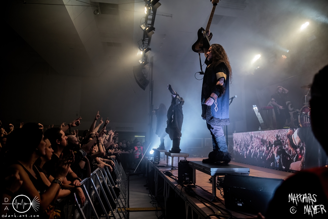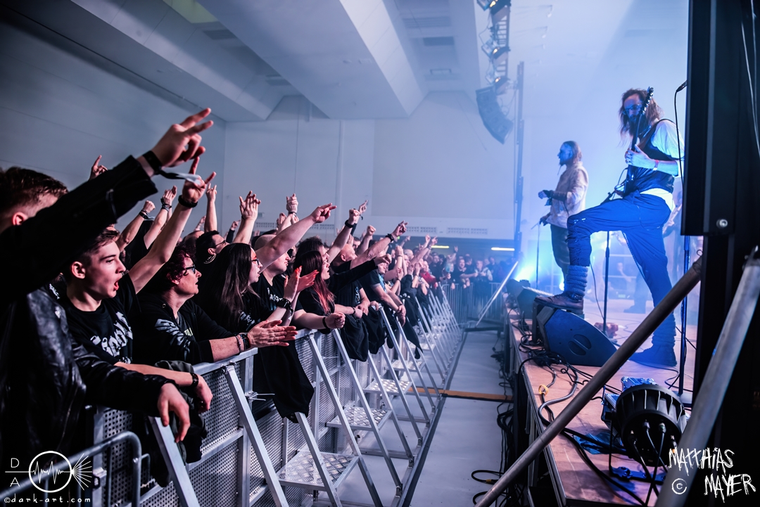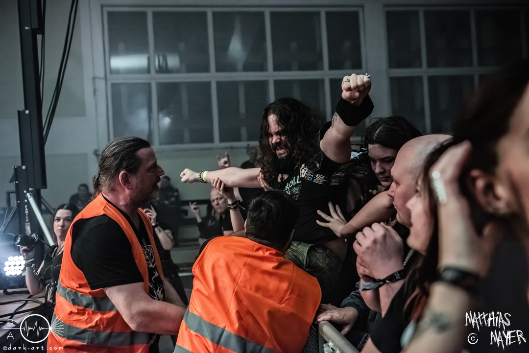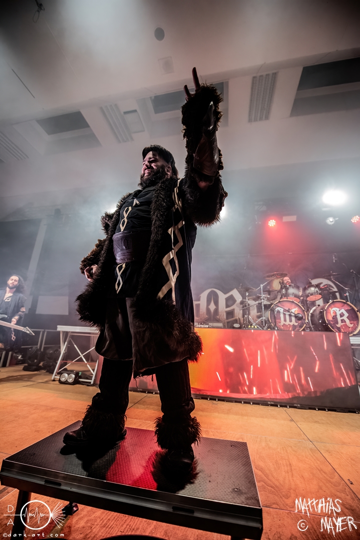 Der Headliner dieses Abends war die italienische Power Metal Band Wind Rose. Sie bespielen ein besonderes Thema, und zwar die Fantasy-Geschöpfe Zwerge. Die Musiker verkleideten sich wie ebendiese und ihre Lieder drehten sich um das unterirdische Volk aus verschiedenen Bücher und Videospielen. Mit ihrem Dwarf Metal ließen sie die Halle beben. Vorab, mit 90 Minuten war dies der längste Auftritt des gesamten Tages und es gab eine Besonderheit im Bühnenbild: Die Band ließ eine Videoleinwand an der Vorderseite des Podestes installieren, über die wir ständig kleinere Clips mit epischen Bildern und Lyrics sehen konnten. Auch wurde endlich ihr eigenes Drumset befreit. Alle vorigen Bands mussten ihr Drumset auf der linken Seite der Tribüne aufbauen, weil Wind Rose ihr Set bereits vorab auf der rechten Seite installiert hatten, verdeckt von einer schwarzen Decke. Die linke Seite, welche dadurch frei wurde, bot Platz für das Keyboard der Band. Als der Auftritt anfing, versammelten sich die Zwergenkrieger und es fing eine epische Reise an. Gleich zu Beginn bildete sich ein epischer Kampf unter den Zuschauern in dem bis dato größten Moshpit des gesamten Festivals. Zu keiner Zeit ruhten die Zuschauer und so wurde gesprungen, geheadbangt, geschubst und die Spitzhacke geschwungen. Beim dritten Lied Fellows of the Hammer ist auch ein einzelner Crowdsurfer über die Zuschauer getragen worden. Der Höhepunkt der Eskalation war mit Abstand das Lied Diggy Diggy Hole! Sämtliche Körper schüttelten sich und alle Köpfe wippten wild auf und ab. Das Lied ging in den bekannten Dance Remix über, bei welchem alle Zwerge auf der Bühne ohne ihre Instrumente ausschweifend tanzten. Danach gingen die Krieger von der Bühne, nur um für zwei Lieder als Zugabe zu erscheinen. Diese Zugabe war emotional sehr geladen. Bei dem ersten Lied Tomorrow Has Come griffen die Zwerge zur Akustikgitarre und das Tempo wurde musikalisch gedrosselt. Nach der bisherigen Party war dies eine willkommene Pause zum Luftholen und ebnete den Weg für I Am the Mountain. Dieses Lied ist dem Kampf gegen Depressionen und mentale Krankheiten gewidmet und hat für Sänger Francesco Cavalieri daher eine besondere emotionale Bedeutung, wie er betonte. Danach endete ein großartiger Auftritt und ein ebenso großartiges Festival.