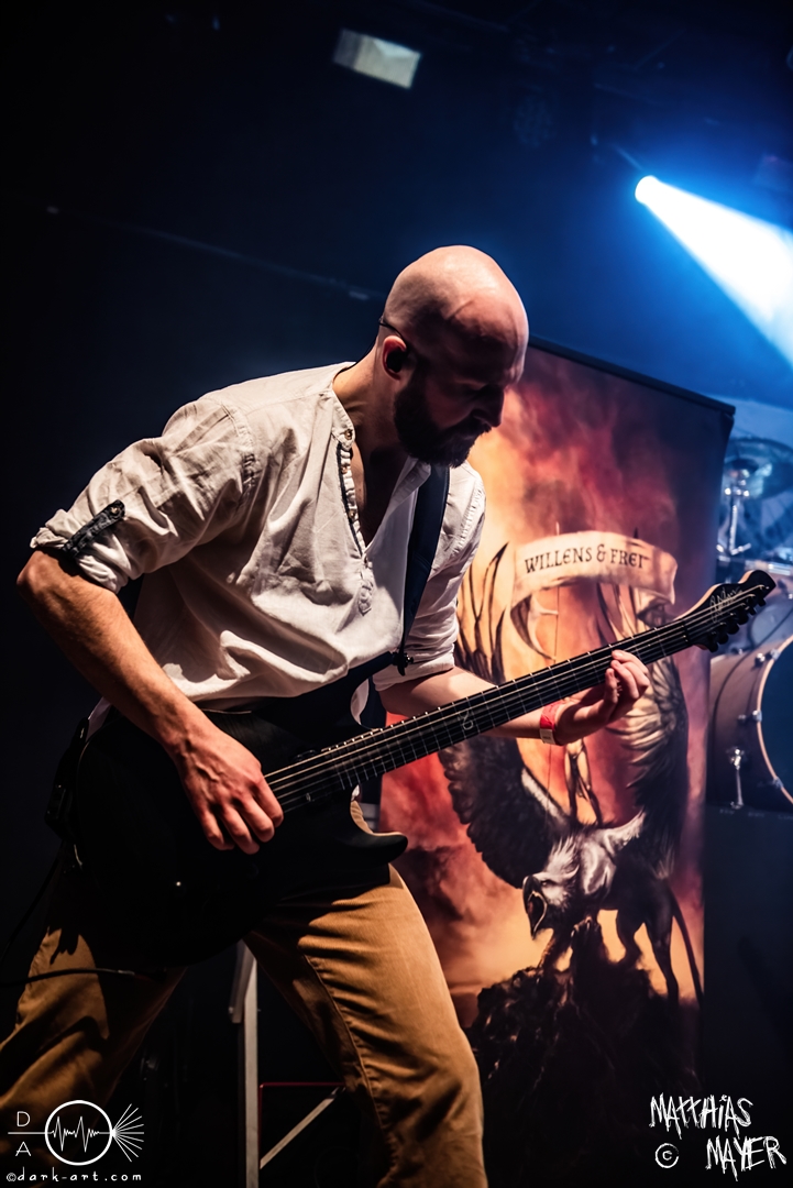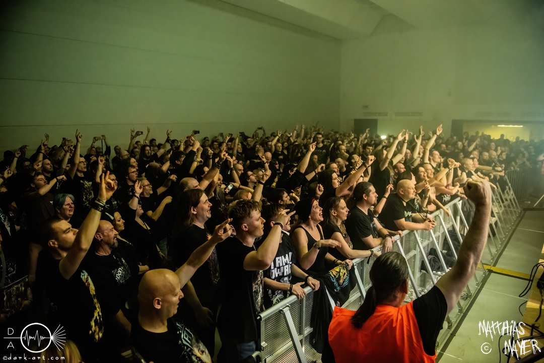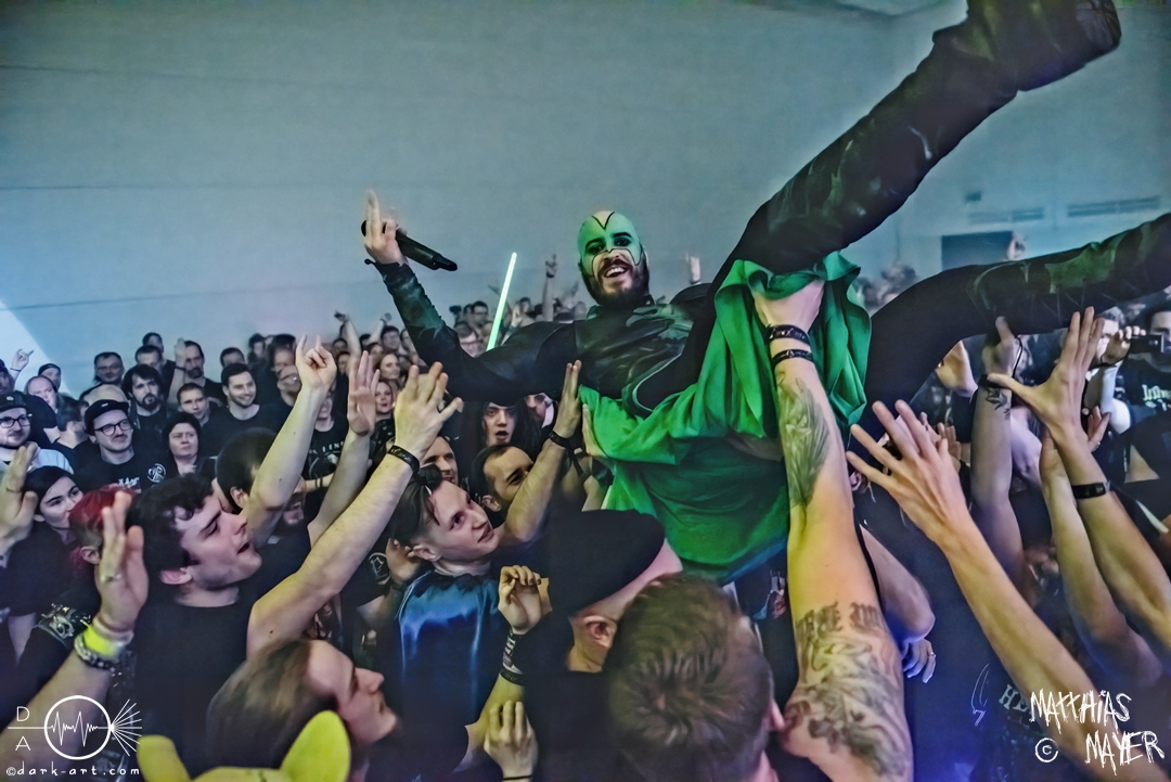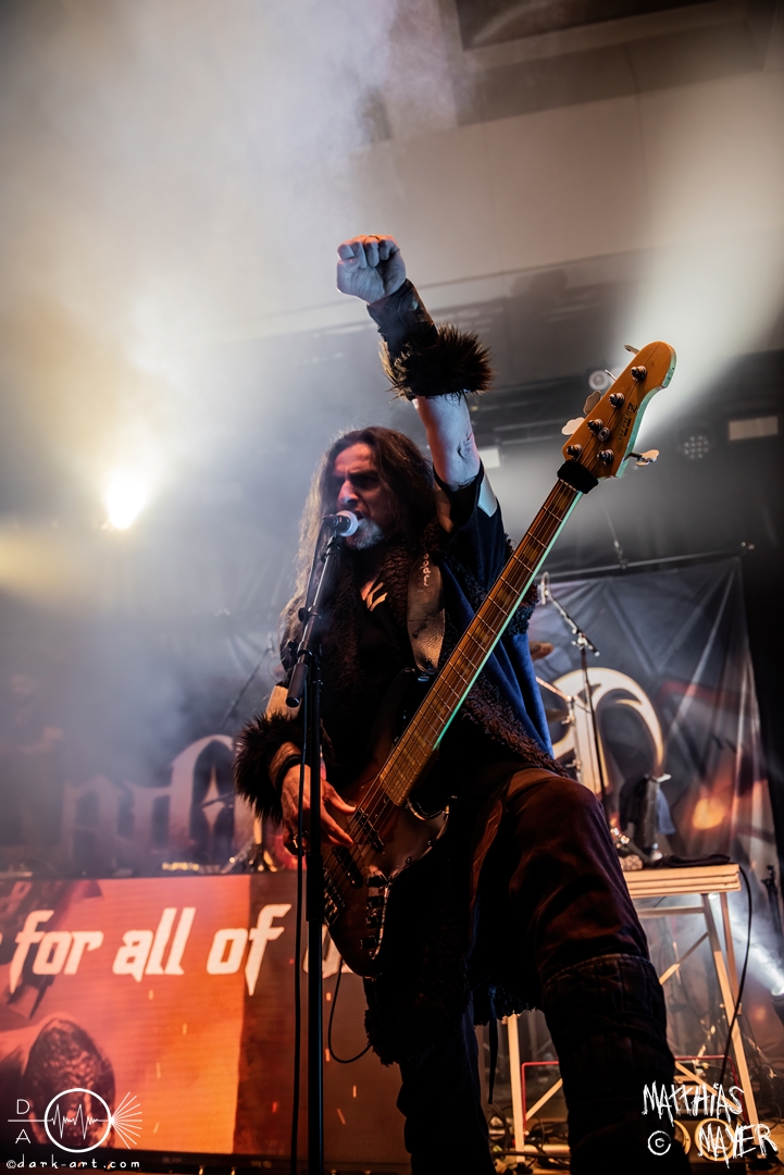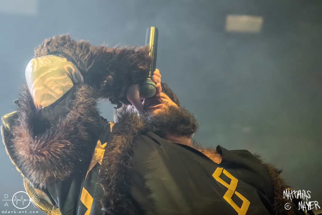Der Headliner dieses Abends war die italienische Power Metal Band Wind Rose. Sie bespielen ein besonderes Thema, und zwar die Fantasy-Geschöpfe Zwerge. Die Musiker verkleideten sich wie ebendiese und ihre Lieder drehten sich um das unterirdische Volk aus verschiedenen Bücher und Videospielen. Mit ihrem Dwarf Metal ließen sie die Halle beben. Vorab, mit 90 Minuten war dies der längste Auftritt des gesamten Tages und es gab eine Besonderheit im Bühnenbild: Die Band ließ eine Videoleinwand an der Vorderseite des Podestes installieren, über die wir ständig kleinere Clips mit epischen Bildern und Lyrics sehen konnten. Auch wurde endlich ihr eigenes Drumset befreit. Alle vorigen Bands mussten ihr Drumset auf der linken Seite der Tribüne aufbauen, weil Wind Rose ihr Set bereits vorab auf der rechten Seite installiert hatten, verdeckt von einer schwarzen Decke. Die linke Seite, welche dadurch frei wurde, bot Platz für das Keyboard der Band. Als der Auftritt anfing, versammelten sich die Zwergenkrieger und es fing eine epische Reise an. Gleich zu Beginn bildete sich ein epischer Kampf unter den Zuschauern in dem bis dato größten Moshpit des gesamten Festivals. Zu keiner Zeit ruhten die Zuschauer und so wurde gesprungen, geheadbangt, geschubst und die Spitzhacke geschwungen. Beim dritten Lied Fellows of the Hammer ist auch ein einzelner Crowdsurfer über die Zuschauer getragen worden. Der Höhepunkt der Eskalation war mit Abstand das Lied Diggy Diggy Hole! Sämtliche Körper schüttelten sich und alle Köpfe wippten wild auf und ab. Das Lied ging in den bekannten Dance Remix über, bei welchem alle Zwerge auf der Bühne ohne ihre Instrumente ausschweifend tanzten. Danach gingen die Krieger von der Bühne, nur um für zwei Lieder als Zugabe zu erscheinen. Diese Zugabe war emotional sehr geladen. Bei dem ersten Lied Tomorrow Has Come griffen die Zwerge zur Akustikgitarre und das Tempo wurde musikalisch gedrosselt. Nach der bisherigen Party war dies eine willkommene Pause zum Luftholen und ebnete den Weg für I Am the Mountain. Dieses Lied ist dem Kampf gegen Depressionen und mentale Krankheiten gewidmet und hat für Sänger Francesco Cavalieri daher eine besondere emotionale Bedeutung, wie er betonte. Danach endete ein großartiger Auftritt und ein ebenso großartiges Festival.