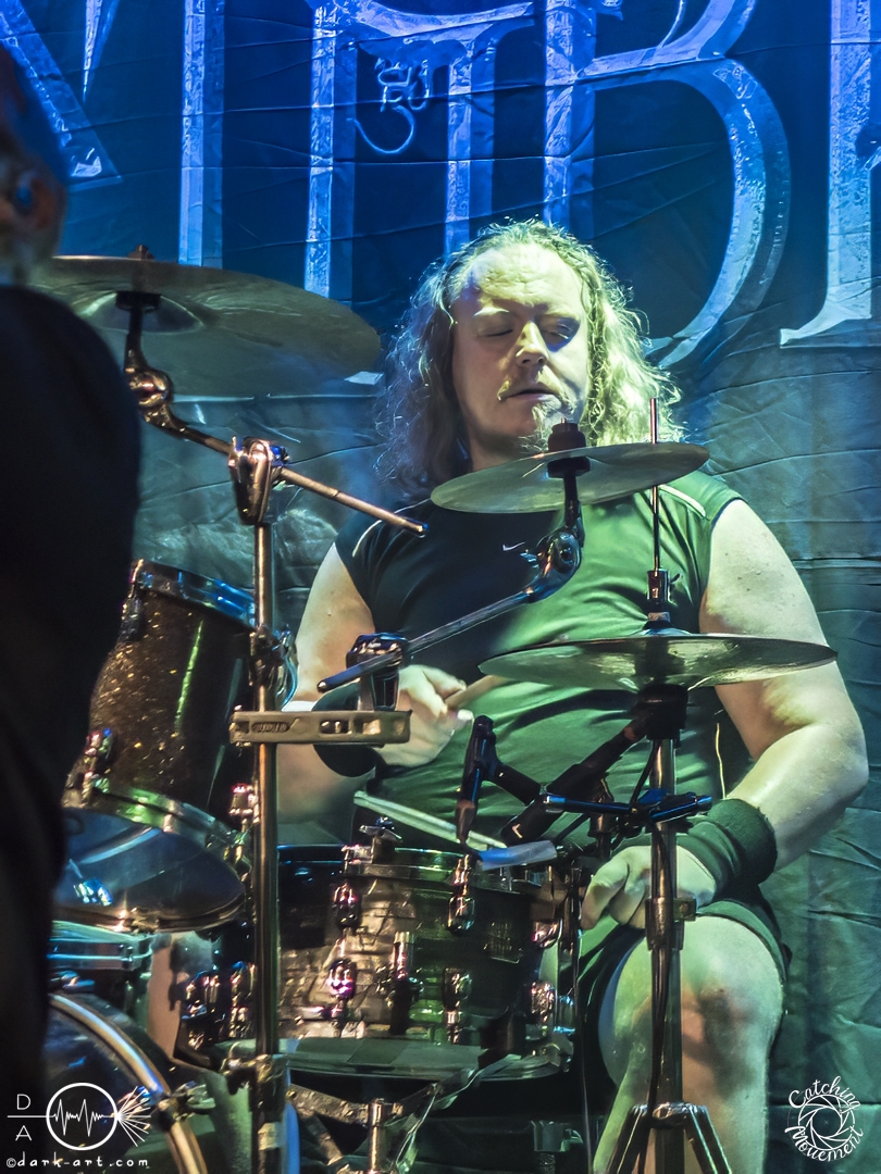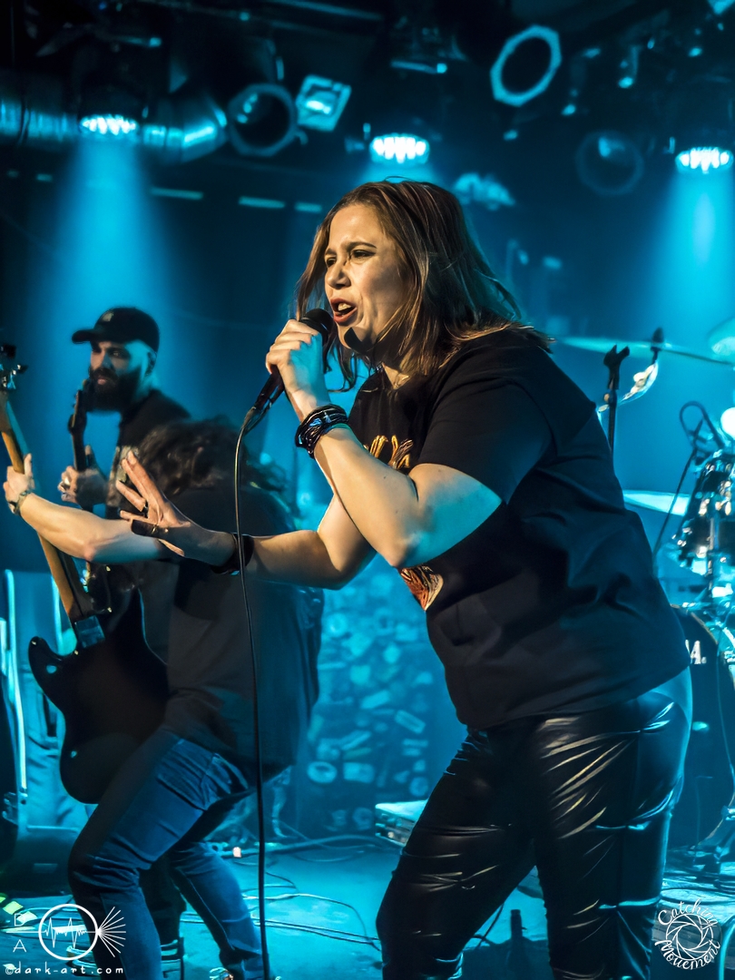 Dann kam Rexoria aus Schweden und es wurde gleich bunter auf der Bühne passend dazu gab es dann Melodic Power Metal. Schnell, catchy, melodiös, sie erfüllten alles was man sich so erwartet. Headbanging vom Feinsten, auf und vor der Bühne. Dazu eine absolut gewaltige und umwerfende Stimme von Sängerin Frida. Wie schon bei Blame Zeus merkte man den Musikern an, dass sie einfach super harmonierten und Spaß miteinander hatten. Im Gegensatz aber zu den anderen war Rexoria schon öfter auf Tour durch Europa und nun zum dritten Mal in Weinheim. Als dritte Band durften sie auch etwas länger spielen und ich muss zugeben, dass sich jede Minute länger gelohnt hat. In mir hat die Band auf jeden Fall einen Fan mehr gewonnen nach dem Auftritt.