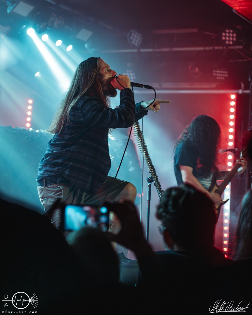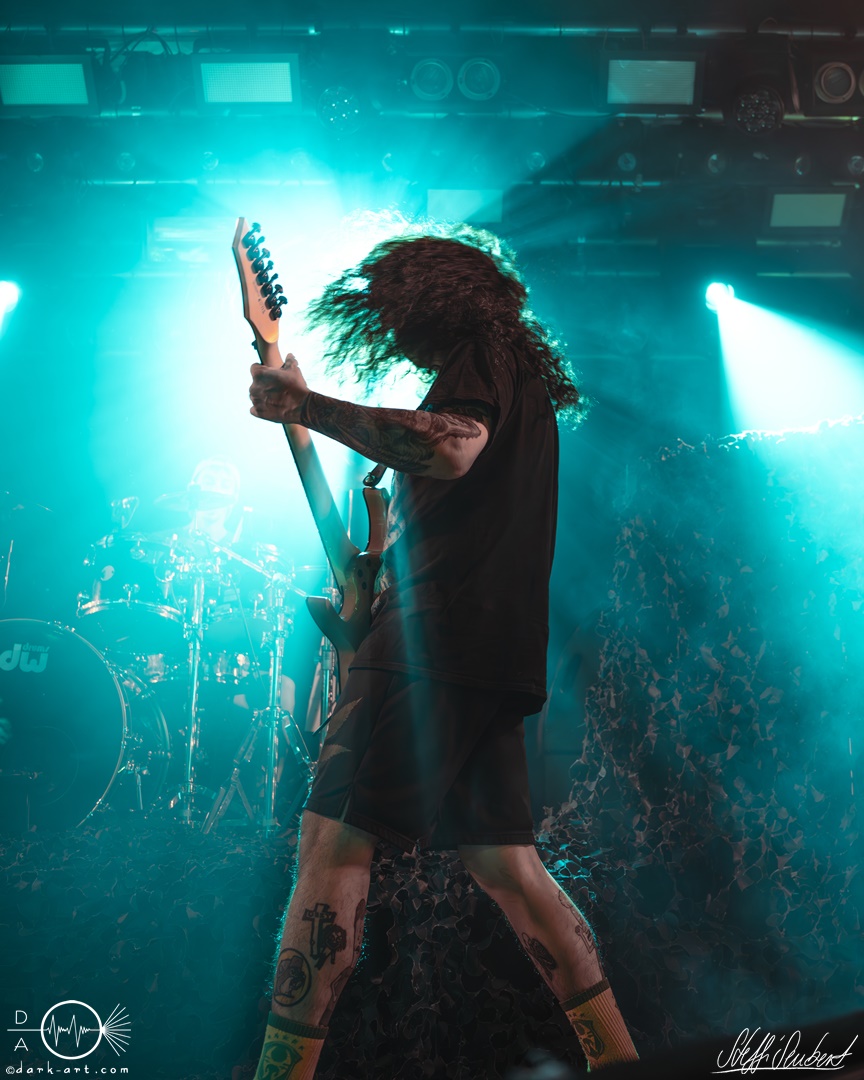Die Frankfurter durften als Support von Soulfly durch Deutschland touren und haben das mit ihrer Mischung aus Grunge, Punk und Alternative ziemlich gut hinbekommen. Sänger Nico hat eine fantastische stimmliche Range und kann mich mit seinem Gesang neben Screams auch in die Zeit des Grunge zurück katapultieren. Neben dem Gesang bedient er auch mehrere Gitarren. Nicht nur er, auch sein Bandkollege Alex wechselt die Gitarren zwei- bis dreimal pro Gig. Es ist wirklich jedes Mal faszinierend, wie sich der Sound mit jeder neu gestimmten Gitarre verändert und es tut der Band wirklich gut. Neben diesem Element wurde unter anderem die neue Single Pin Drop auch mit Backing Vocals von Bassist Nico unterstützt.