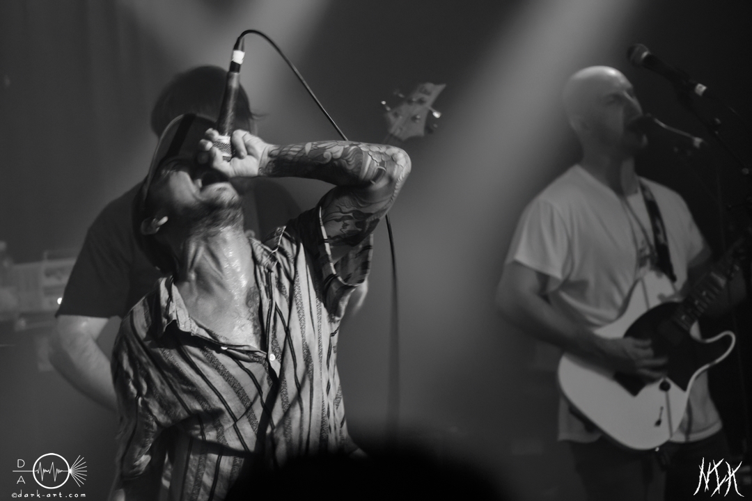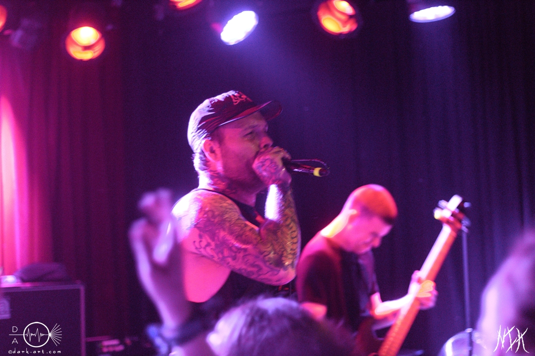 Unmittelbar vor dem Summer Breeze und der nächsten US Tour noch eben einen kleinen verschwitzten Club abreißen? Kein Problem für die vier Kalifornier! Stick to Your Guns betraten die Bühne und das Chaos war vorprogrammiert. Mit Nobody ging es los und der Pit kannte kein Halten mehr. Im Grunde vom Start weg tobten sich die Stagediver nach Lust und Laune aus und für alle Zuschauer wurde zu einem wahren Fest. Danach ging es in einem gesunden Querschnitt durch die gesamte Diskographie, mit Married to the Noise oder Weapon wurden die jüngsten Alben zelebriert und mit Amber oder Such Pain die Älteren gewürdigt. Jesse und Co. hatten dann sogar eine kleine Überraschung parat: nach dem sie uns Hush, aus dem letzten Album Spectre, um die Ohren kloppten, wurde die Frau von Gitarrist Josh auf die Bühne geholt. Die beiden spielen zusammen bei Sorry Fern und so bekamen wir nun mit Rabbit und Sabotage zwei ihrer Songs kredenzt. Danach übernahm Jesse wieder das Mikro und es gab noch viermal Stick to Your Guns auf die Mütze. Zum krönenden Against them All durfte die Crowd auch ein weiteres Mal die Gesangskünste unter Beweis stellen und das Sing-Along funktionierte bestens.