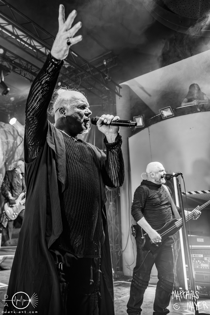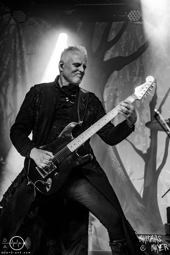Neben etlichen Gesangsduetten mit Leadsänger Georg begeisterte Bassist Fabio D’Amore immer wieder durch seine ergreifenden Solo-Gesangseinlagen wie zum Beispiel bei Reflections (of AD). Dieses Lied aus dem letzten Album Nemesis AD, beschäftig sich mit dem Leben von Albrecht Dürer, der in Nürnberg gelebt hat. So war es Georg Neuhauser, der in seinem Leben jenseits der Bühne Dozent für Geschichte ist, besonders wichtig dies hier in Nürnberg zu betonen. Denn wenn nicht hier, wo sonst hat man einen solchen Bezug zu diesem Künstler. Kaum zu bemerken war, dass Gitarrist Christian die Show nicht spielen konnte, da es perfekten Ersatz für ihn gab.
