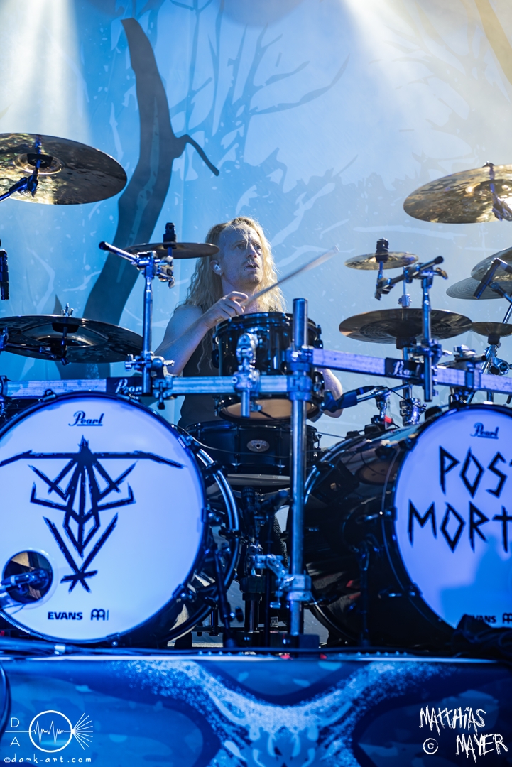 An dieser Stelle folgte ein ganz besonderer Augenblick, denn Chris, einer der Gewinner der Aktion „Wir suchen dich“ hatte seinen großen Auftritt. Mit seiner Ansage, „falls noch jemand Buchsen auf Amazon kaufen möchte, die sind ausverkauft, habe ich alle bestellt“ sorgte er für den ein oder anderen Lacher im Publikum, um dann doch souverän seinen Gesangspart zu übernehmen. Gemeinsam mit Eric stand er auf der Bühne und sang Post Mortem mit, ein Gänsehautmoment für alle.