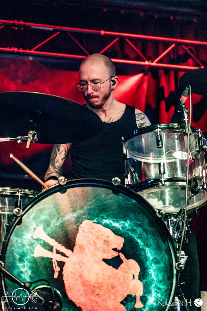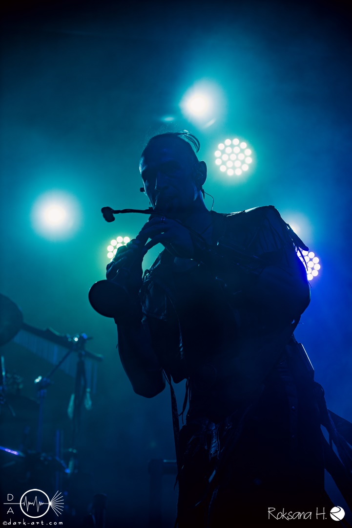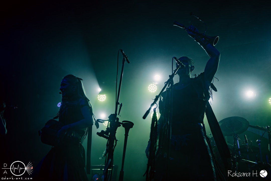 Dann folgte die musikalisch außergewöhnlichste Band des Festivals. Irdorath spielen einen rein akustisch gespielten Folk mit einer Vielzahl musikalischer Einflüsse, die aus einer Vielzahl von Regionen und Zeiten stammen. Mit einer spannenden Vielzahl an Instrumenten, darunter Dudelsäcke, Drehleier, Cello und ein Didgeridoo erzeugten ihre ungewöhnlichen Kompositionen eine mystische und folkige Atmosphäre, der gelegentliche Kehlkopfgesang von Uladzimir verstärkte den exotischen. Eindruck. Das Publikum hieß die Band sichtbar willkommen und war von Beginn an in guter Stimmung. Als zweiten Song gab es auch einen neuen Song zu hören, Vaukalak erschien erst wenige Tag vorher. Der Großteil der Texte ist zwar in Landessprache gehalten, aber mit Drachen gab es auch einen deutschen Song, bei dem sich das Publikum auch direkt gesanglich beteiligen sollte. Nadzeya erzählte auch von ihrer Gefangenschaft in Belarus, und dass sie nun in Deutschland eine neue Heimat gefunden haben, mit Zurami gab es auch einen Song, der in der Zeit im Gefängnis entstanden war, und spielte diesen für alle politischen Gefangenen in Belarus. Passend dazu wurde im Publikum eine weiß-rot-weiße Flagge hochgehalten. Außerdem kündigte die Band an, im nächsten Jahr auch endlich auf eigene Tour gehen zu können.