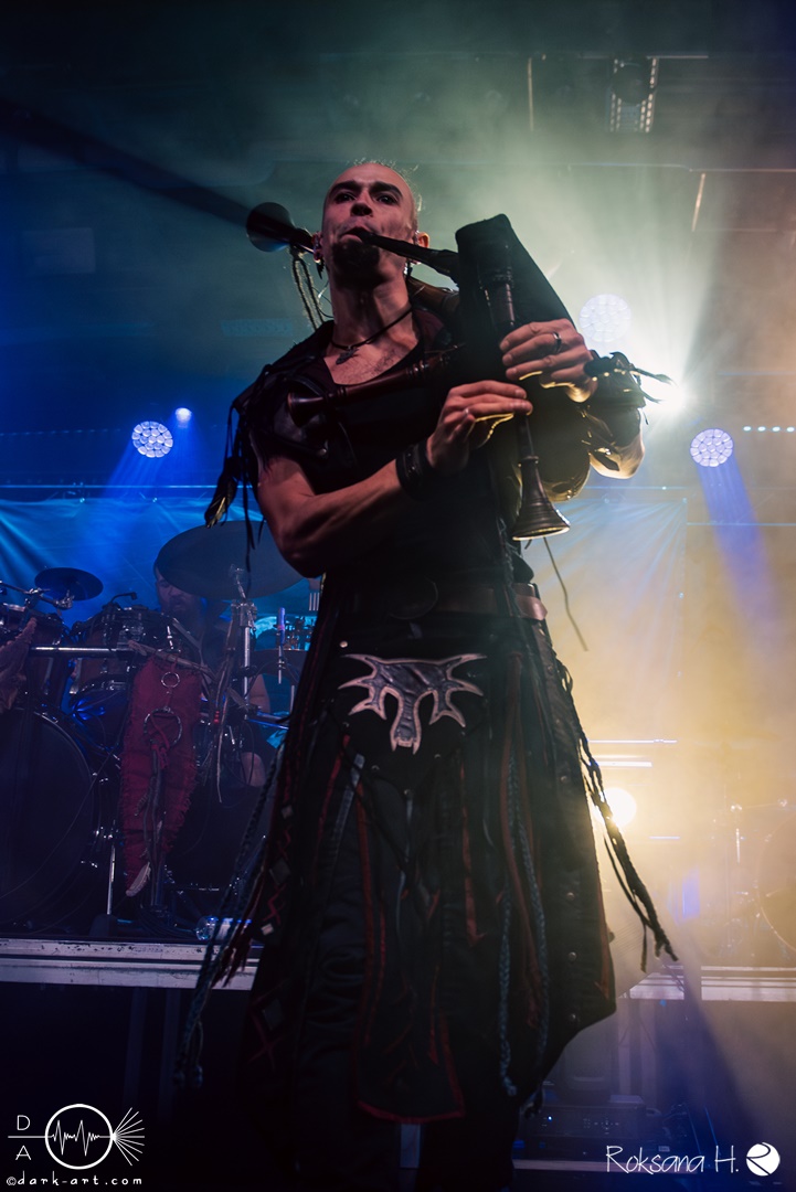 Weiter geht es dann mit Folkstone aus Italien. Mit ihrem inzwischen siebten Auftritt auf dem Festival sind sie dem Großteil des Publikums nicht fremd, was man an der Textsicherheit auch direkt merken konnte. Mit drei Dudelsäcken auf der Bühne gaben sie direkt Vollgas, und ließen für die nächste Stunde auch nicht mehr locker. Im Laufe des Sets wechselten sich Harfe, Mandola und Tin Whistle mit den Dudelsäcken ab. Sänger Lore hatte das Publikum von Anfang an im Griff. Zwischenzeitlich steuerte Silvia auch noch ein paar weibliche Gesangszeilen bei. Beim Song Omnia fert aetes gab es auch noch einen Gastauftritt, ein Dudelsackspieler von Corvus Corax unterstütze die Italiener mit seinem Marktsack. Mit 15 Songs und einer Spielzeit von 60 Minuten konnte die Gruppe aus Bergamo auf jeden Fall beim Publikum punkten, und wird München sicher bei einer weiteren Ausgabe des Festivals in Zukunft wieder besuchen.
