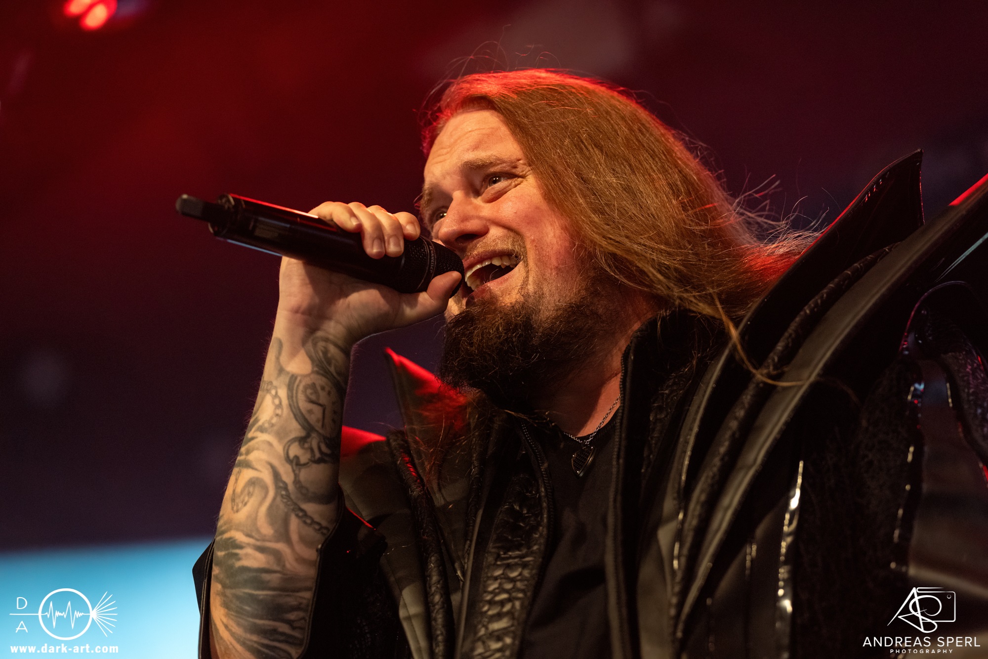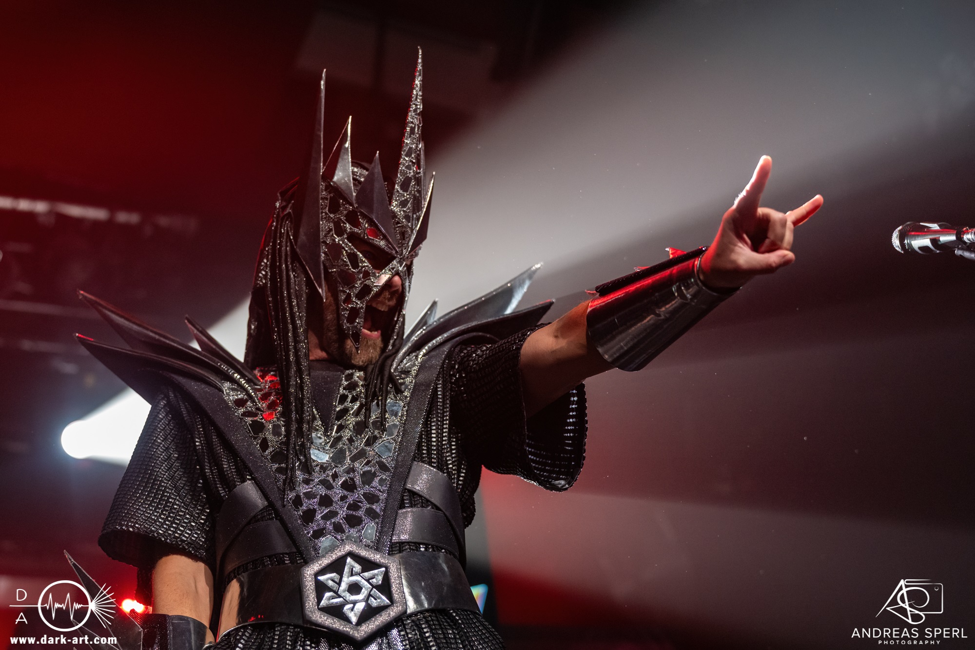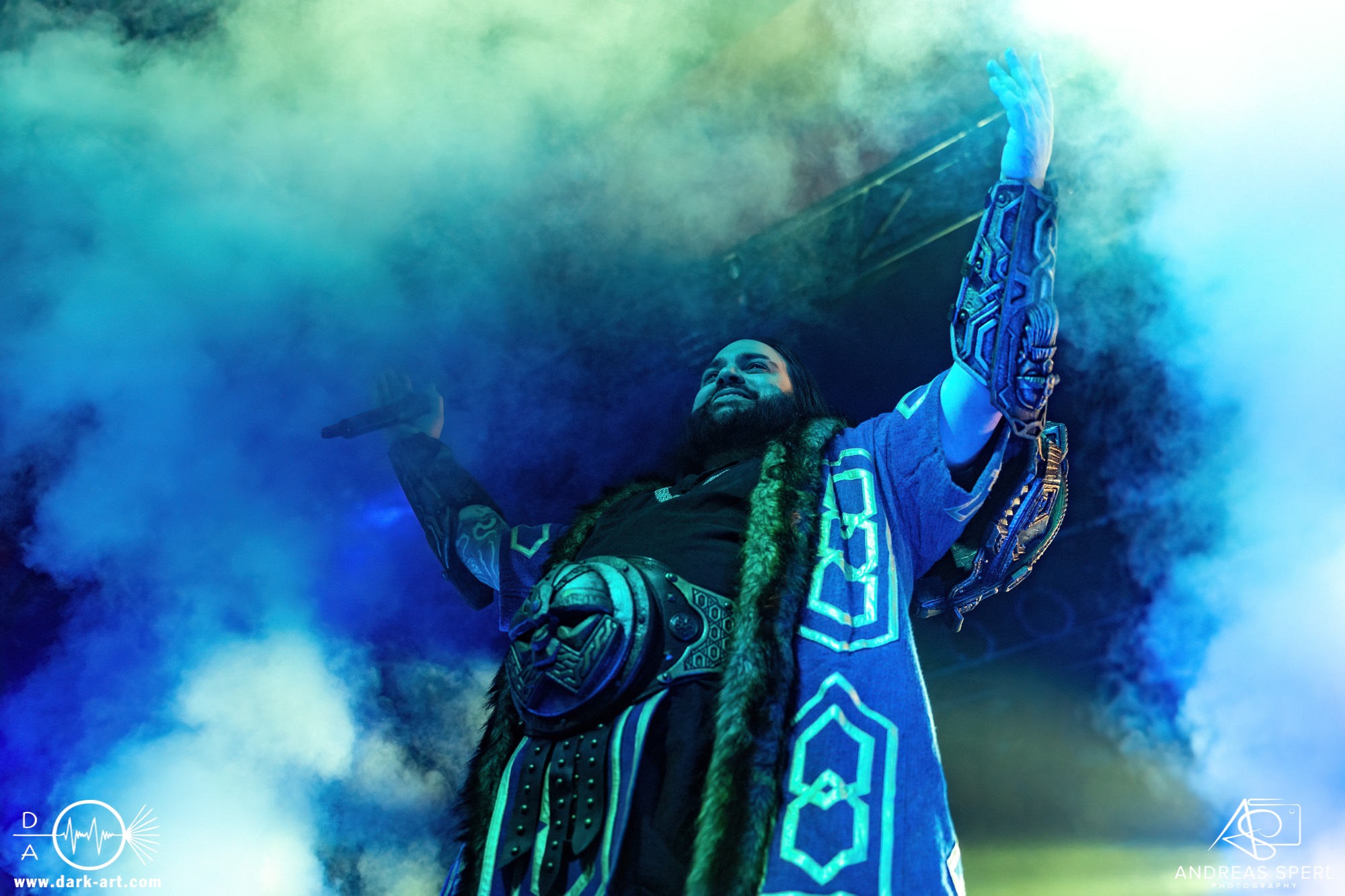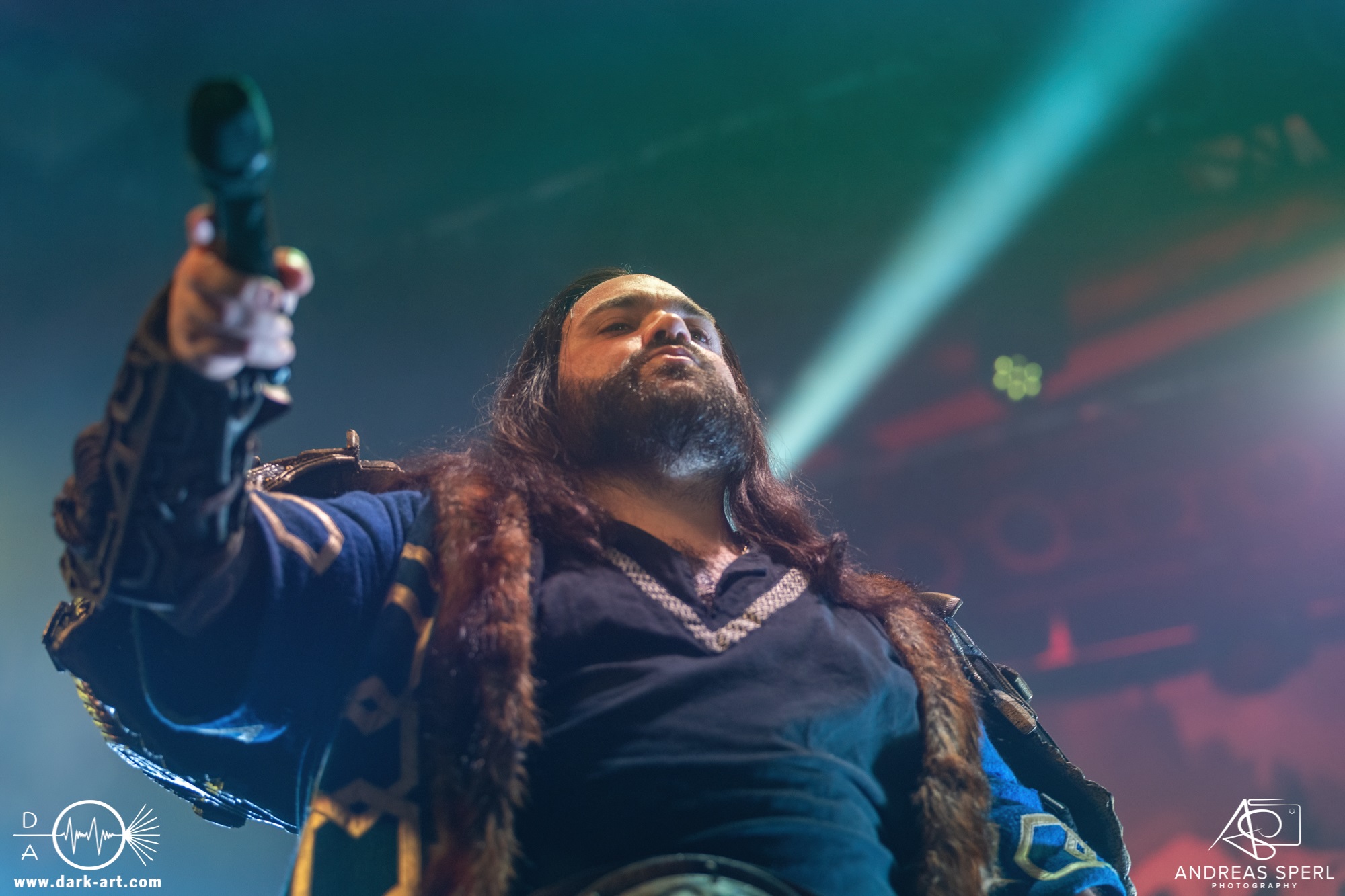 Zeit das Horn neu zu befüllen, denn nun kommen die ebenfalls aus deutschen Landen stammenden Orden Ogan, was immer etwas nach Organspende klingt, uns aber noch im Laufe des Abends aufgeklärt wird, was es mit diesem Titel den auf sich habe und ob der Sänger die Band (auch) scheiße findet.