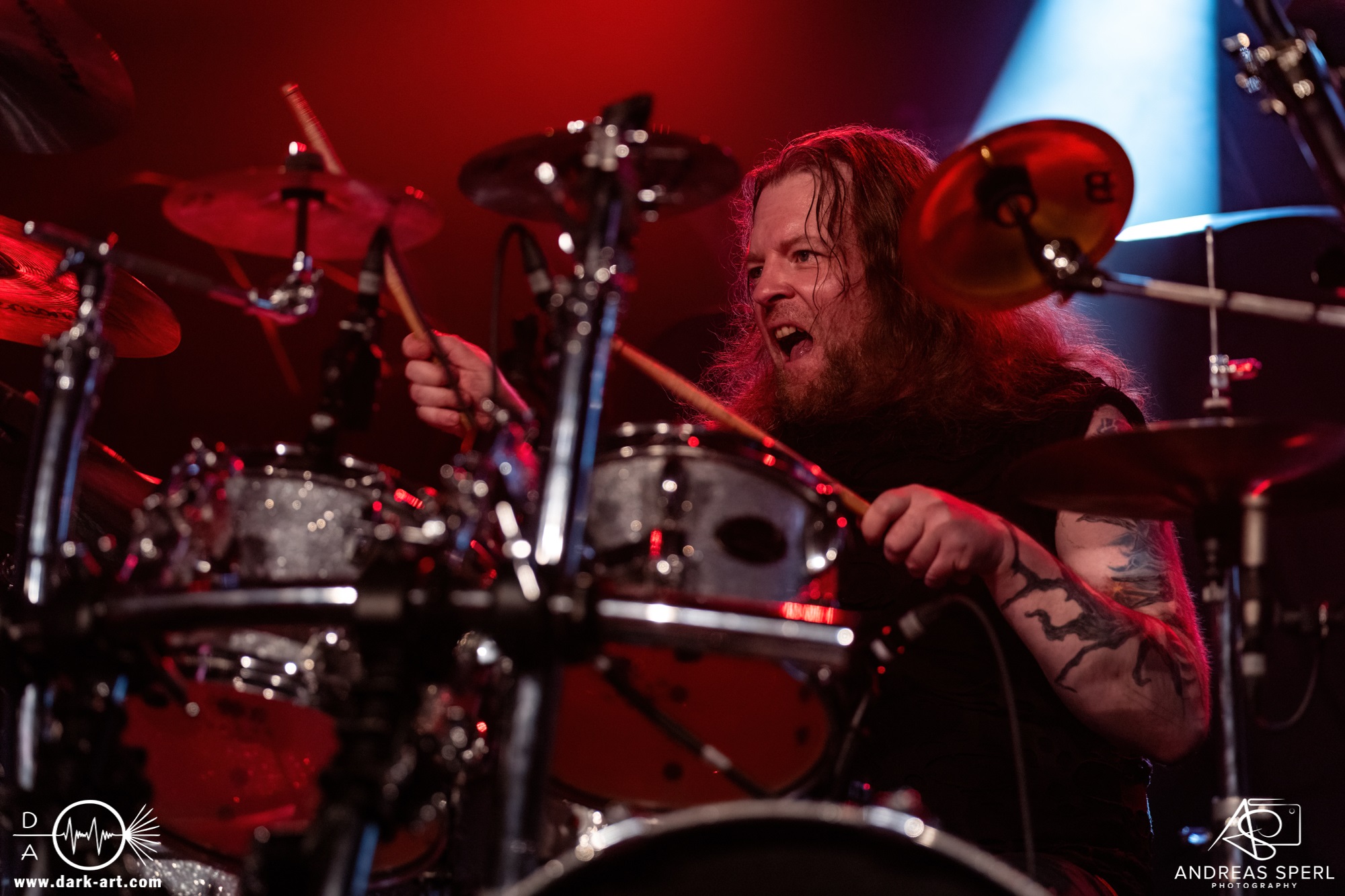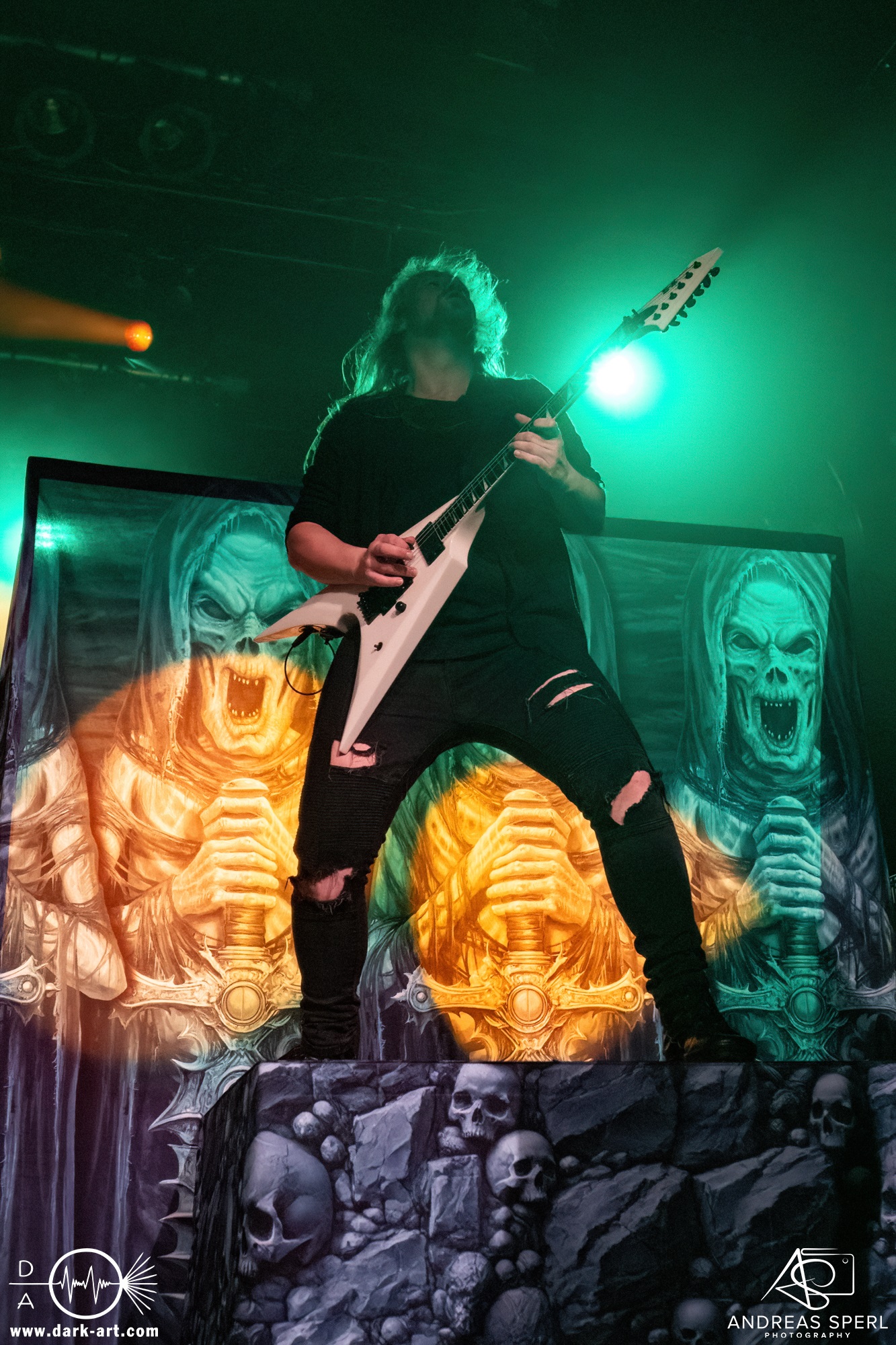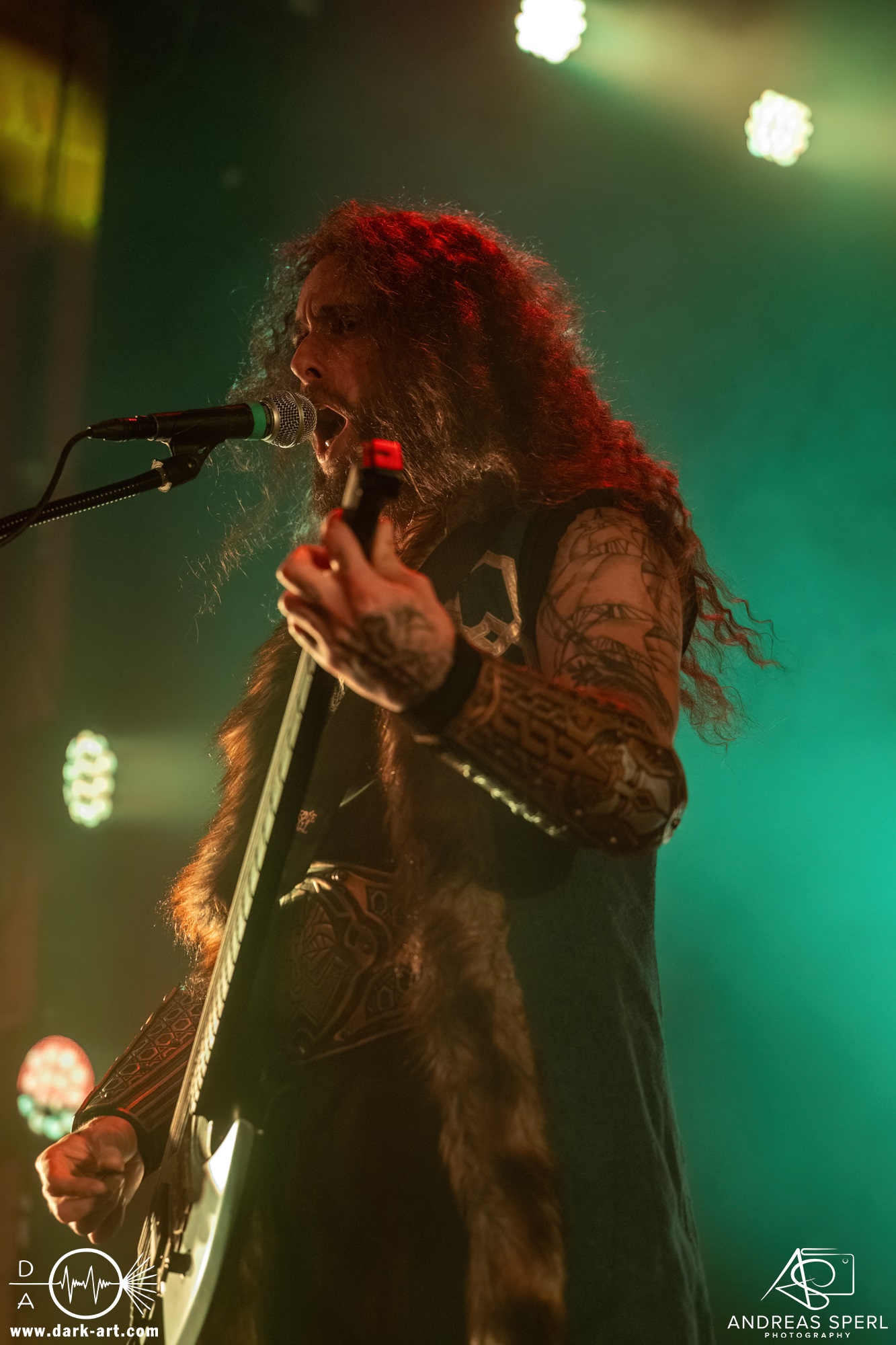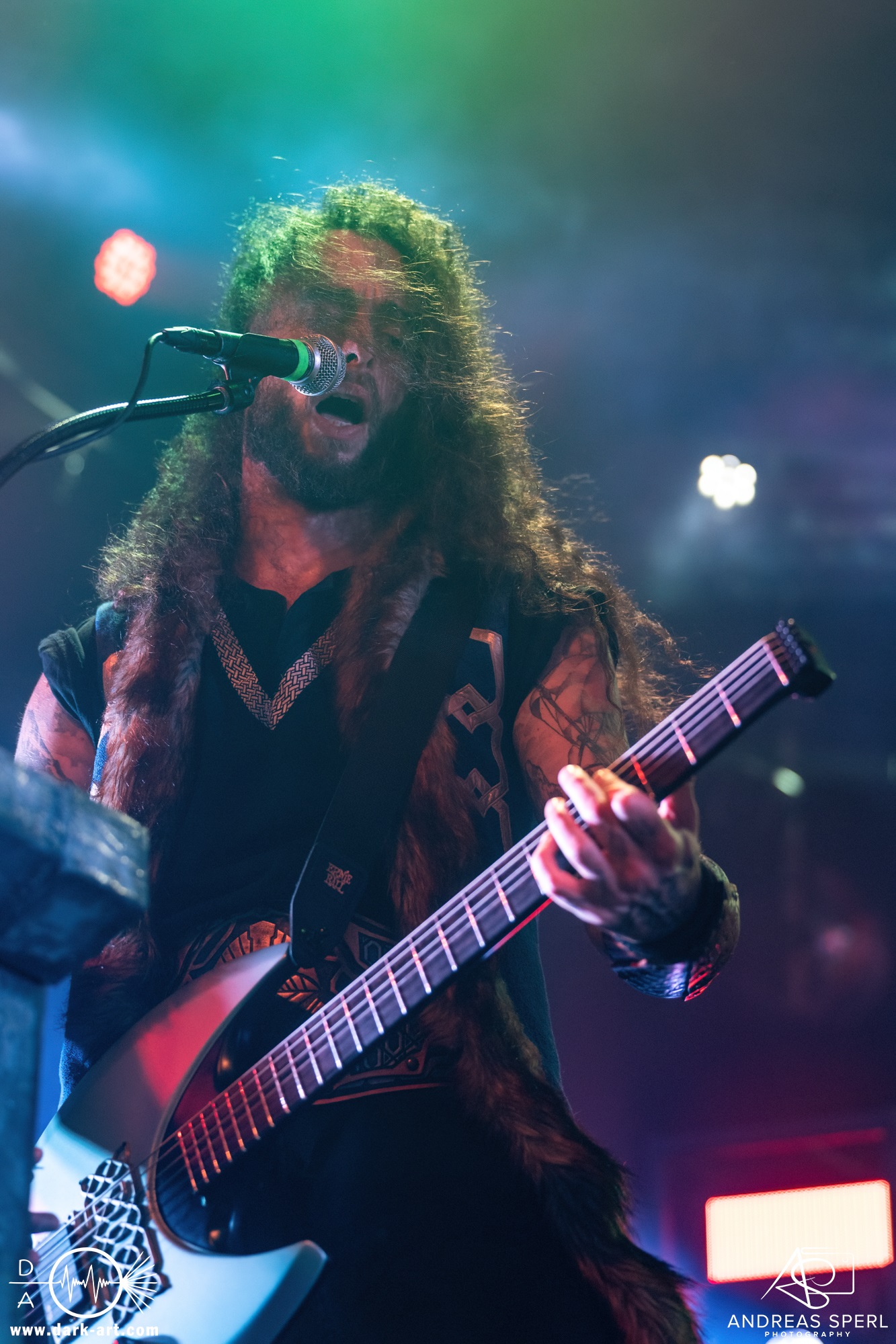Berlin hat heute den Stock aus dem Rectum genommen und das Publikum klatscht vom ersten Song begeistert mit. Die Akteure auf der Bühne nutzten wie ihre Vorgänger sowohl die Podeste als auch die vier Ventilatoren, die ihre Haare Loreal-artig durch die Luft wehen lassen. Ab dem zweiten Song wird oben wie unten fleißig geheadbangt. Auch ich lasse mich davon anstecken und werfe den Nackenrotor an. Der dritte Song Come with me to the other side ist eine kraftvolle Halbballade, die vielen hier wie Öl über die Lippen rinnt. Das ist schöne Konzertatmosphäre. Danach wird der lange erwartete Bildungsauftrag erfüllt und wir darüber aufgeklärt, dass der Bandname dem Keltischen entspringt und so viel bedeutet wie Order of Fear, womit geschickt zum Titeltrack des aktuellen Albums übergeleitet wird und es uns dieser Nackenbrecher nun ordentlich besorgt. Zwischendurch wird noch von der Bühne runterdiskutiert, ob wir lieber „Order of FEAR“ oder lieber „Order of BIER“ singen wollen. Womit wir beim Werbeblock der Veranstaltung angekommen zu sein scheinen. Denn es kommt er obligatorische Aufruf zur Befolgung der Band via Social Media, was ja bekanntermaßen für den Bekanntheitsgrad einer Band heutzutage unabdingbar ist. Es erfolgt sogar ein Aufruf zum Filmen und Teilen der kommenden Klassiker Gunman und Let the fire rain. Sänger Seeb lässt uns wissen, dass wir auch gern im Video sagen dürfen, wenn wir den Song oder die Band scheiße fänden, er tue das ja auch ständig.