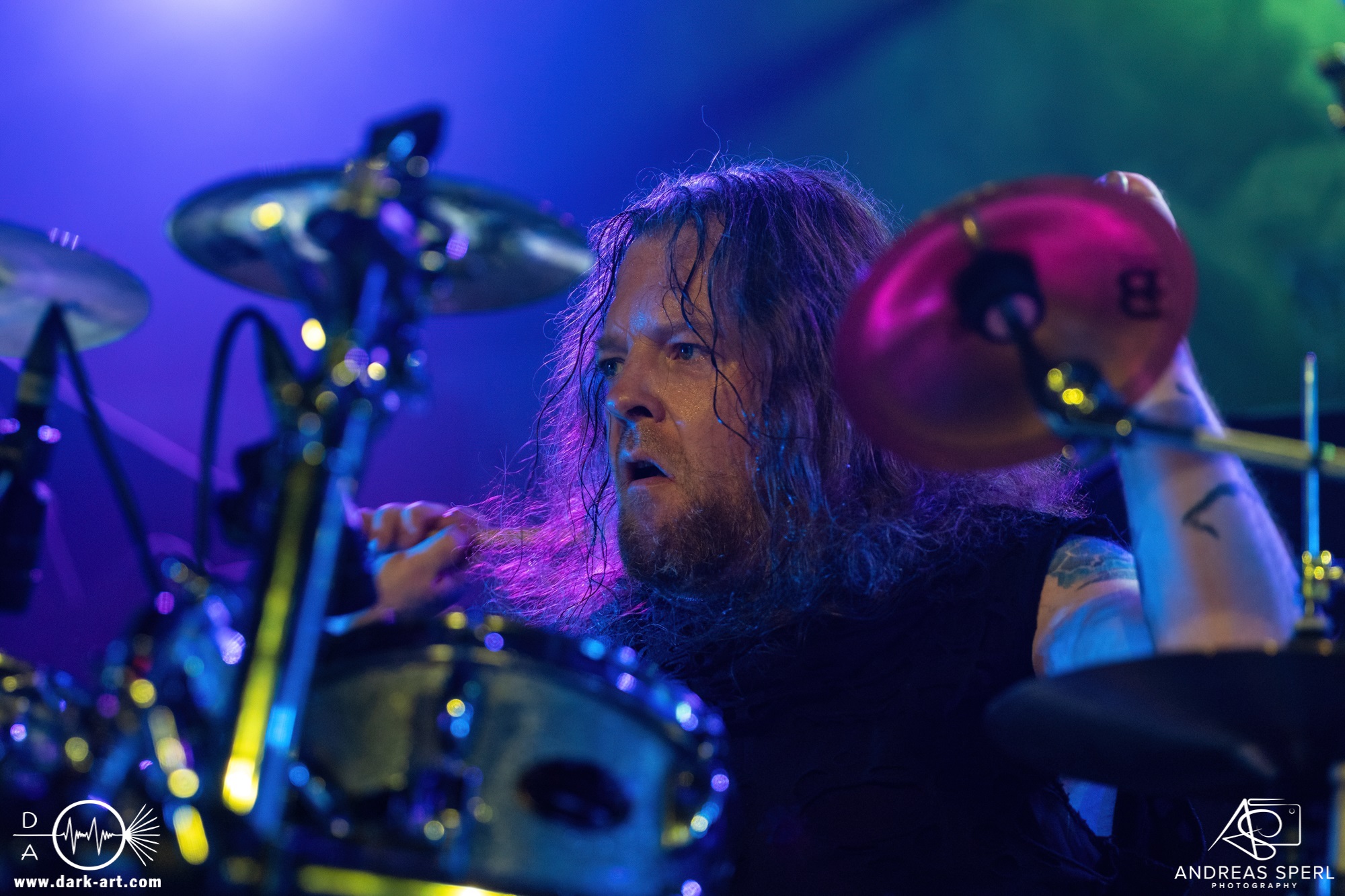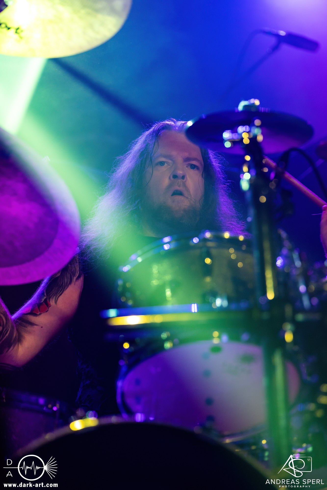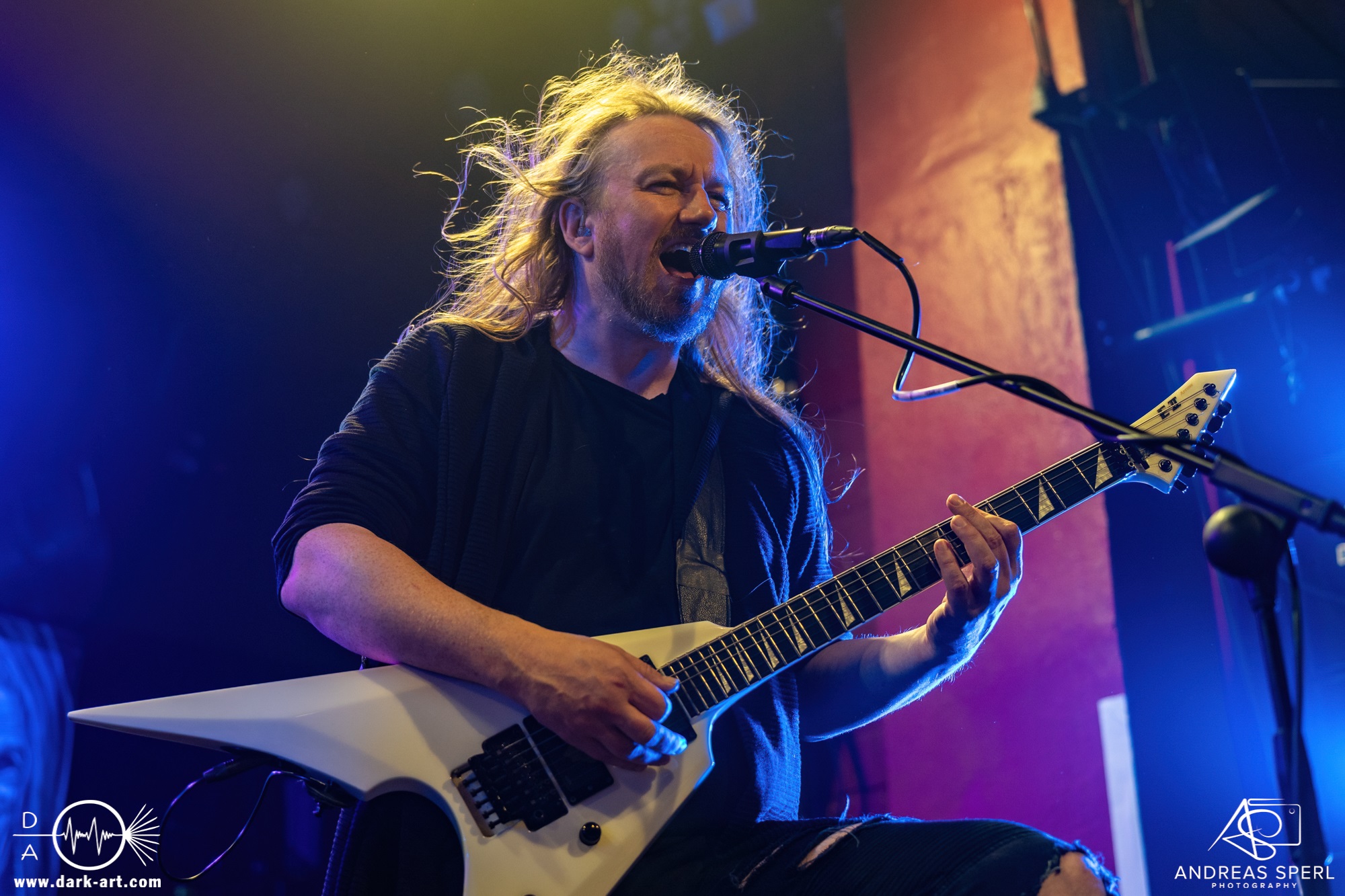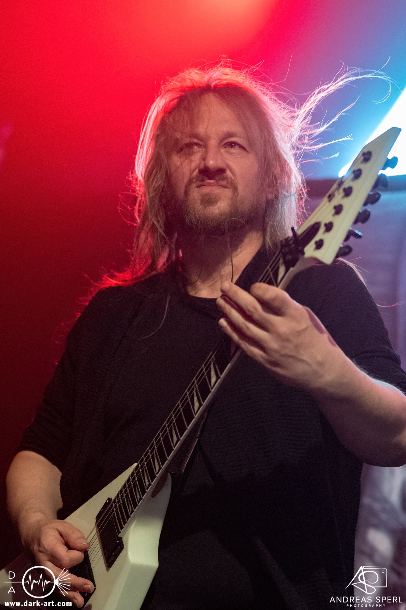 Berlin hat heute den Stock aus dem Rectum genommen und das Publikum klatscht vom ersten Song begeistert mit. Die Akteure auf der Bühne nutzten wie ihre Vorgänger sowohl die Podeste als auch die vier Ventilatoren, die ihre Haare Loreal-artig durch die Luft wehen lassen. Ab dem zweiten Song wird oben wie unten fleißig geheadbangt. Auch ich lasse mich davon anstecken und werfe den Nackenrotor an. Der dritte Song Come with me to the other side ist eine kraftvolle Halbballade, die vielen hier wie Öl über die Lippen rinnt. Das ist schöne Konzertatmosphäre. Danach wird der lange erwartete Bildungsauftrag erfüllt und wir darüber aufgeklärt, dass der Bandname dem Keltischen entspringt und so viel bedeutet wie Order of Fear, womit geschickt zum Titeltrack des aktuellen Albums übergeleitet wird und es uns dieser Nackenbrecher nun ordentlich besorgt. Zwischendurch wird noch von der Bühne runterdiskutiert, ob wir lieber „Order of FEAR“ oder lieber „Order of BIER“ singen wollen. Womit wir beim Werbeblock der Veranstaltung angekommen zu sein scheinen. Denn es kommt er obligatorische Aufruf zur Befolgung der Band via Social Media, was ja bekanntermaßen für den Bekanntheitsgrad einer Band heutzutage unabdingbar ist. Es erfolgt sogar ein Aufruf zum Filmen und Teilen der kommenden Klassiker Gunman und Let the fire rain. Sänger Seeb lässt uns wissen, dass wir auch gern im Video sagen dürfen, wenn wir den Song oder die Band scheiße fänden, er tue das ja auch ständig.