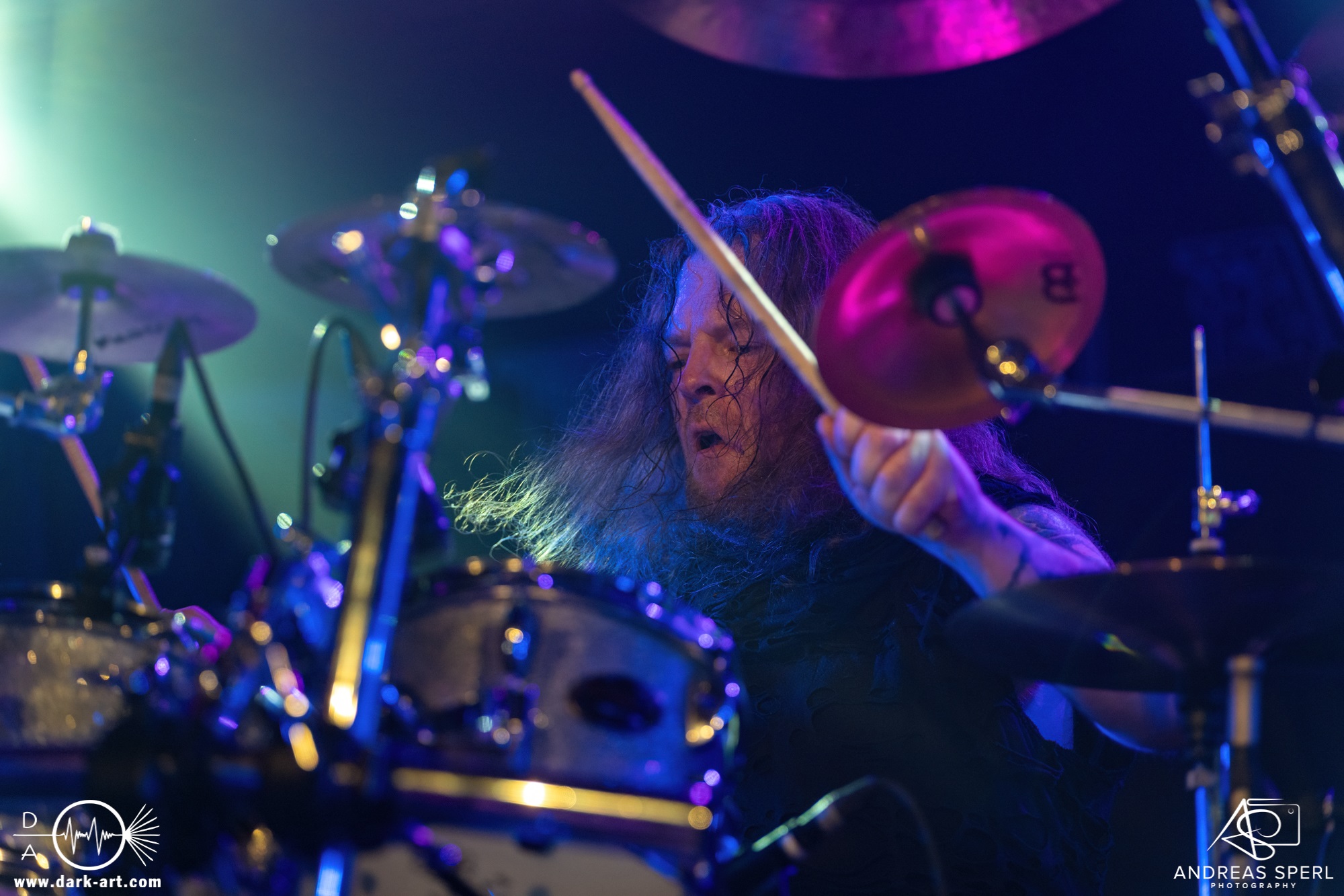 Mit dem anschließenden Song To Erebor eroberten die Zwerge Wind Roses damals die Charts und Herzen der Metal-Welt und wird von Sänger Claudio als „first success of Dwarf Metal“ bezeichnet und dieser uns sogleich mit seiner fabelhaften opernhaften Tenorstimme entgegen geträllert, und mit dem King under the Mountain gleich lückenlos nachgeschoben und der nächste „Hey“-Chor abgeholt. Danach gibt es ein unerwartetes Ozzy Osbourne Tribute. Dem sympathischen Prince of Darkness, dessen Tod am 22.07.2025 die Welt erschütterte und in Trauer zurückließ, wird mit meinem Lieblingstrack seiner Solokarriere A Shot in the Dark vom unsterblichen The ultimate Sin Album ein Denkmal gesetzt und Sänger Claudio versucht sich an der unverwechselbaren Stimmlage Ozzys und Bühnenperformance mit extra dazu aufgesetzter roter Sonnenbrille mit kreisrunden Gläsern, die ja Zeitlebens ein optisches Markenzeichen war. Schöne Geste und nicht wenige, die noch genug Wasser in sich haben, verdrücken sich ein Tränchen. Miss you, Ozz!