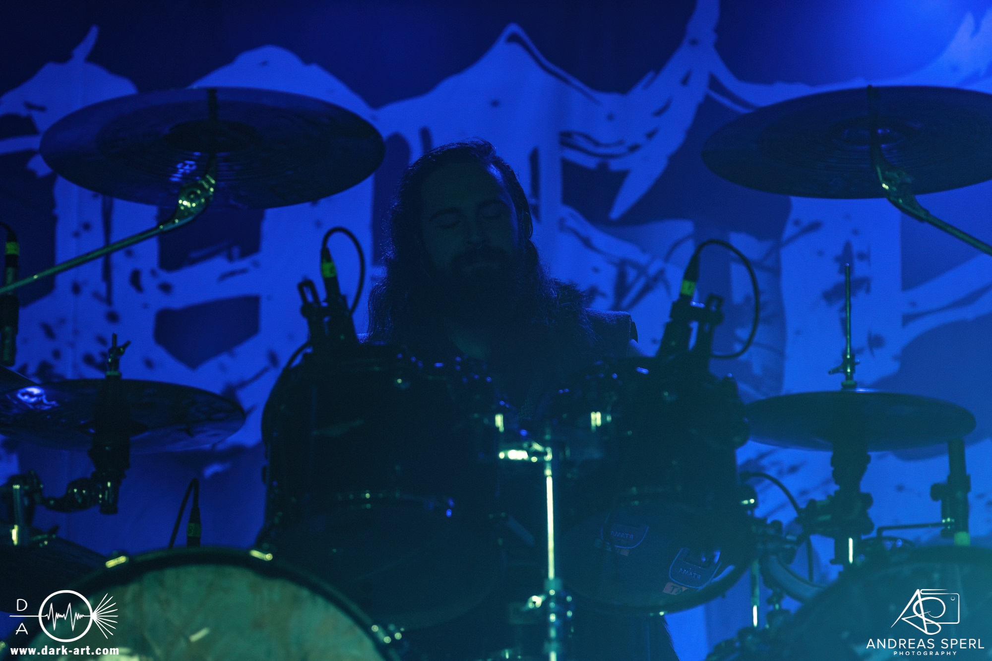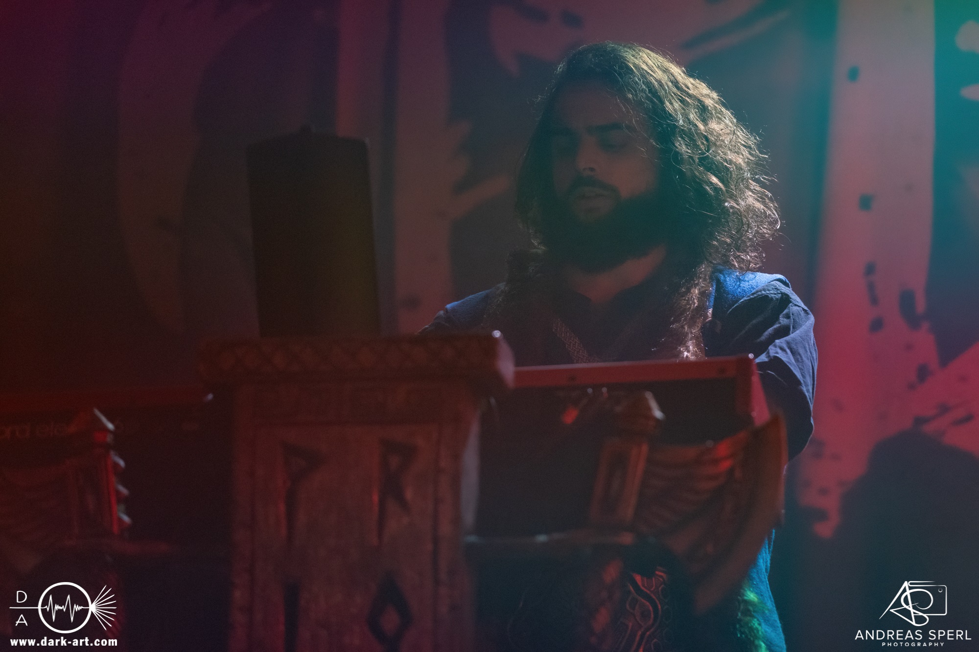 Zeit, das Horn neu zu befüllen. Ich ernte immer mehr anerkennende Blicke und multilinguales Lob meiner Mitmetaller, für meine authentische Gewandung. Als Wind Rose vor 2 Jahren erstmalig das Berliner ORWO HAUS stürmten, worüber ich ebenfalls berichtete, waren noch mehr zwergisch gekleidete unterwegs, heute dominiert Leder und Kutte – hach, nie ist man „richtig“ angezogen. Dafür aber die Herren Wind Rose aus Italien, die nun zu einem fulminanten Bühnenbild auf das Durin stolz gewesen wäre, ihr Konzert zu 21:00 Uhr einleiten.