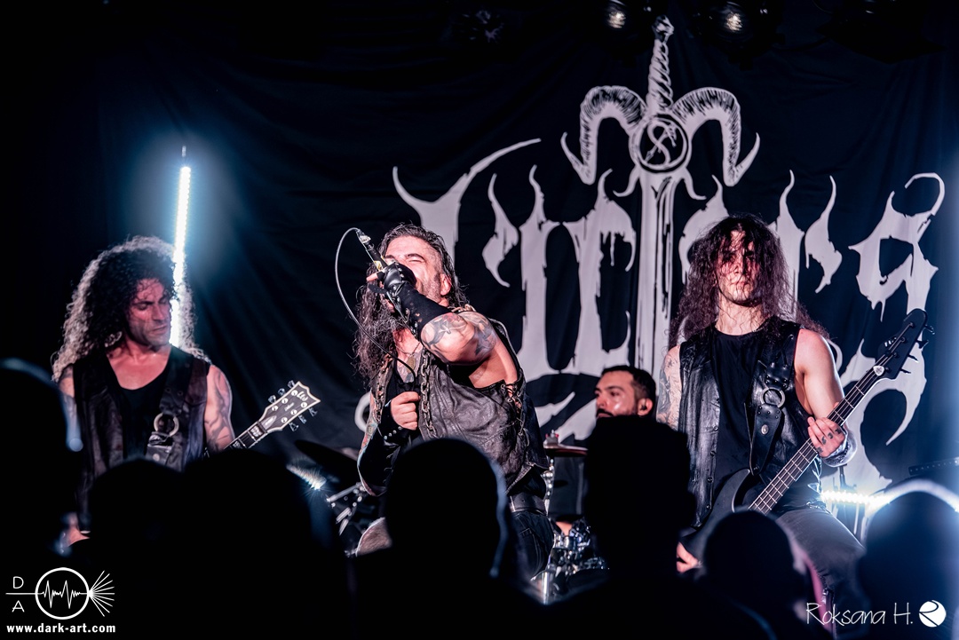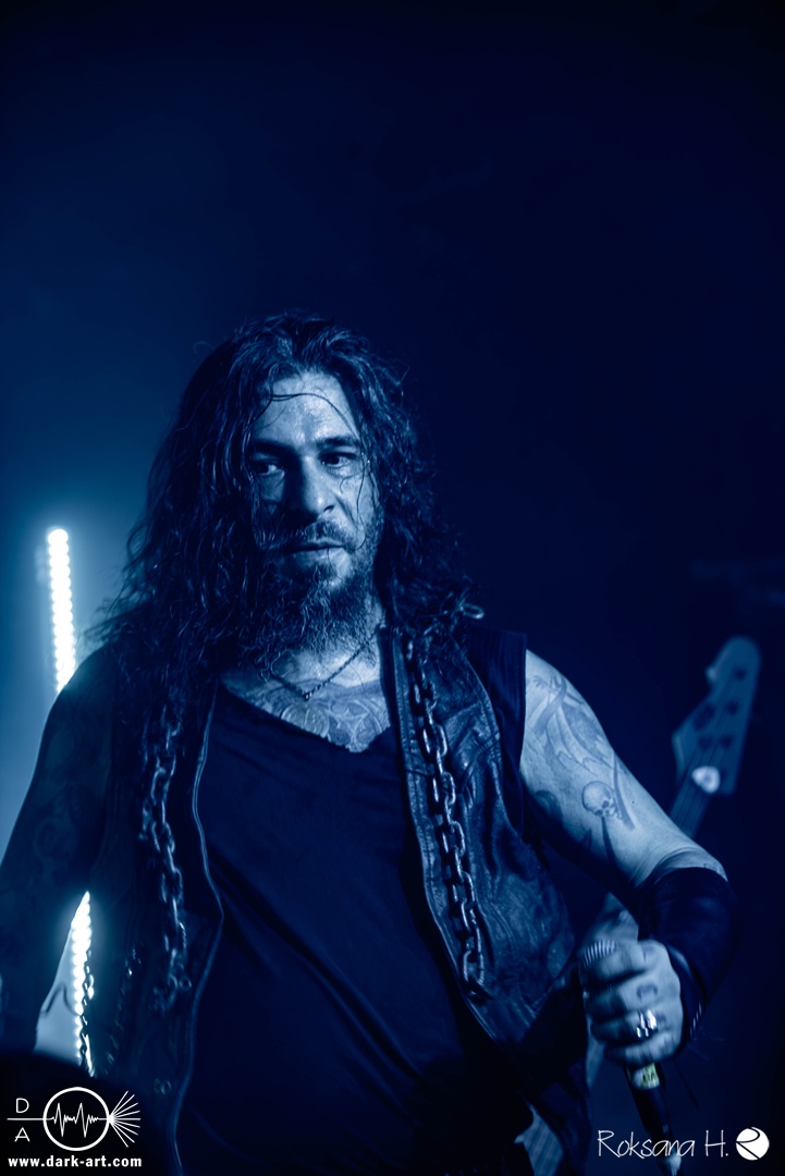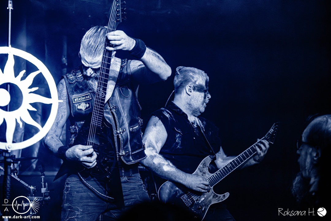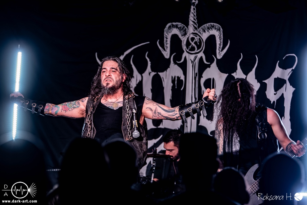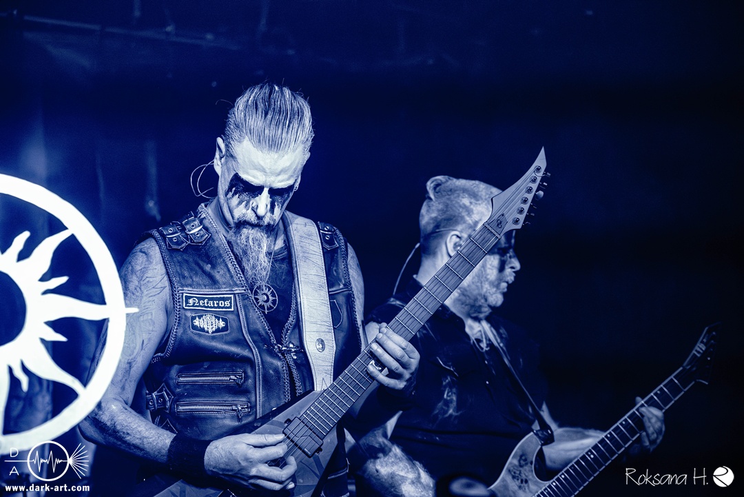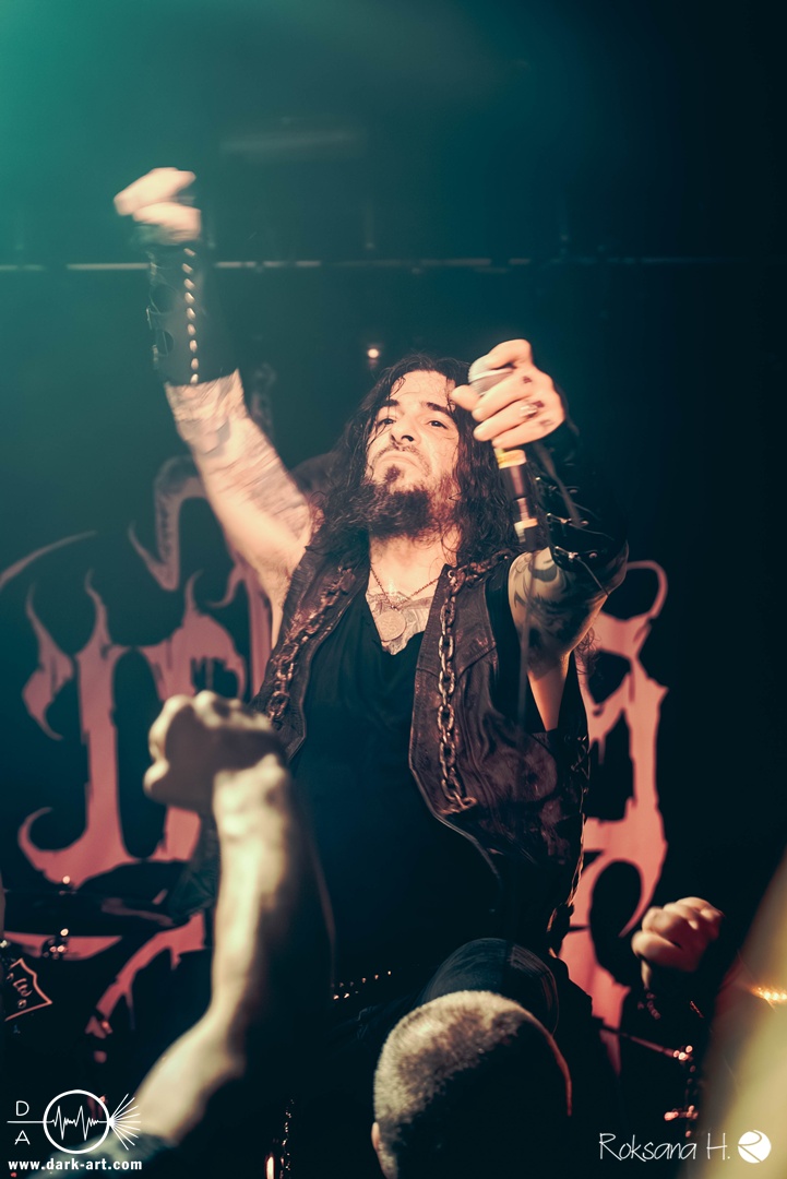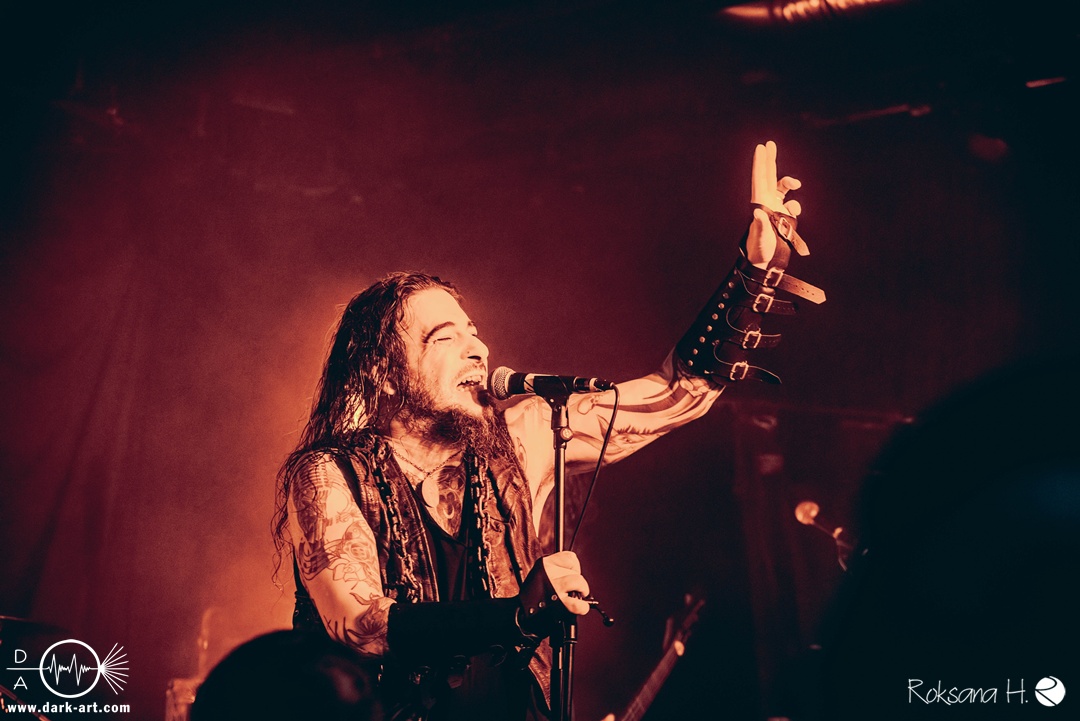 Aber kommen wir erst einmal zum Anfang,  den machten nämlich Morbus Dei. Die vierköpfige Band durfte die Black Metal Bastion eröffnen und das Publikum auf den weiteren Abend einstimmen. „Einstimmen“ ist dabei ein spannendes Wort, die Band trägt sich in erster Linie durch den intensiven Gesang vom Sänger Pain. Während es musikalisch mal doomiger, mal grooviger und mal einfach nach einem Paradebeispiel des rohen und gnadenlosen Black Metals klang, öffnete Pain mit jedem Ton ein neues Tor zur Hölle. Dabei hüllte eisblaues Licht durchgehend gleichbleibend die Bühne ein, was damit nicht nur ein entspannter Auftakt für den Lichttechniker war,  sondern für so manchen auch ein sehr eintöniges visuelles Erlebnis. Als die Band sich nach 20 Minuten vom Publikum abwandte,  das Licht gleich blieb und leise Musik im Hintergrund anlief, reagierte das Publikum teils verwirrt dreinblickend, teils startete man Gespräche, bis die Band dann wieder loslegte. Es stellte sich heraus: Die bis hierhin gehörten Klänge waren ein Intro gewesen. Als dann zum nachfolgenden Lied ein Scheinwerfer von Blau auf Lila wechselte und mitten im Song wieder zurück, wurde zumindest klar, dass die Lichtsituation nicht einem Defekt der Anlage zugrunde lag. Oder doch? Nach gut 35 Minuten war das Set zu Ende.
