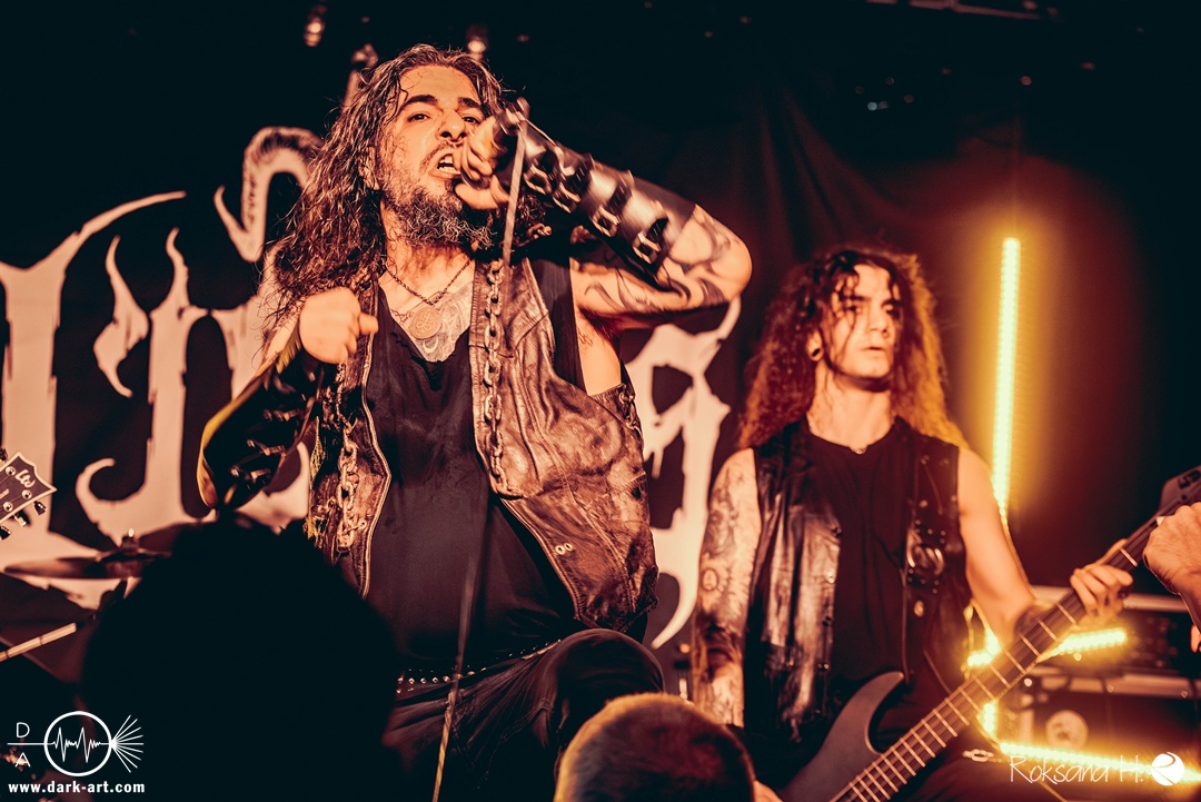 Nach einem weiteren längeren Umbau ging es mit Lucifers Child weiter. Die Band aus Athen hat 2025 ihr neustes Album The Illuminat veröffentlicht und ist anlässlich dessen aktuell auf ihrer Ascensions of Fire -Tour in Mitteleuropa unterwegs. Vorn dran haben sie den Gig in Würzburg angehangen. Und trotz viel mehr Dekorationselementen als bei den vorherigen Bands, wie Bannern und Lichtinstallationen, wirkte die Bühne geräumiger – die vierköpfige Band um Sänger Marios schien schon fast Raum für all die Bewegung auf der Bühne zu haben! Außerdem, siehe da, die Lichtanlage kann mehr als nur Blau! Schnelle Riffs, flackerndes Licht, Lucifers Child am Durchfeuern! Und auch, wenn das Publikum lichter wurde, hörte die Begeisterung vor und auf der Bühne nicht auf. Sänger Marios rief zum dritten Song zu einem Circle Pit auf, und auch, wenn es wohl eher Black Metal untypisch ist, bildete sich tatsächlich eine entsprechende Fläche und ein paar Besucher folgten dem Aufruf, wenn auch nur bis etwa zur Hälfte des Songs. Es folgten einige weitere Lieder und ein großes Lob an die Bands und den Veranstaltungsort, bevor das Konzert nach gut einer Stunde sein Ende fand.