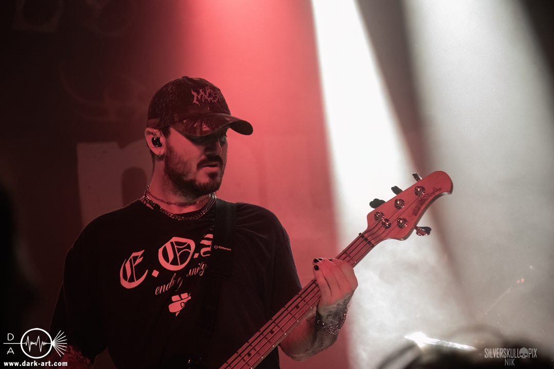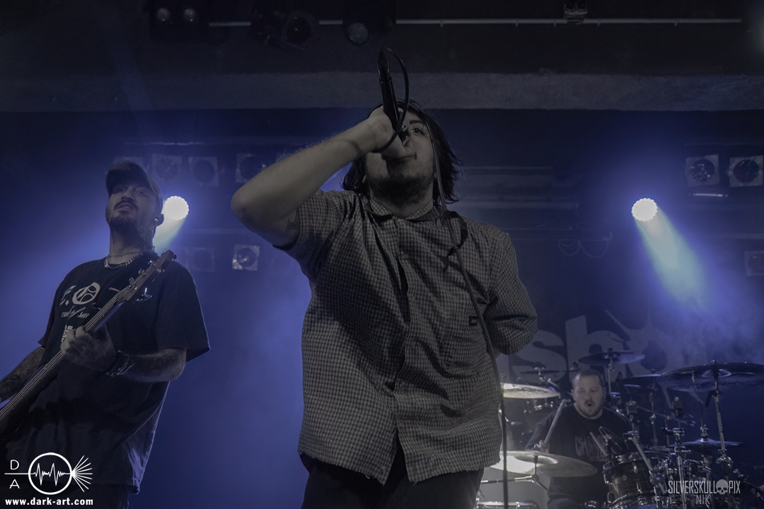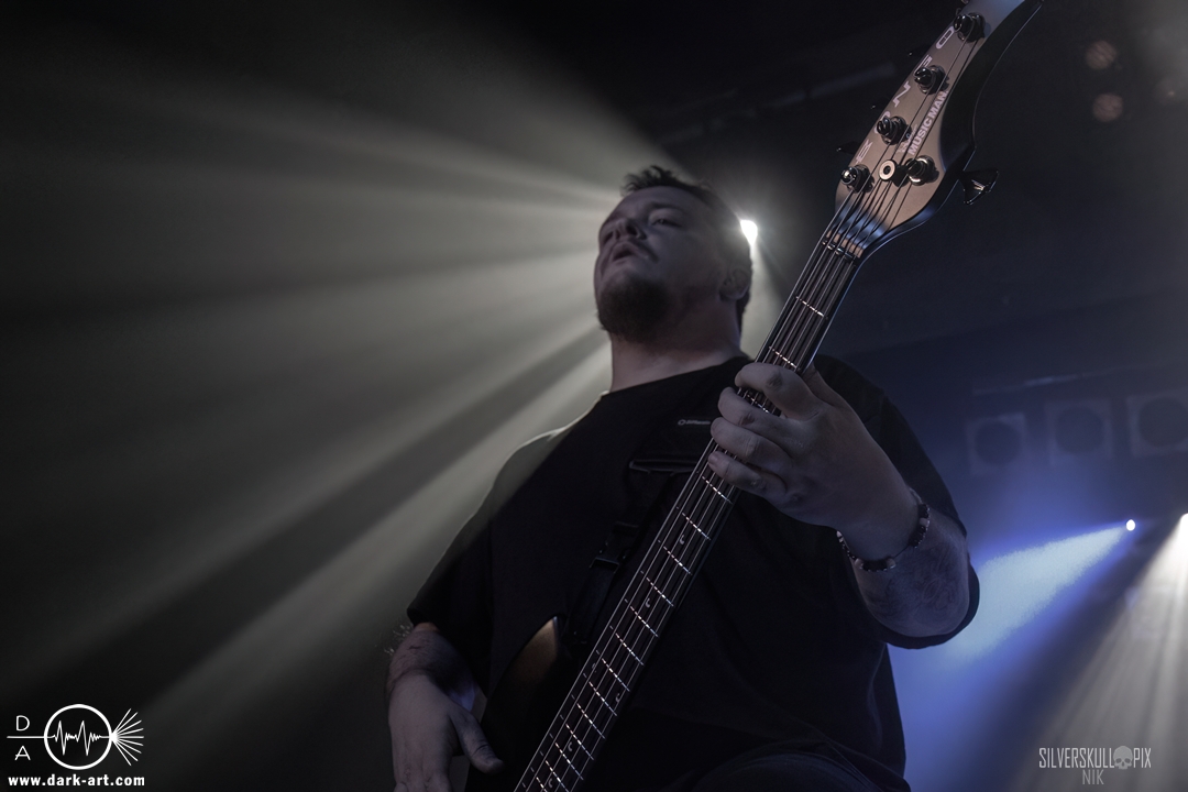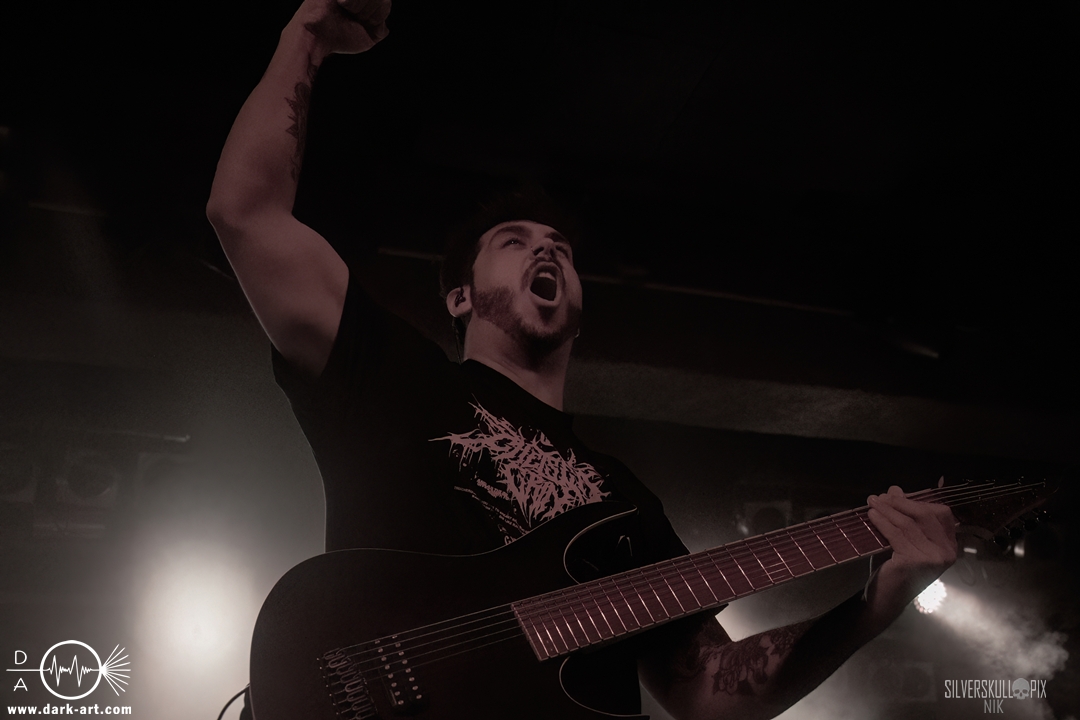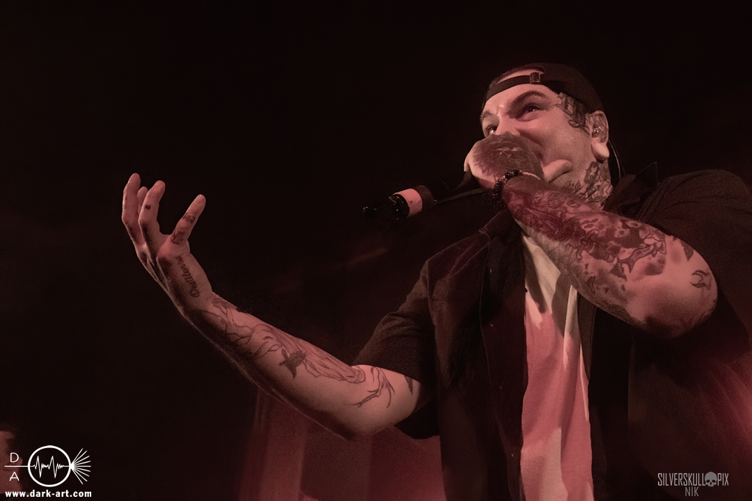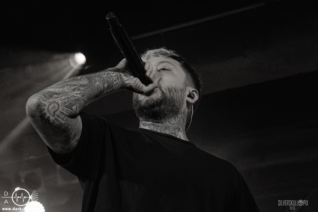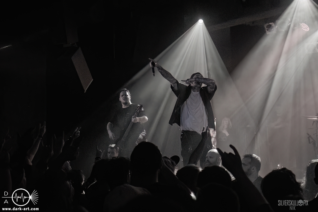Eröffnet wurde das fröhliche Weihnachtssingen von Crown Magnetar aus Colorado, und der Vierer hatte direkt so richtig Bock. Schon zum zweiten Song, Full Spectrum Hatred wurden die Crowdsurfer animiert und auch der Pit kam direkt in Fahrt. Natürlich durfte auch ihre neueste Single Desecrate Infinte nicht fehlen. Musikalisch bekamen wir unglaublich fiesen Deathcore serviert, ein Downtempo-Breakdown jagte den nächsten. Frontman Dan Tucker gab bestialische Geräusche von sich und performte ein Feature mit seiner Ehefrau Yasmine, die selbst Sängerin der Band Face Yourself ist und heizte das Publikum immer weiter an. Wir sahen schon früh am Abend die erste Wall of Death und auch immer mehr Crowdsurfer fanden ihren Weg nach vorn. Zum abschließenden Black Lotus drehte auch ein ordentlicher Circle Pit seine Runden. Alles in allem machten Crown Magnetar wirklich sehr viel richtig und waren ein grandioser Opener. Dan lobte zum Schluss das Publikum als die beste Crowd der Tour.
