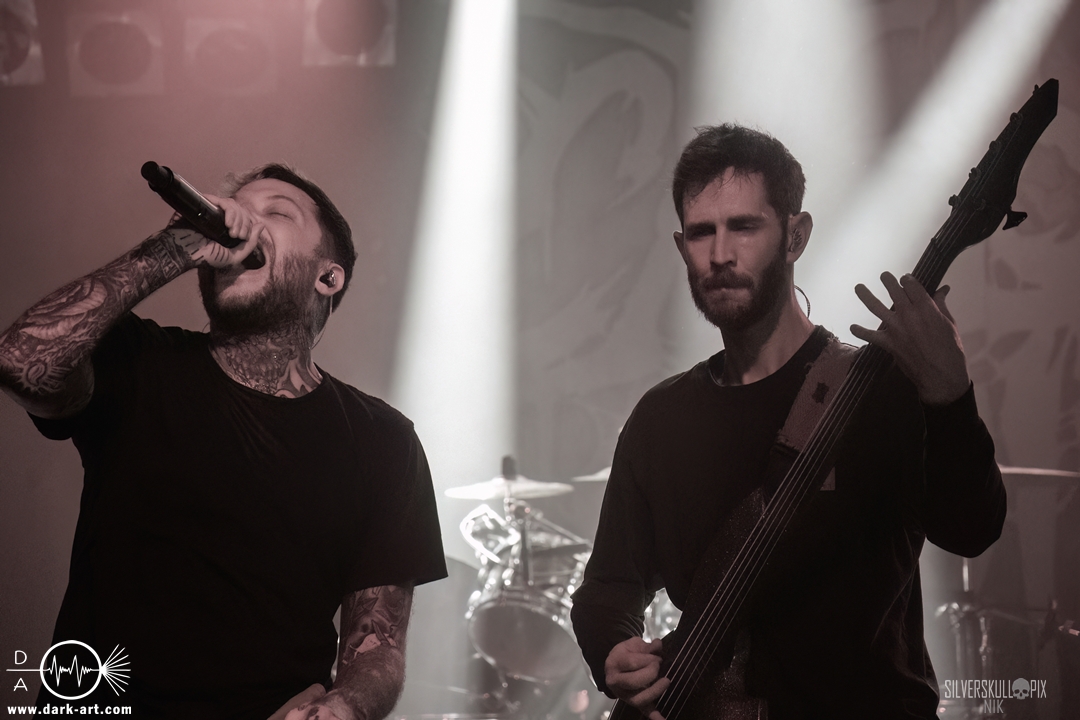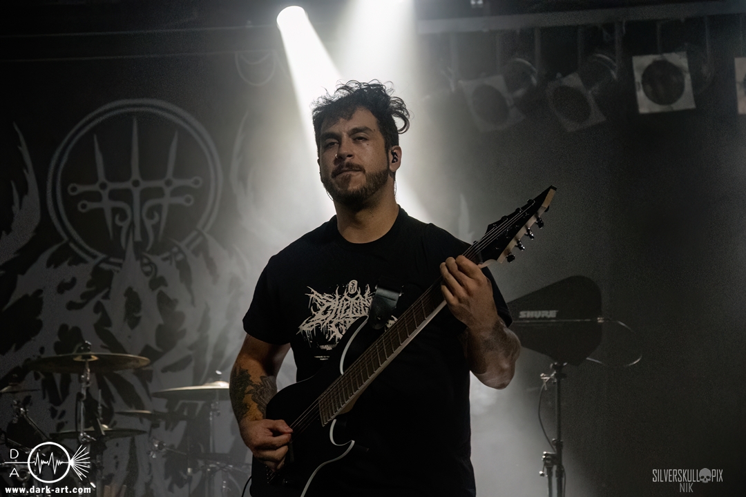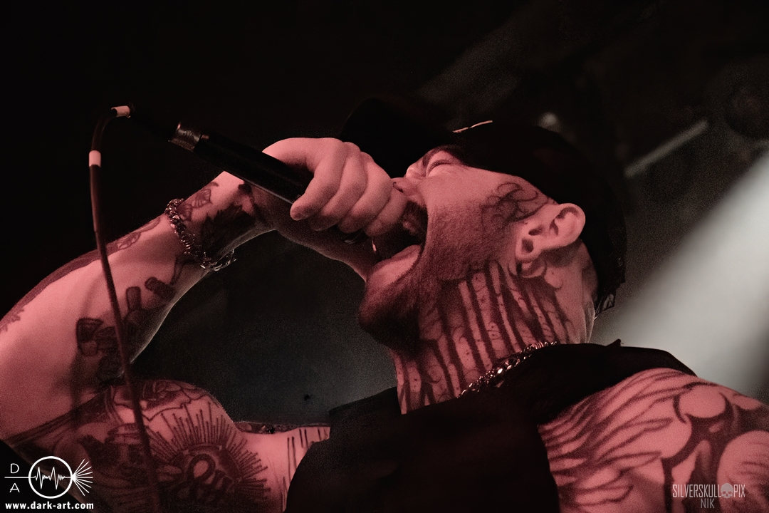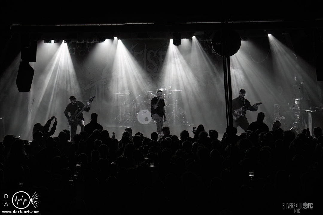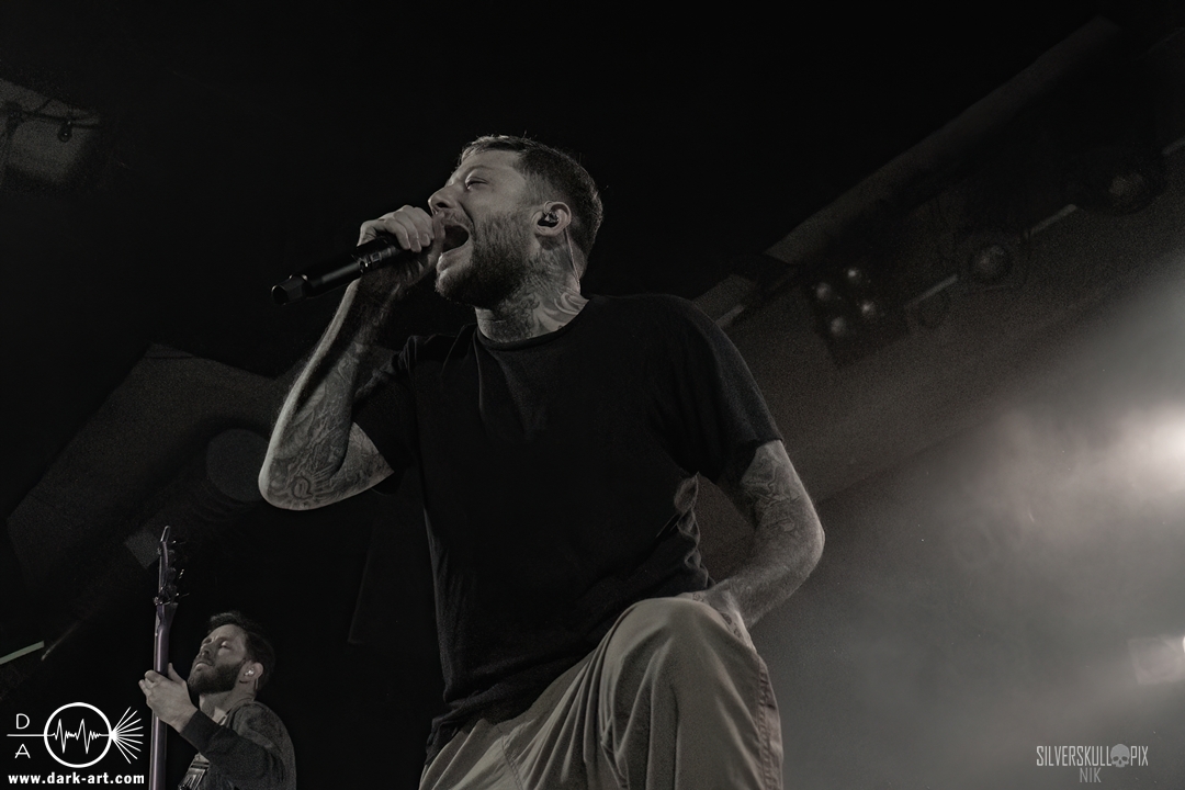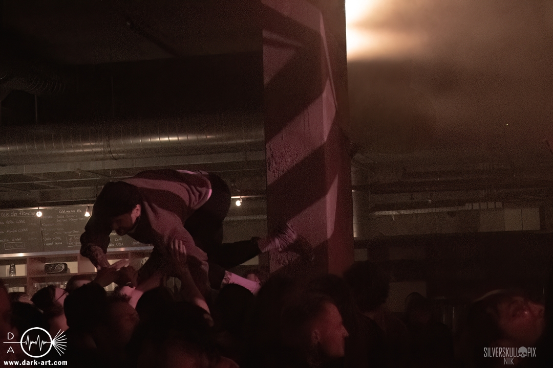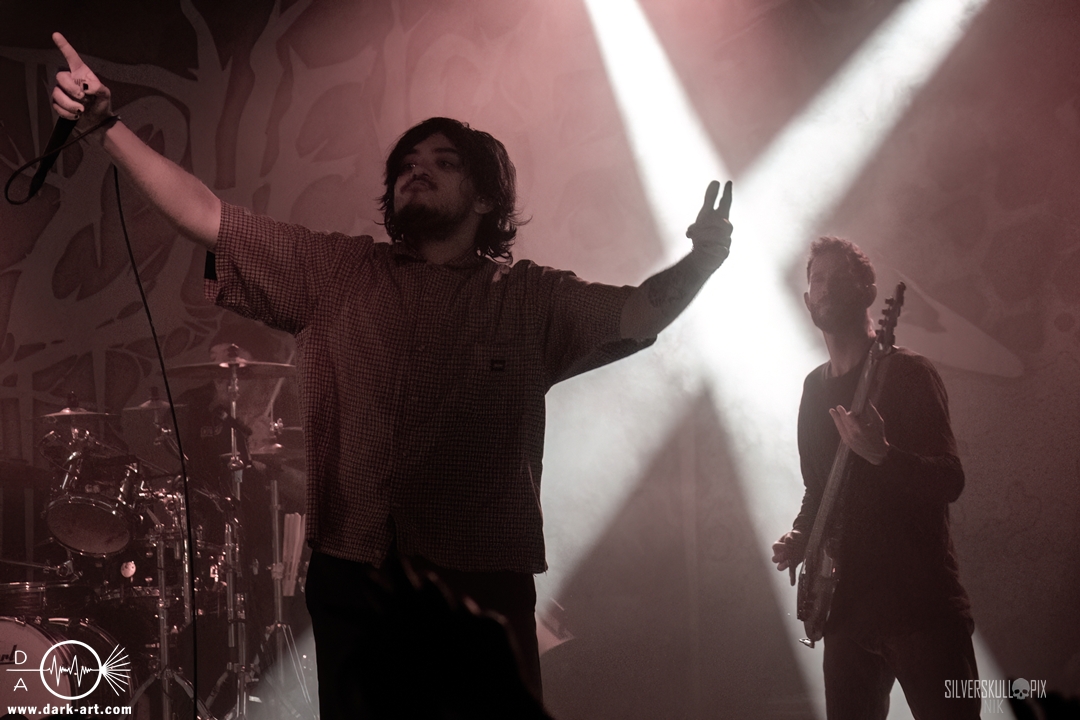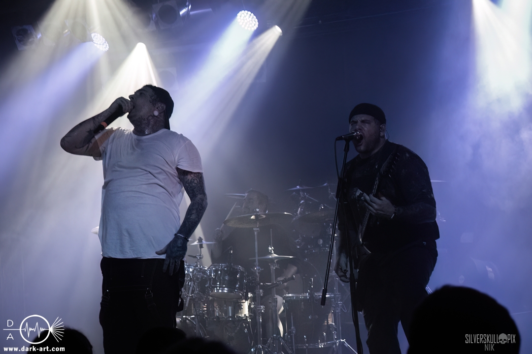 Eröffnet wurde das fröhliche Weihnachtssingen von Crown Magnetar aus Colorado, und der Vierer hatte direkt so richtig Bock. Schon zum zweiten Song, Full Spectrum Hatred wurden die Crowdsurfer animiert und auch der Pit kam direkt in Fahrt. Natürlich durfte auch ihre neueste Single Desecrate Infinte nicht fehlen. Musikalisch bekamen wir unglaublich fiesen Deathcore serviert, ein Downtempo-Breakdown jagte den nächsten. Frontman Dan Tucker gab bestialische Geräusche von sich und performte ein Feature mit seiner Ehefrau Yasmine, die selbst Sängerin der Band Face Yourself ist und heizte das Publikum immer weiter an. Wir sahen schon früh am Abend die erste Wall of Death und auch immer mehr Crowdsurfer fanden ihren Weg nach vorn. Zum abschließenden Black Lotus drehte auch ein ordentlicher Circle Pit seine Runden. Alles in allem machten Crown Magnetar wirklich sehr viel richtig und waren ein grandioser Opener. Dan lobte zum Schluss das Publikum als die beste Crowd der Tour.