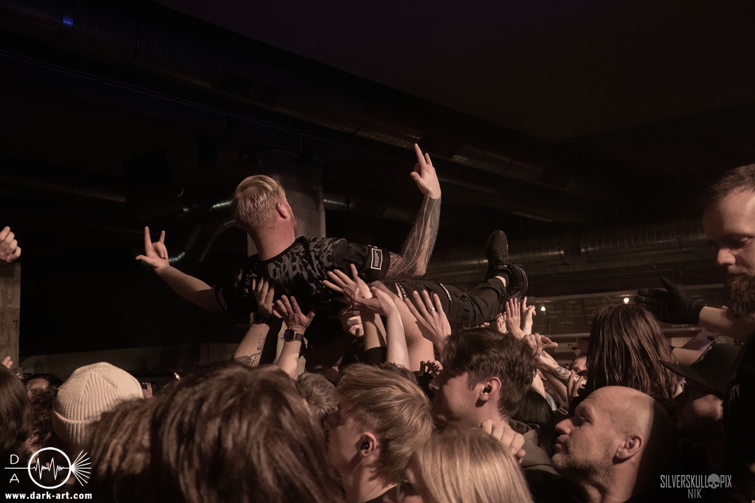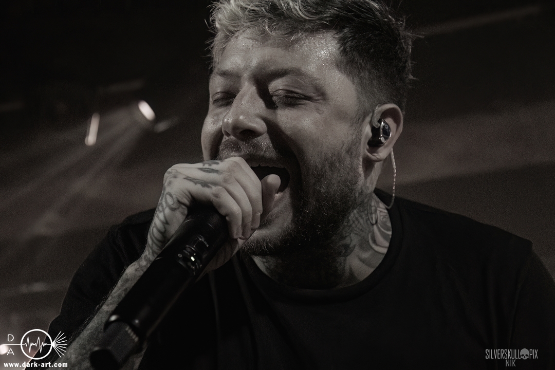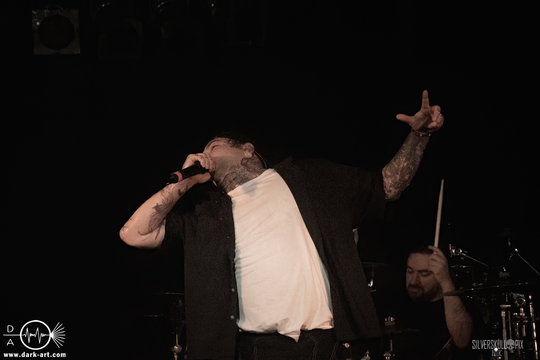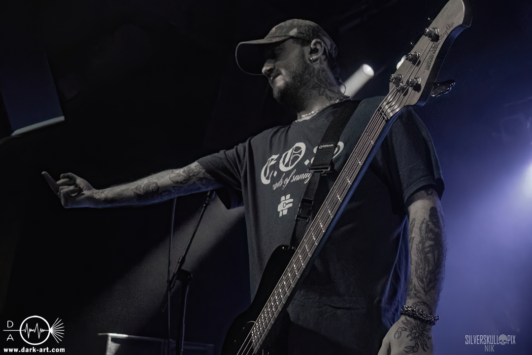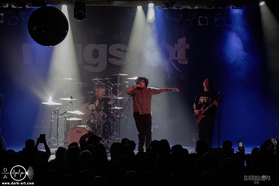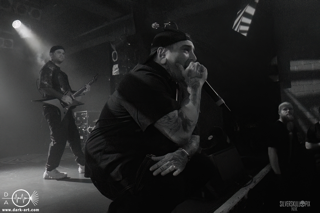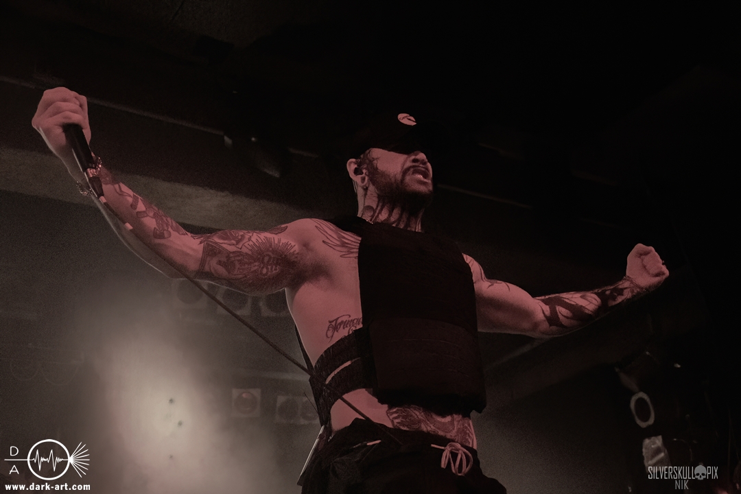 Eröffnet wurde das fröhliche Weihnachtssingen von Crown Magnetar aus Colorado, und der Vierer hatte direkt so richtig Bock. Schon zum zweiten Song, Full Spectrum Hatred wurden die Crowdsurfer animiert und auch der Pit kam direkt in Fahrt. Natürlich durfte auch ihre neueste Single Desecrate Infinte nicht fehlen. Musikalisch bekamen wir unglaublich fiesen Deathcore serviert, ein Downtempo-Breakdown jagte den nächsten. Frontman Dan Tucker gab bestialische Geräusche von sich und performte ein Feature mit seiner Ehefrau Yasmine, die selbst Sängerin der Band Face Yourself ist und heizte das Publikum immer weiter an. Wir sahen schon früh am Abend die erste Wall of Death und auch immer mehr Crowdsurfer fanden ihren Weg nach vorn. Zum abschließenden Black Lotus drehte auch ein ordentlicher Circle Pit seine Runden. Alles in allem machten Crown Magnetar wirklich sehr viel richtig und waren ein grandioser Opener. Dan lobte zum Schluss das Publikum als die beste Crowd der Tour.