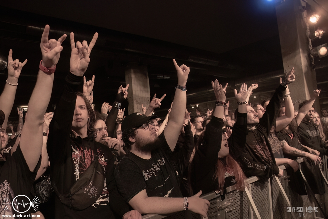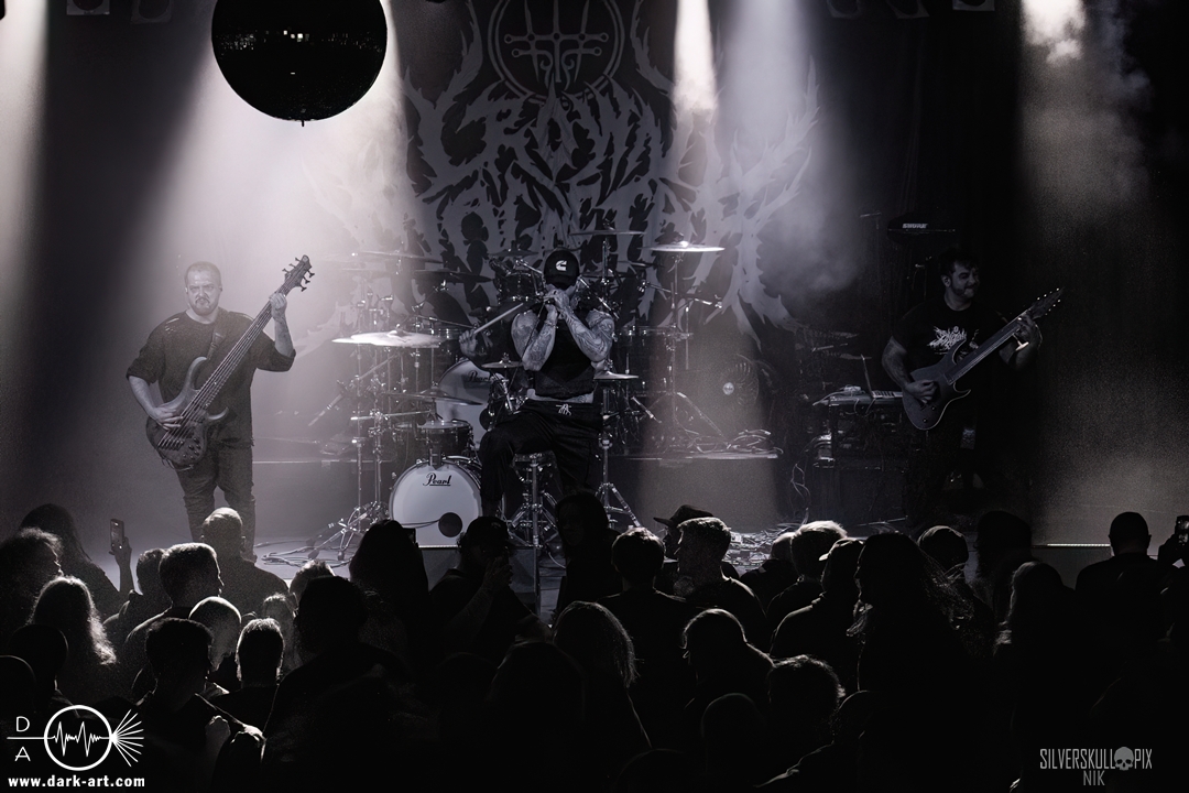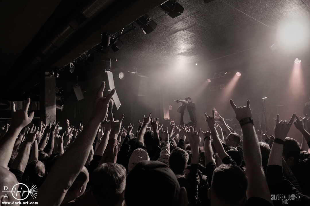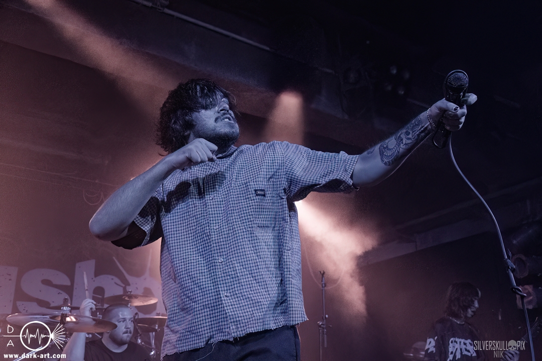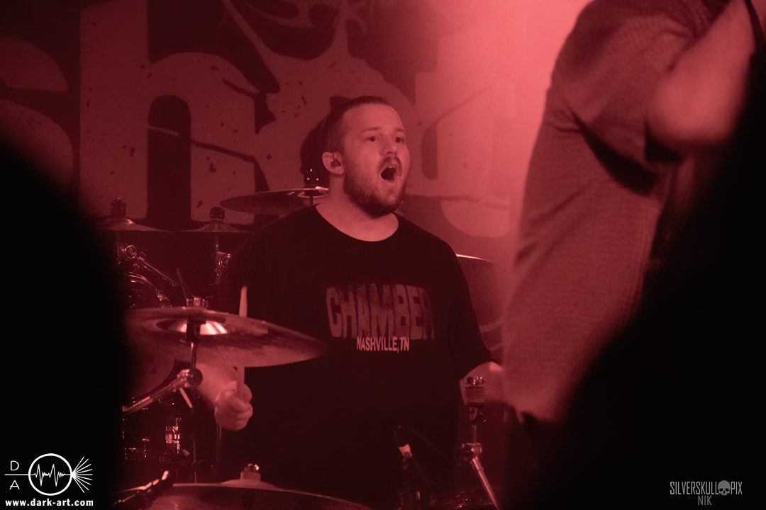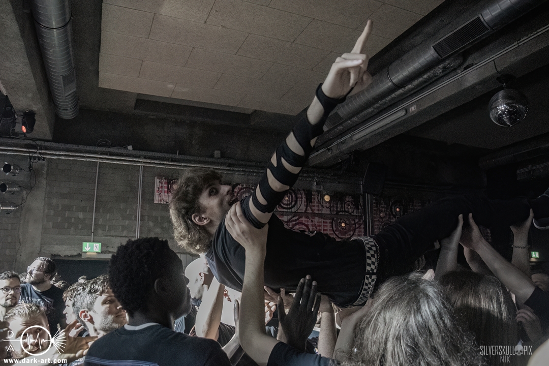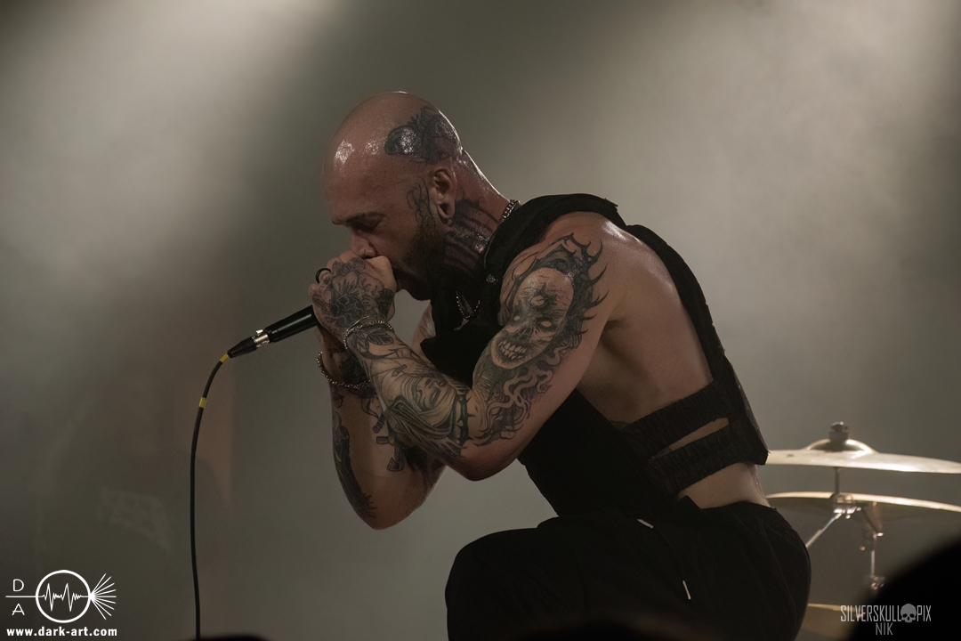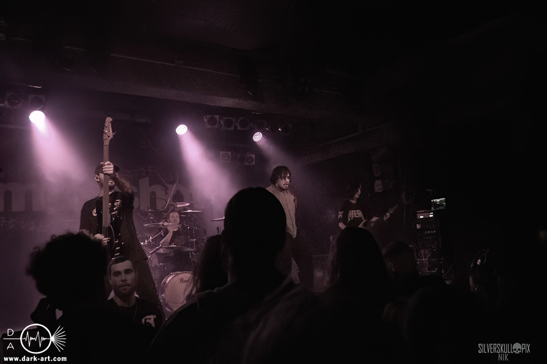 Eröffnet wurde das fröhliche Weihnachtssingen von Crown Magnetar aus Colorado, und der Vierer hatte direkt so richtig Bock. Schon zum zweiten Song, Full Spectrum Hatred wurden die Crowdsurfer animiert und auch der Pit kam direkt in Fahrt. Natürlich durfte auch ihre neueste Single Desecrate Infinte nicht fehlen. Musikalisch bekamen wir unglaublich fiesen Deathcore serviert, ein Downtempo-Breakdown jagte den nächsten. Frontman Dan Tucker gab bestialische Geräusche von sich und performte ein Feature mit seiner Ehefrau Yasmine, die selbst Sängerin der Band Face Yourself ist und heizte das Publikum immer weiter an. Wir sahen schon früh am Abend die erste Wall of Death und auch immer mehr Crowdsurfer fanden ihren Weg nach vorn. Zum abschließenden Black Lotus drehte auch ein ordentlicher Circle Pit seine Runden. Alles in allem machten Crown Magnetar wirklich sehr viel richtig und waren ein grandioser Opener. Dan lobte zum Schluss das Publikum als die beste Crowd der Tour.