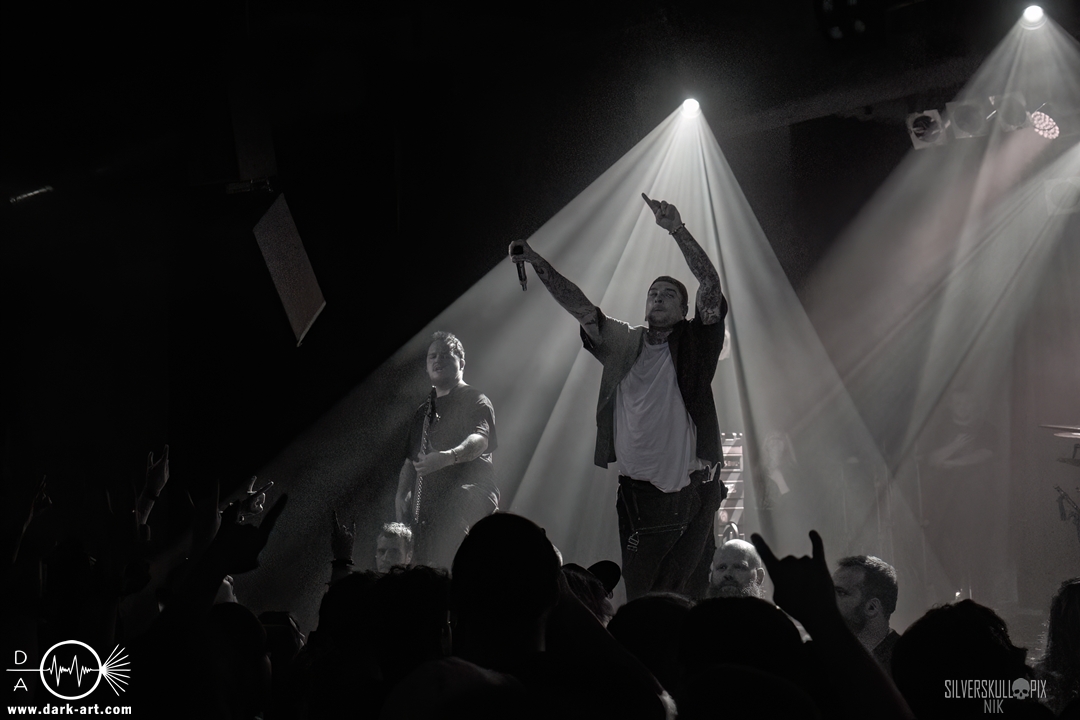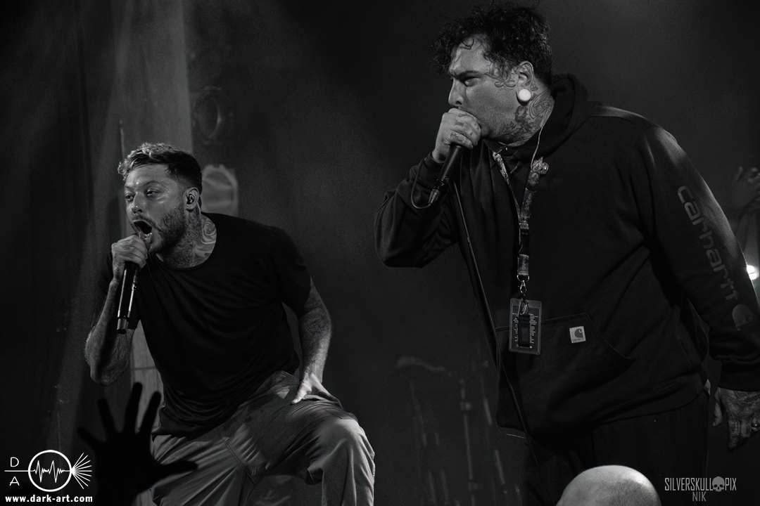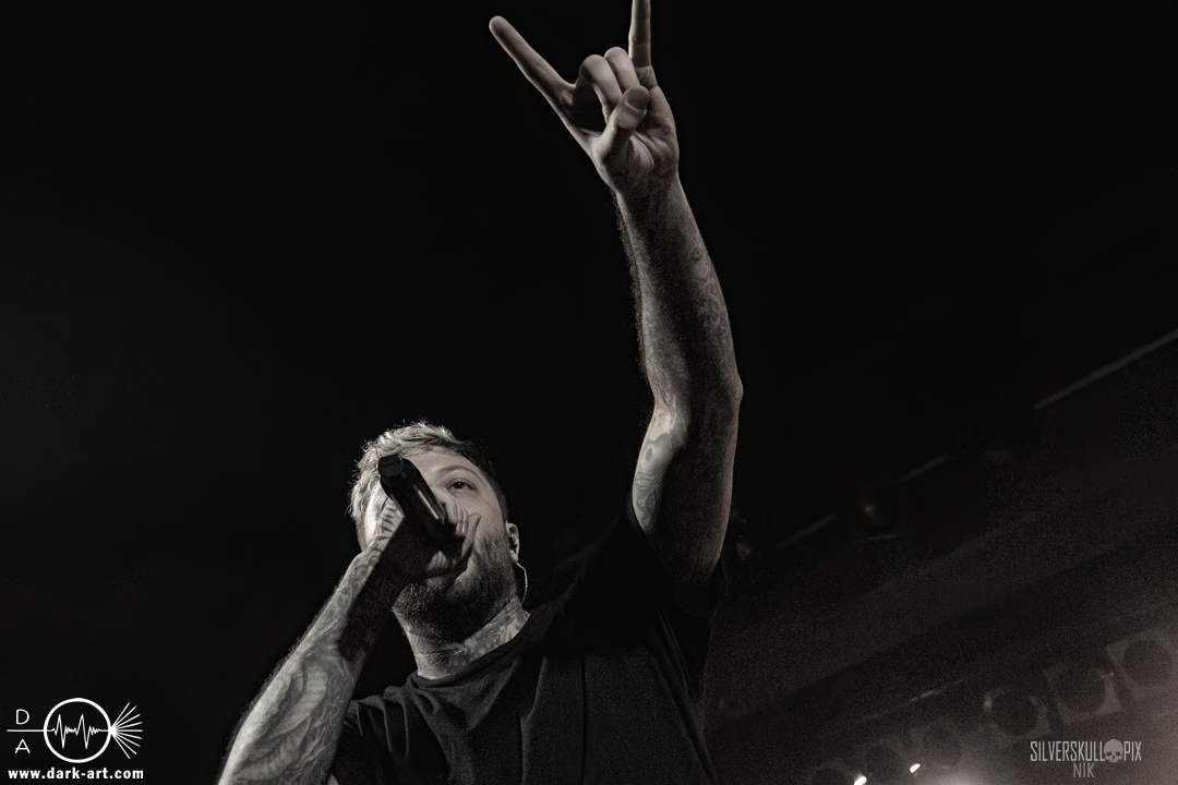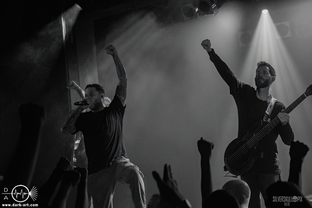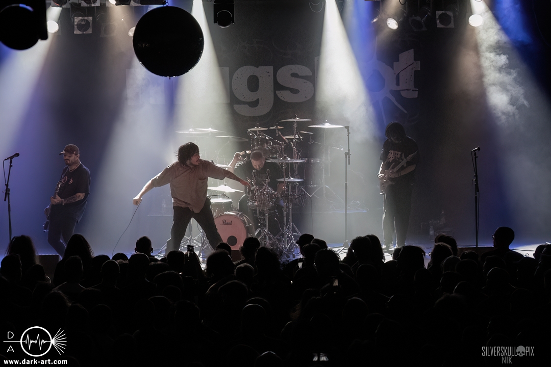 From California With Love – die nun folgenden Mugshot strotzen nur so vor Energie. Nicht viele Bands Two-Steppen mitten im Set auf der Bühne. Sänger Ringo Waterman und Gitarrist Michael Demko hatten sichtlich Freude daran. Ihre wilde Mischung aus Hardcore, Beatdown und Metalcore brachte auch das Publikum erneut so richtig in Bewegung. Die Band auf der Bühne tat es ihnen gleich, und so wurde auch der zweite Auftritt zu einem Fest. Michael und Bassist Ciro Abraham unterstützen fleißig mit Backing Vocals, allgemein heizten auch Mugshot die Menge so richtig an. Drummer Connor Haines nutzte eine Pause zwischen den Songs, um sich ein Croissant auf die Bühne bringen zu lassen. Mit dabei war natürlich auch ihr neuestes Album All the Devils are Here, das es ordentlich in sich hat. Ein weiteres Mal wurde der Auftritt zum Belastungstest für die Security im Graben, Hut ab an dieser Stelle. Ja, auch die Kalifornier machten einfach alles richtig und hatten die Halle in Windeseile auf ihrer Seite. Das hat erneut eine ganze Menge Spaß gemacht, Mugshot sollte man unbedingt auf der Rechnung haben.