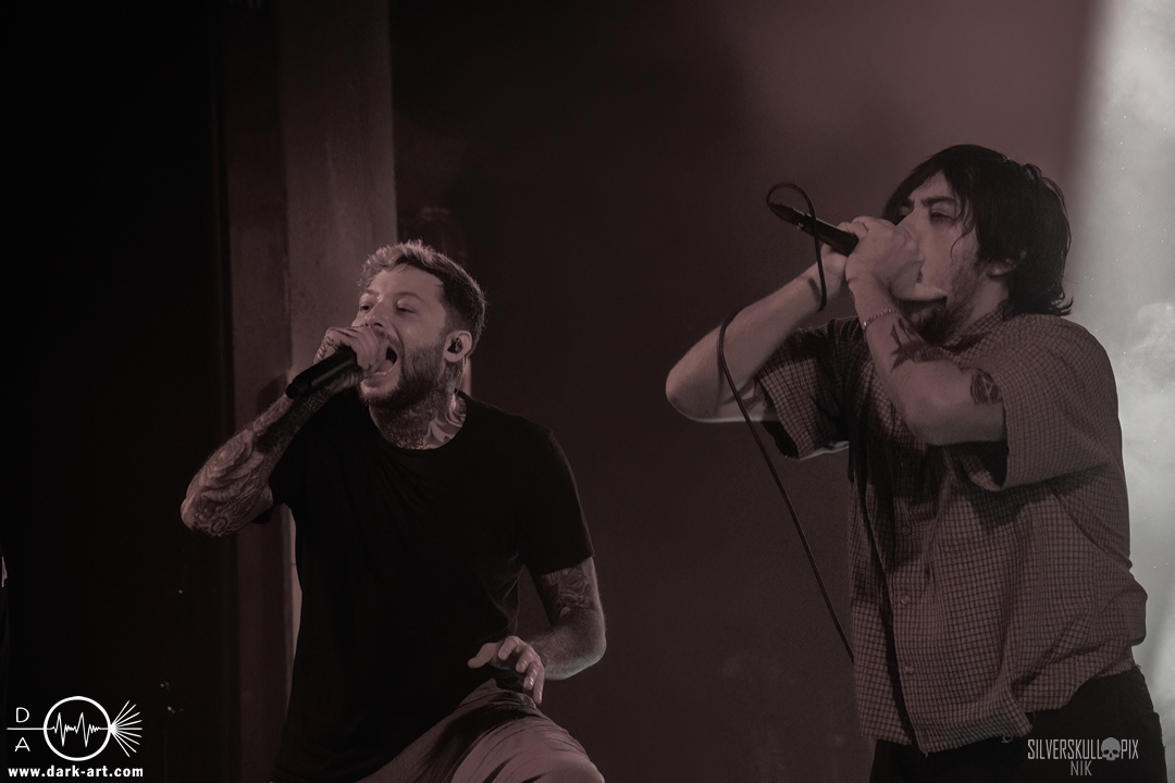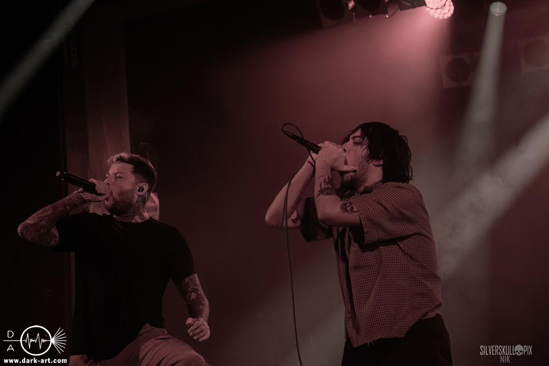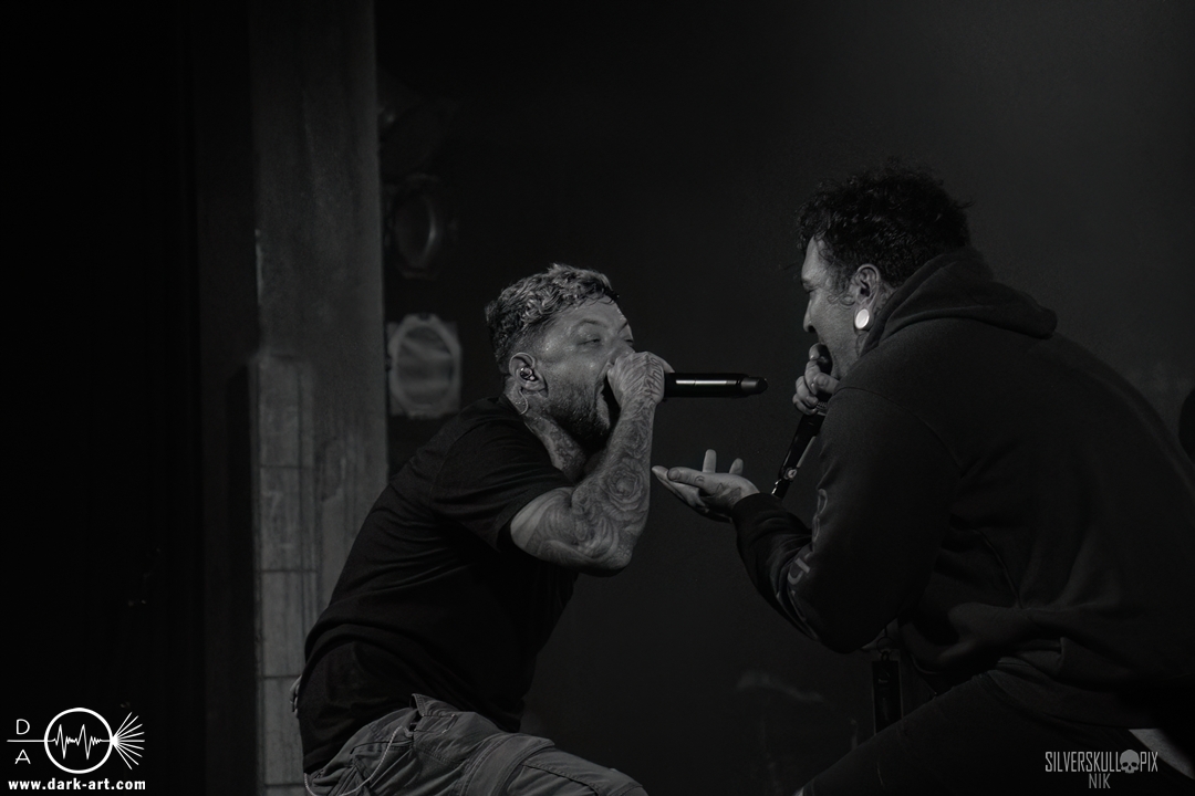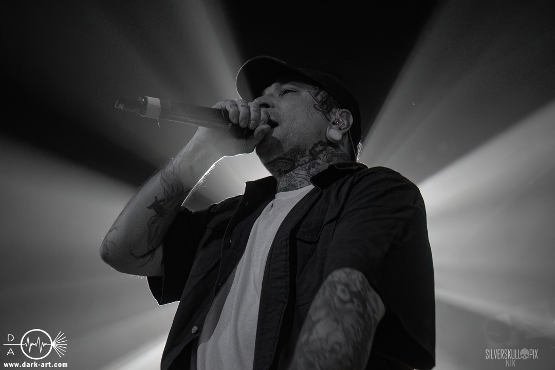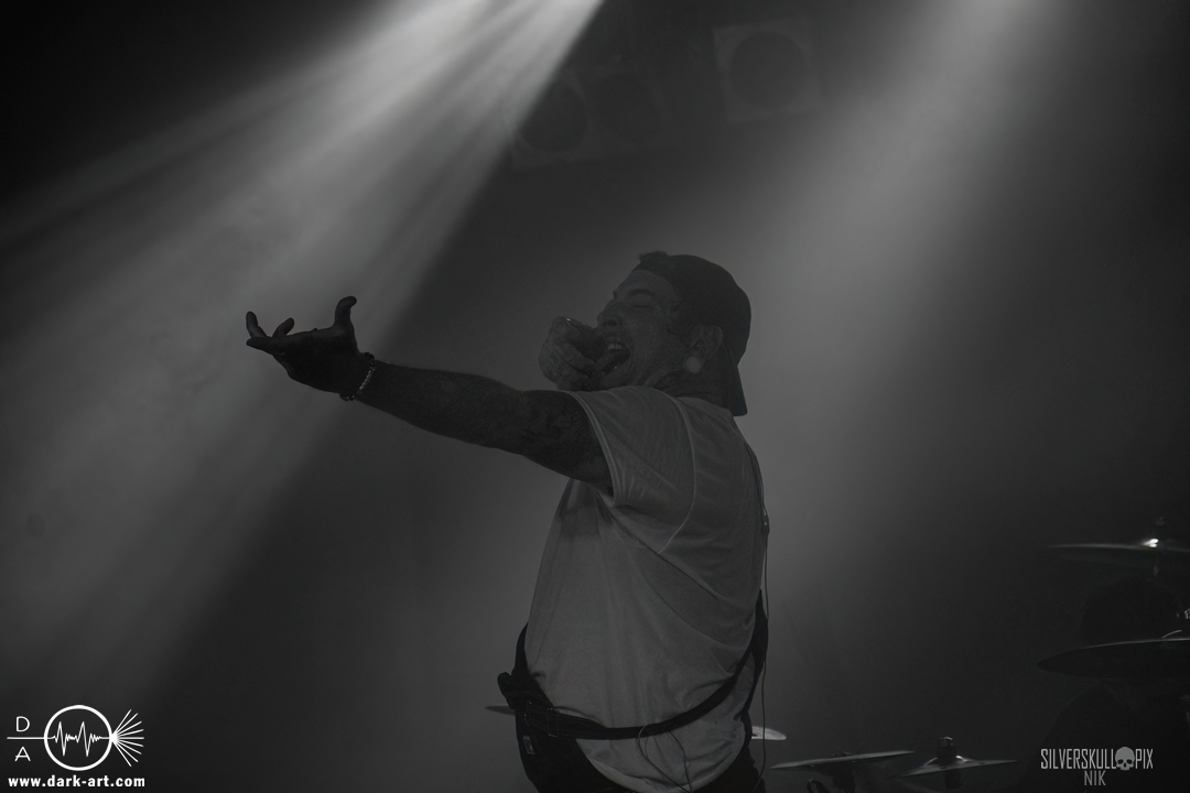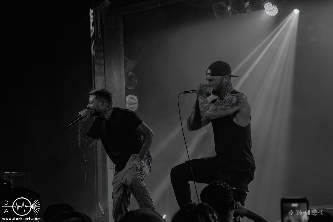 From California With Love – die nun folgenden Mugshot strotzen nur so vor Energie. Nicht viele Bands Two-Steppen mitten im Set auf der Bühne. Sänger Ringo Waterman und Gitarrist Michael Demko hatten sichtlich Freude daran. Ihre wilde Mischung aus Hardcore, Beatdown und Metalcore brachte auch das Publikum erneut so richtig in Bewegung. Die Band auf der Bühne tat es ihnen gleich, und so wurde auch der zweite Auftritt zu einem Fest. Michael und Bassist Ciro Abraham unterstützen fleißig mit Backing Vocals, allgemein heizten auch Mugshot die Menge so richtig an. Drummer Connor Haines nutzte eine Pause zwischen den Songs, um sich ein Croissant auf die Bühne bringen zu lassen. Mit dabei war natürlich auch ihr neuestes Album All the Devils are Here, das es ordentlich in sich hat. Ein weiteres Mal wurde der Auftritt zum Belastungstest für die Security im Graben, Hut ab an dieser Stelle. Ja, auch die Kalifornier machten einfach alles richtig und hatten die Halle in Windeseile auf ihrer Seite. Das hat erneut eine ganze Menge Spaß gemacht, Mugshot sollte man unbedingt auf der Rechnung haben.