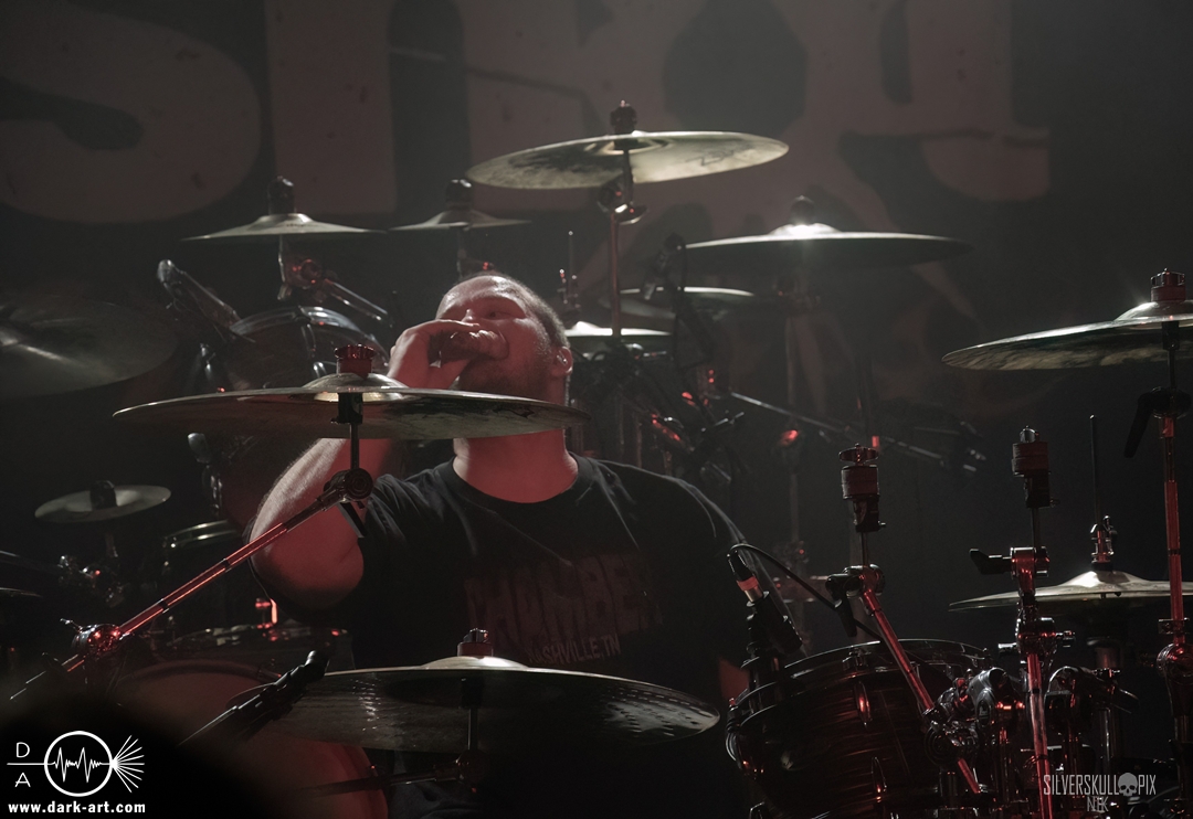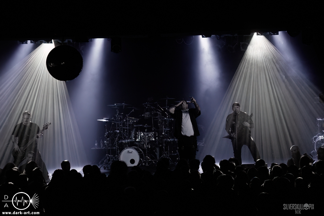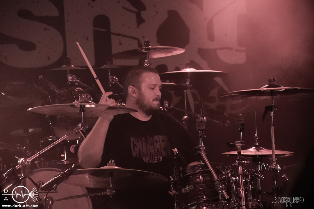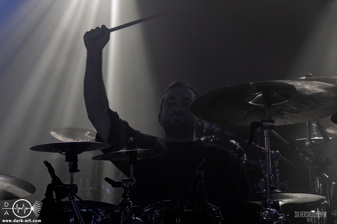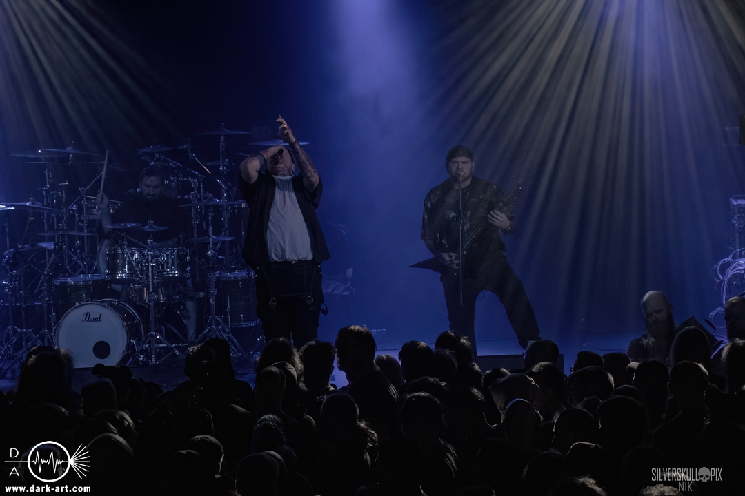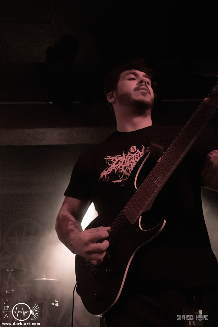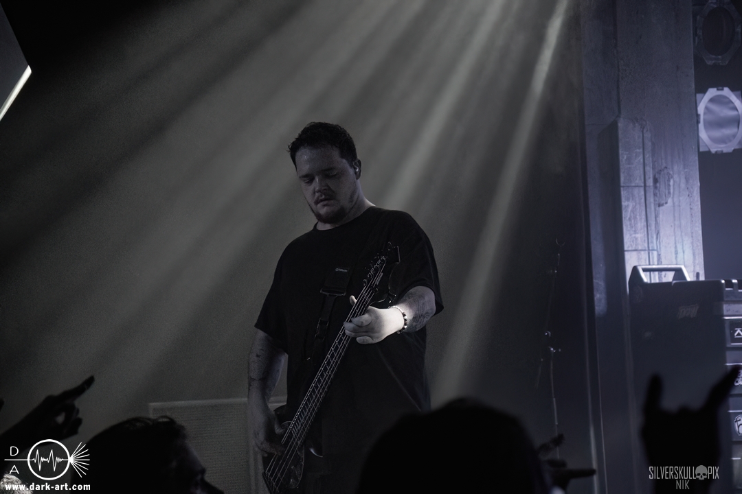 Dann ging der Co-Headliner Signs of the Swarm auf die Bühne und hatte sich eine ganze Menge vorgenommen: Sie präsentierten uns ihr neues Album To Rid Myself of Truth und eröffneten das Set direkt mit dem Titeltrack und dem anschließenden Hellmustfearme. Natürlich sollten auch ältere Songs nicht zu kurz kommen, und so servierten sie uns Tower of Torsos von ihrem vorletzten Album Amongst the Low & Empty, dessen gleichnamiger Song das Set abrundete. Davor gab es saftigen Deathcore auf die Ohren. Dave Simonich und seine Kollegen liefen zu einer beeindruckenden Form auf und hatten sichtlich Spaß auf der Bühne. Dave kündigte an, dem Publikum als größte Crowd der Tour ein besonderes Geschenk machen zu wollen, und so hatten sie eine eigene Interpretation von Rob Zombies Dragula vorbereitet. Oben auf dem Balkon wirkte der Sound etwas steril, doch unten vor der Bühne merkte man, wie viel Druck tatsächlich dahinter war. Signs of the Swarm waren der dritte Volltreffer an diesem Abend, das war ein drittes Mal großes Kino. Etwas mehr als 40 Minuten hätten es schon sein dürfen, doch diese hatten es einfach in sich.