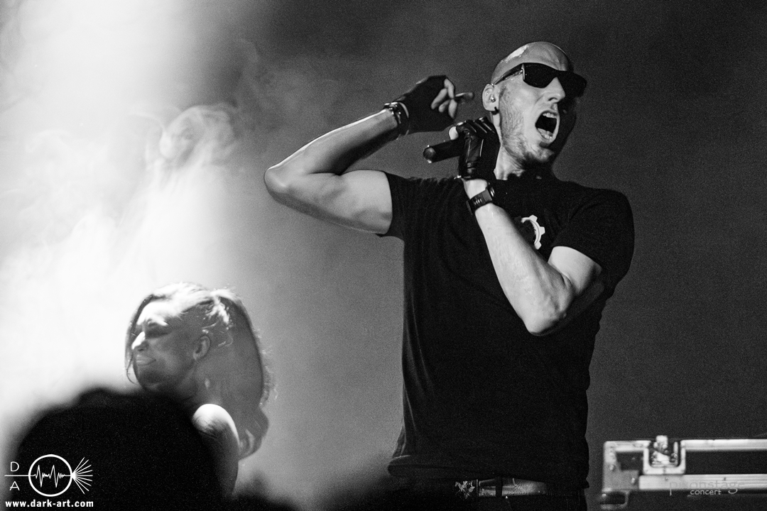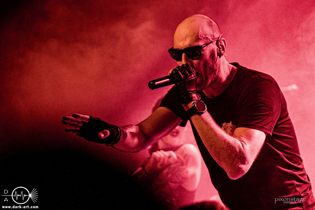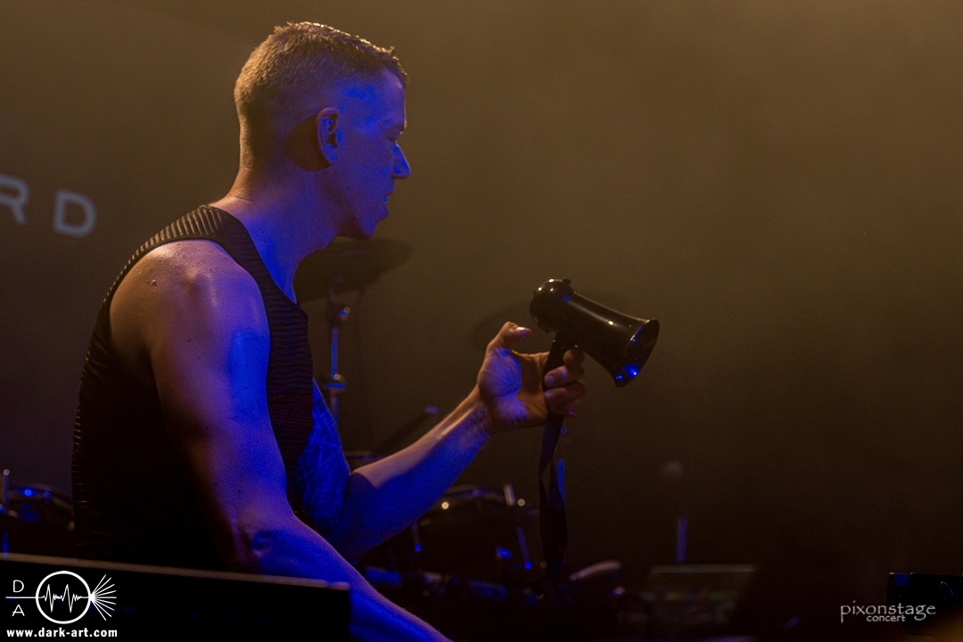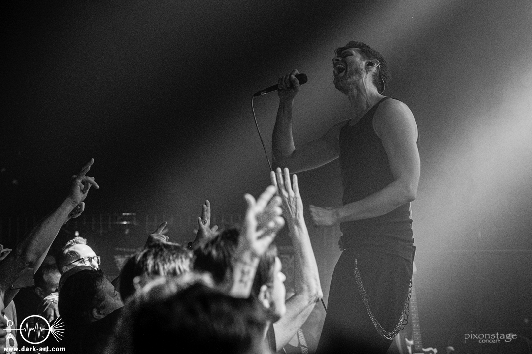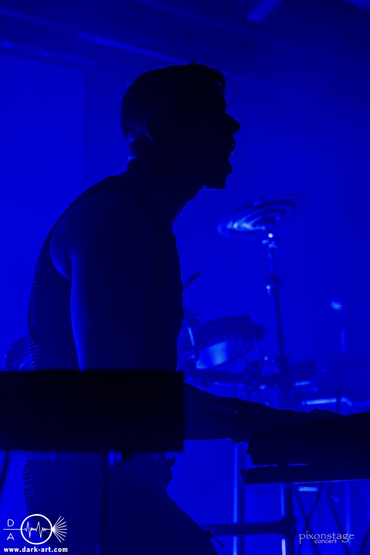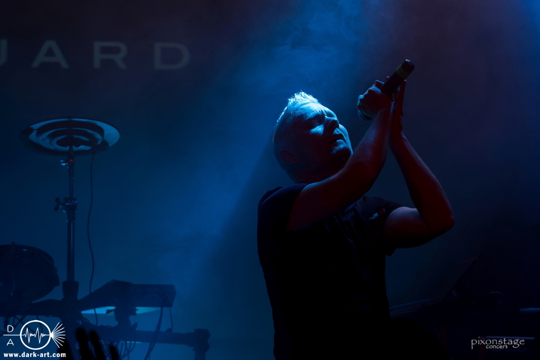 Als nächstes eroberten Vanguard die Bühne. Die schwedischen Vanguard wohlgemeint. Es gibt ja mehrere Bands gleichen Namens. Das schwedische Electronic-Duo bestehend aus Jonas Olofsson und Patrik Hansson veröffentlichte 2012 mit Sancutuary das Debütalbum und spielte sich seitdem in die Herzen der wachsenden Fans. Im November 2025 kam Venom auf den Markt. Kraftvoll starteten sie in die schon aufgeheizte Stimmung der Besucher. Jonas am Drumkit schäumte über vor Energie und animierte, springend, mit erhobenen Armen die Leute dazu, zu klatschen. Zu Punches wechselt er ans Keyboard und die Menge sang den Refrain „Your lie“ lauthals mit. Patrik, der Sänger, nutzte die ganze Bühne aus, ging immer wieder bis vorne zum Rand und immer mehr Leute kamen in Bewegung. Patrik bedankte sich nach jedem Song und auch ein Dankeschön auf Deutsch, während er sich sonst in Englisch verständigte. Jonas wechselte mehrfach zwischen Keyboard und Drumkit, oder unterstützte mit einer Flüstertüte den Gesang von Patrik. Was natürlich nicht fehlen durfte, war der Song Unz, der von durch getanzten Nächten, die in Clubs zum Tag werden, in Deutschland handelt. Dass „Unz, zwei, drei, vier“ vom Publikum aufgegriffen wurde, bedurfte keiner Aufforderung zum Mitmachen und wenn Frankfurt nicht schon im Text vorkommen würde, hätte es an diesem Abend seinen Weg gefunden. Nach dem Song kam von Patrik ein „Frankfurt in my Heart, thank you“. Die neue Single Venom, wurde von den Besuchern ebenso gut angenommen, wie Move on, ein etwas älterer Titel. Vor dem letzten Song bedankten sie sich nochmal „You are so wonderful, thank you so much“ und mit Save me war es vorbei. Noch schnell ein Foto mit allen und eine Verbeugung.