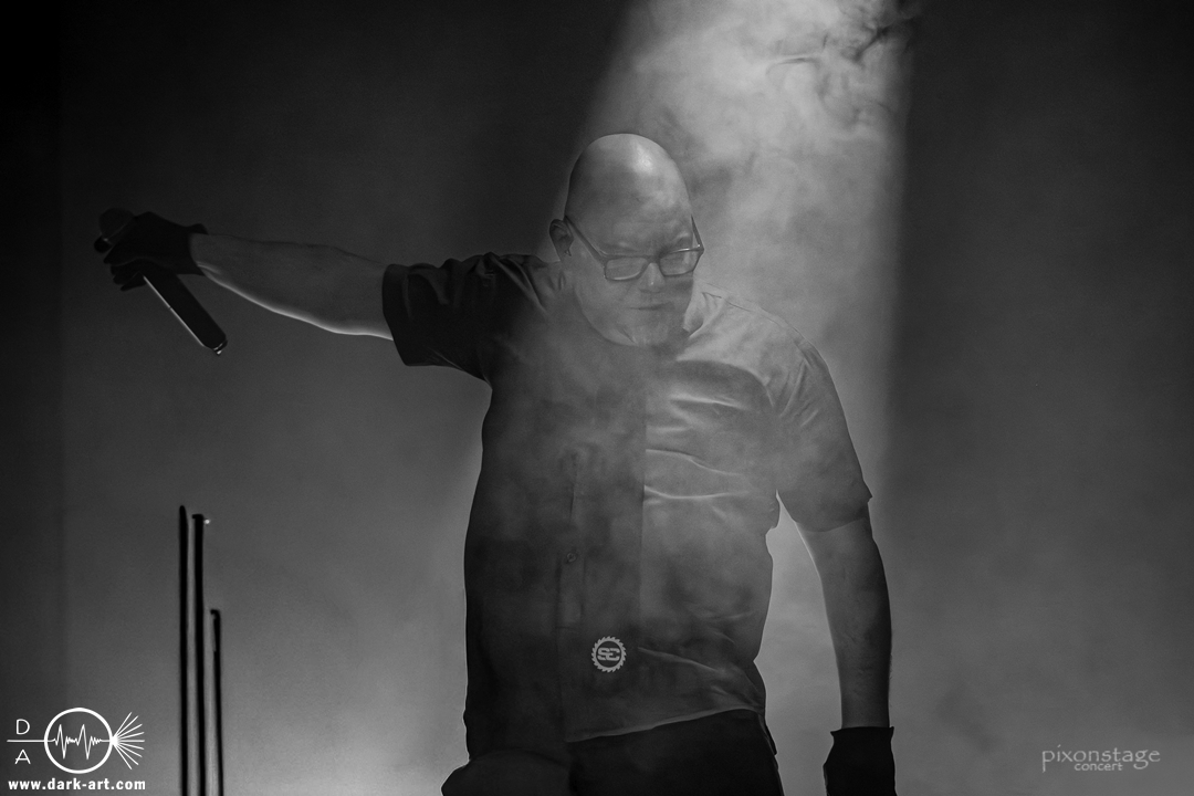 Als Intro kam die Titelmelodie von Captain Future, was Vielen ein Lächeln auf das Gesicht zauberte. Sie kamen heute nur zu dritt, da ihre zwei anderen Mitglieder krankheitsbedingt ausgefallen waren. Mit der Begrüßung „Schönen guten Abend Frankfurt, wir kommen auch aus Frankfurt, aber dem anderen“ und Trial and Error ging es los. Seit über 30 Jahren sind Solitary Experiments aktiv und entwickelten sich in dieser Zeit zu einer festen Größe der Szene, die nicht mehr wegzudenken ist. Wenn man meinte, die Besucher hätten sich schon verausgabt, wurde schnell eines Besseren belehrt, es wurden die letzten Energiereserven angezapft und nochmal alles gegeben. Ein weiteres Mal tanzten sich die Leute bei Stücken Heart of Stone oder No Salvation die Seele aus dem Leib. Währenddessen auf dem Backdrop die Videos der einzelnen Songs mitliefen. Fast schon ein bisschen surreal, wenn Dennis auf der Bühne ins Mikro sang und sein zum Teil jüngeres Ich synchron mitsang. Immer wieder gingen im Publikum die Hände nach oben, nach jedem Song wurde frenetisch geklatscht, gepfiffen und gerufen. Zum vierten Mal an diesem Abend verwandelte sich Das Bett in einen Kessel tanzender Leiber und schwitzenden Gesichtern. Lichttechniker Frank bekam nachträglich ein Geburtstagsständchen in Form von Out in the Rain. Beendet wurde der Abend mit Watching over you und die letzten Zeilen wurden mit den Besuchern zusammen gesungen. Ein letztes „Dankeschön“ zusammen mit „Bis zum nächsten Mal“.