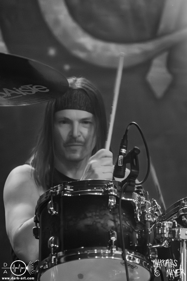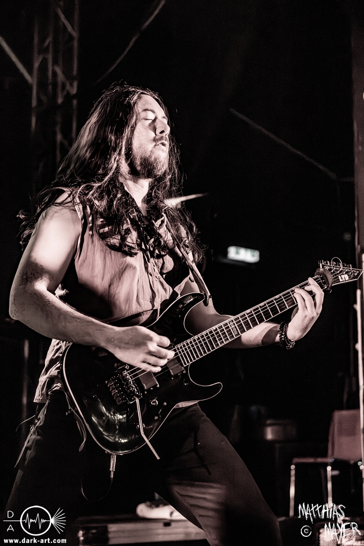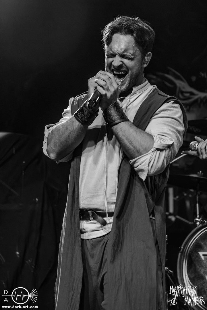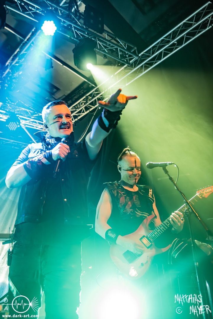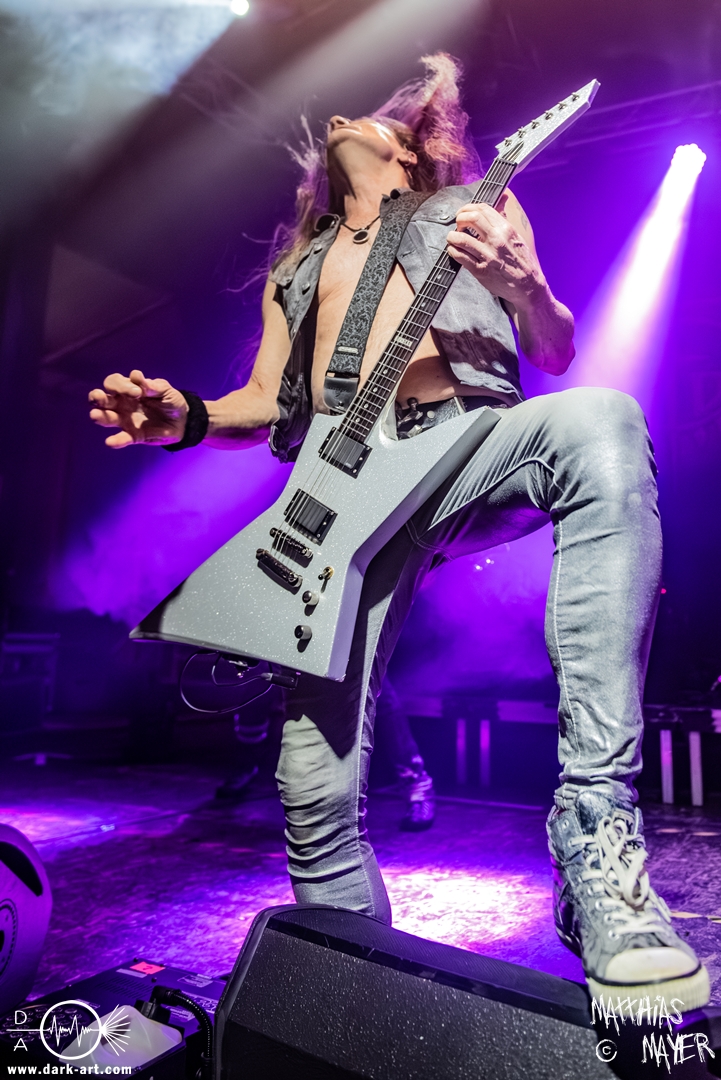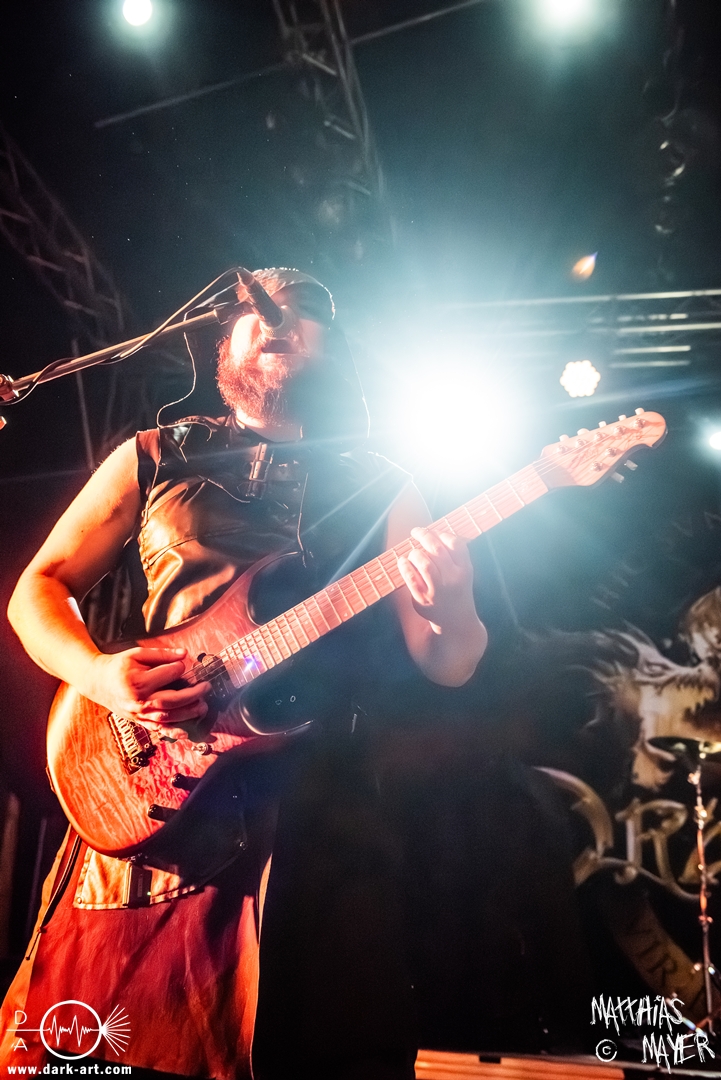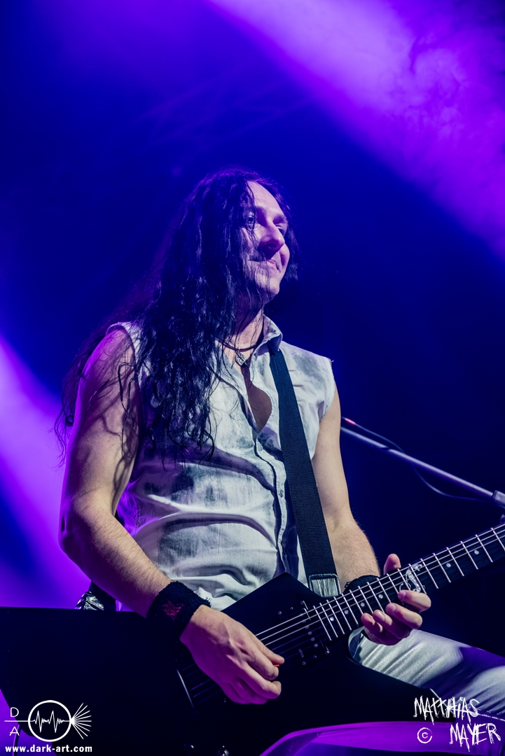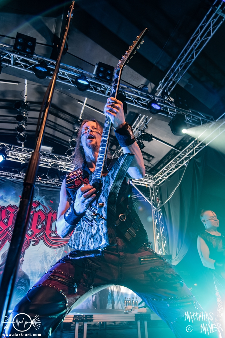 Die österreichischen Power Metaller sorgen mit ihrem melodischen und doch kraftvollen Sound für den perfekten Einstieg. Allerdings performen sie an diesem Abend in stark verminderter Mannschaftsstärke, denn die Grippewelle hat ihren Tourbus fest im Griff. So fehlte Schlagzeuger Chris bereits am Vortag und wird heute durch den Nürnberger Dario Trennert ersetzt, der über Nacht die komplette Setlist einstudiert hat und eine perfekte Show abliefert. Auch sonst sieht es auf der Bühne etwas leer aus, ohne Keyboard und Bass. Hierzu gibt es jedoch keine weitere Info von der Band.