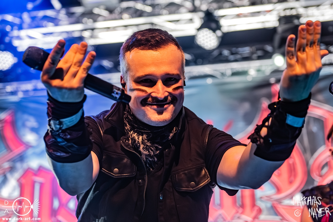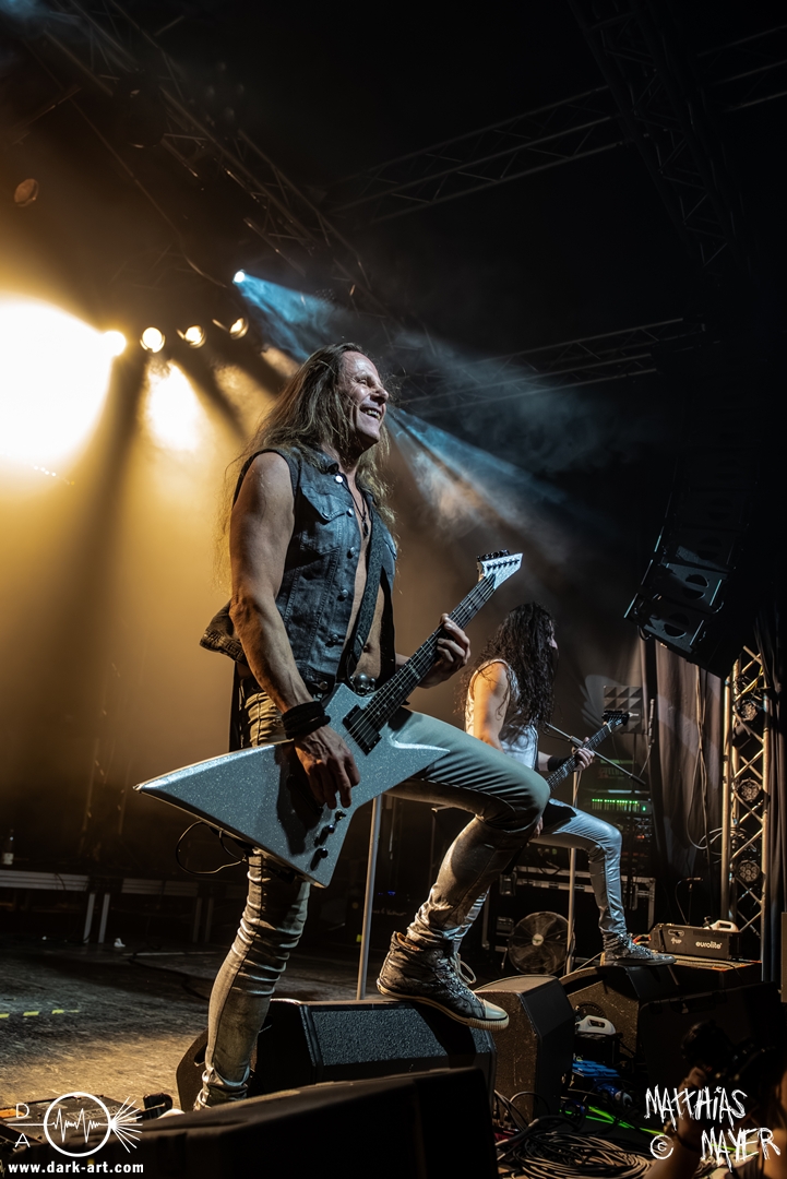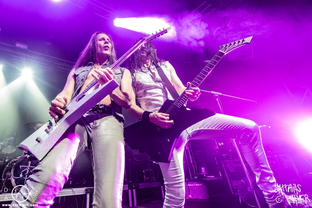 Weiter geht es danach mit Power & Glory und klatschenden Händen im Publikum, um anschließend bei Warriors wieder mit lautstarkem Gesang und Headbangen zu unterstützen. Schließlich folgt mit Metal is for Everyone die Hymne der Band und damit steuert dieses Set nicht nur auf seinen Höhepunkt, sondern auch auf das Ende zu. Die Stimmung im Saal ist auf dem bisherigen Hoch des Abends angekommen und definitiv bereit, beim heutigen Headliner vollends zu eskalieren.