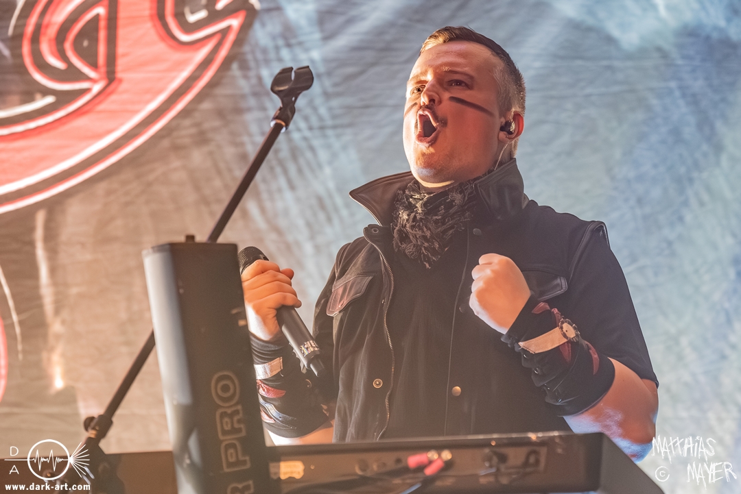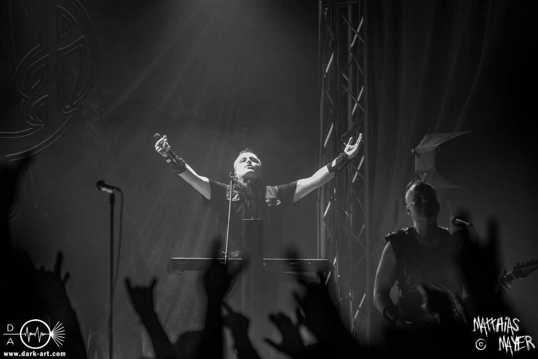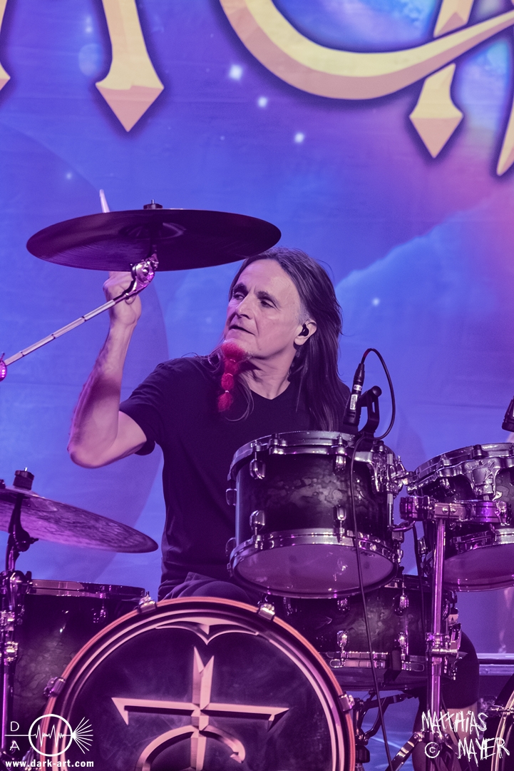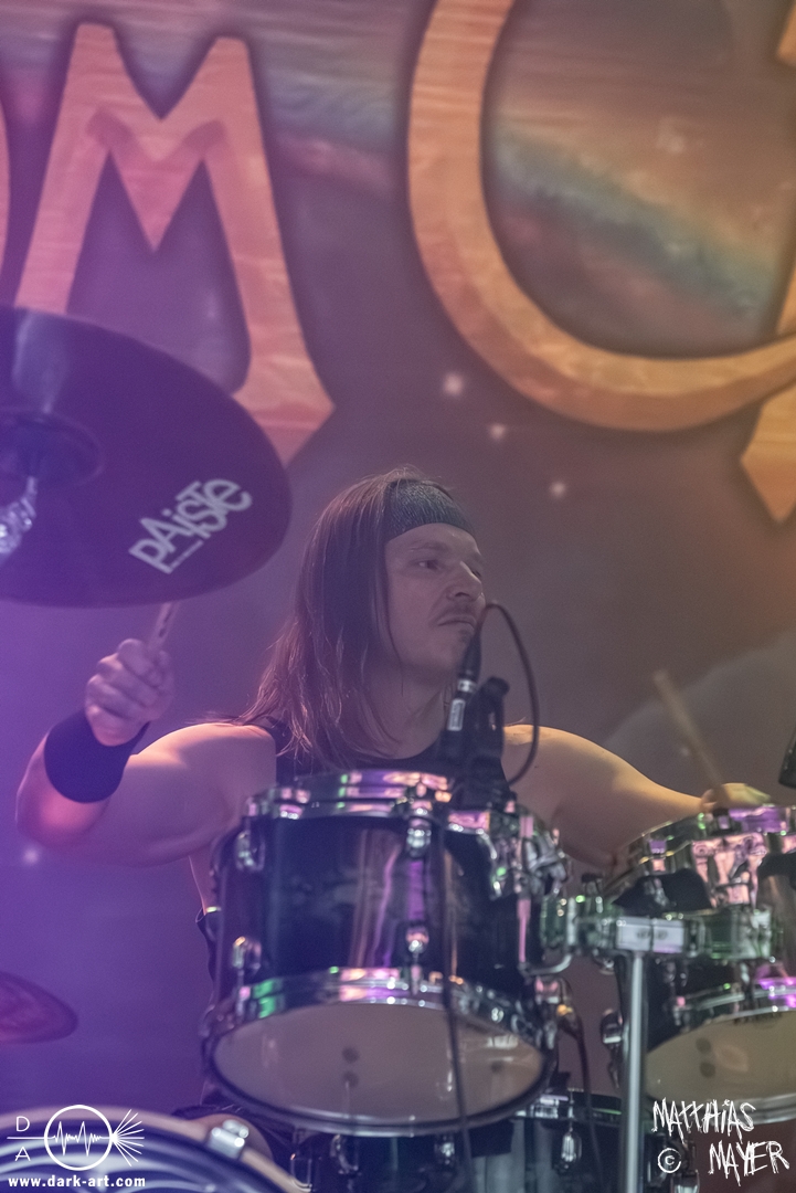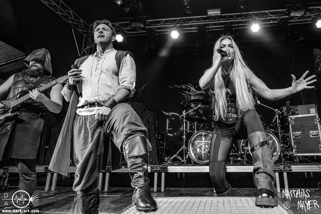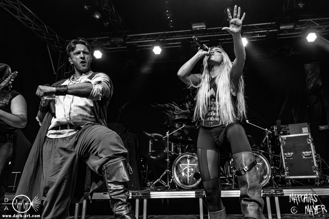 Als das Intro zum Auftakt von Dragony erklingt, mitdirigiert vom Mann hinter dem Schlagwerk, ist die Halle zwar noch nicht ganz gefüllt, doch die Stimmung unter den Fans ist direkt euphorisch und zum ersten Song Twilight of the Gods wird sofort kräftig mitgeklatscht. Anmoderiert wurde das erste Lied des Abends von Sänger Siegfried Samer, der kurz darauf gesangliche Unterstützung von Neuzugang Maria Nesh erhielt.