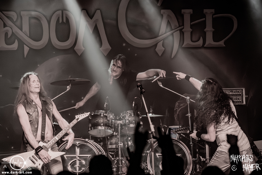 Und auch Freedom Call sind von der Grippewelle nicht verschont geblieben, sodass Drummer Ramy für einige Shows ausgefallen ist. Ersetzt wurde er durch Roland von der Band F.U.C.K. der für ihn die ersten Shows des Jahres hinter den Drums saß. Ramy ist seit heute genesen und gesund und munter zurück auf der Bühne. So gibt es einen Drummerwechsel der beiden inklusive gebührender Verabschiedung von Roland zwischen Lied fünf und sechs.